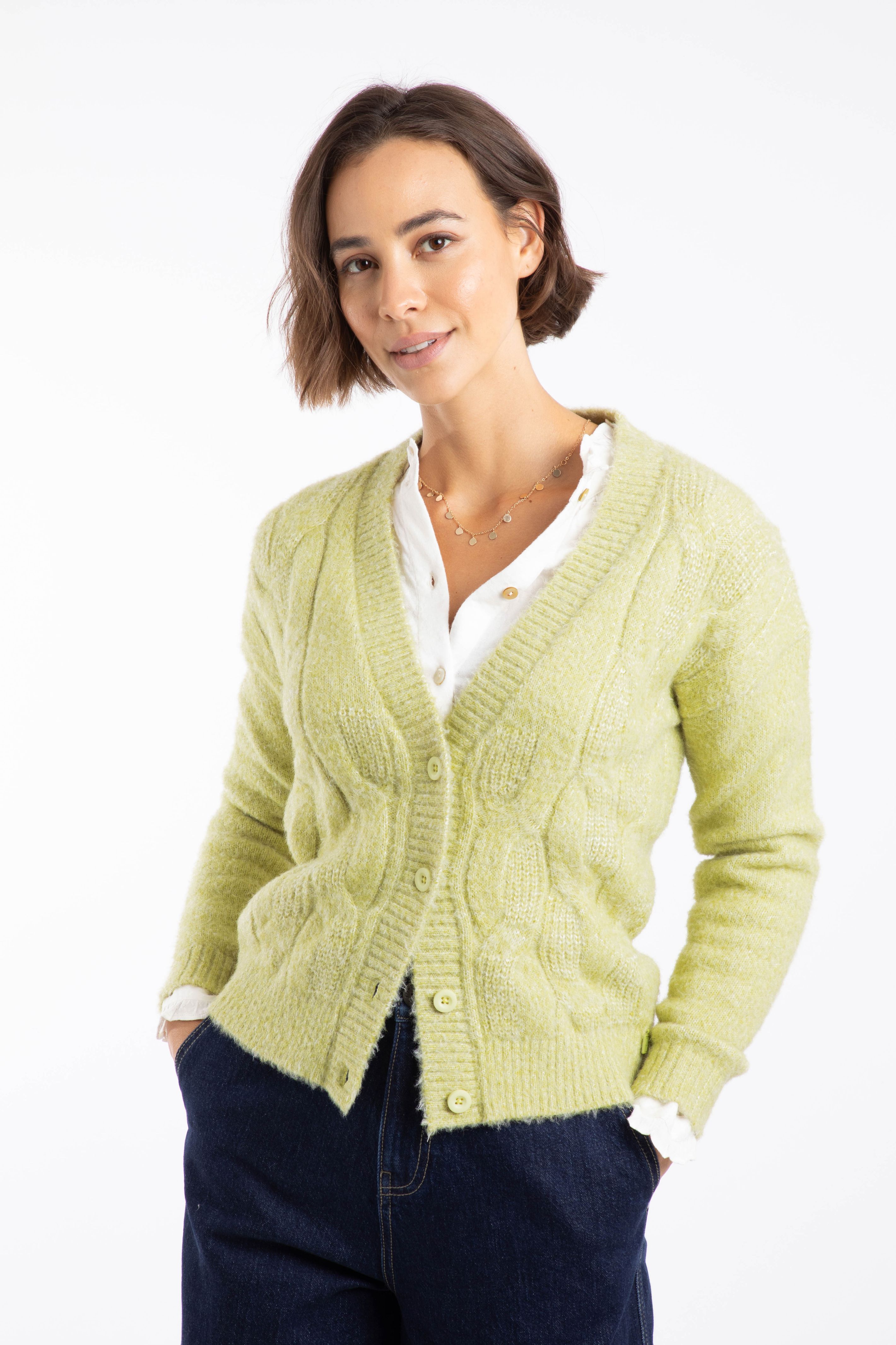 The Rhona Super Soft Cable Knit Cardigan really is soft, light and surprisingly warm. With a deep V-neck and large buttons, team this cardi with a simple blouse or tee to make it shine.