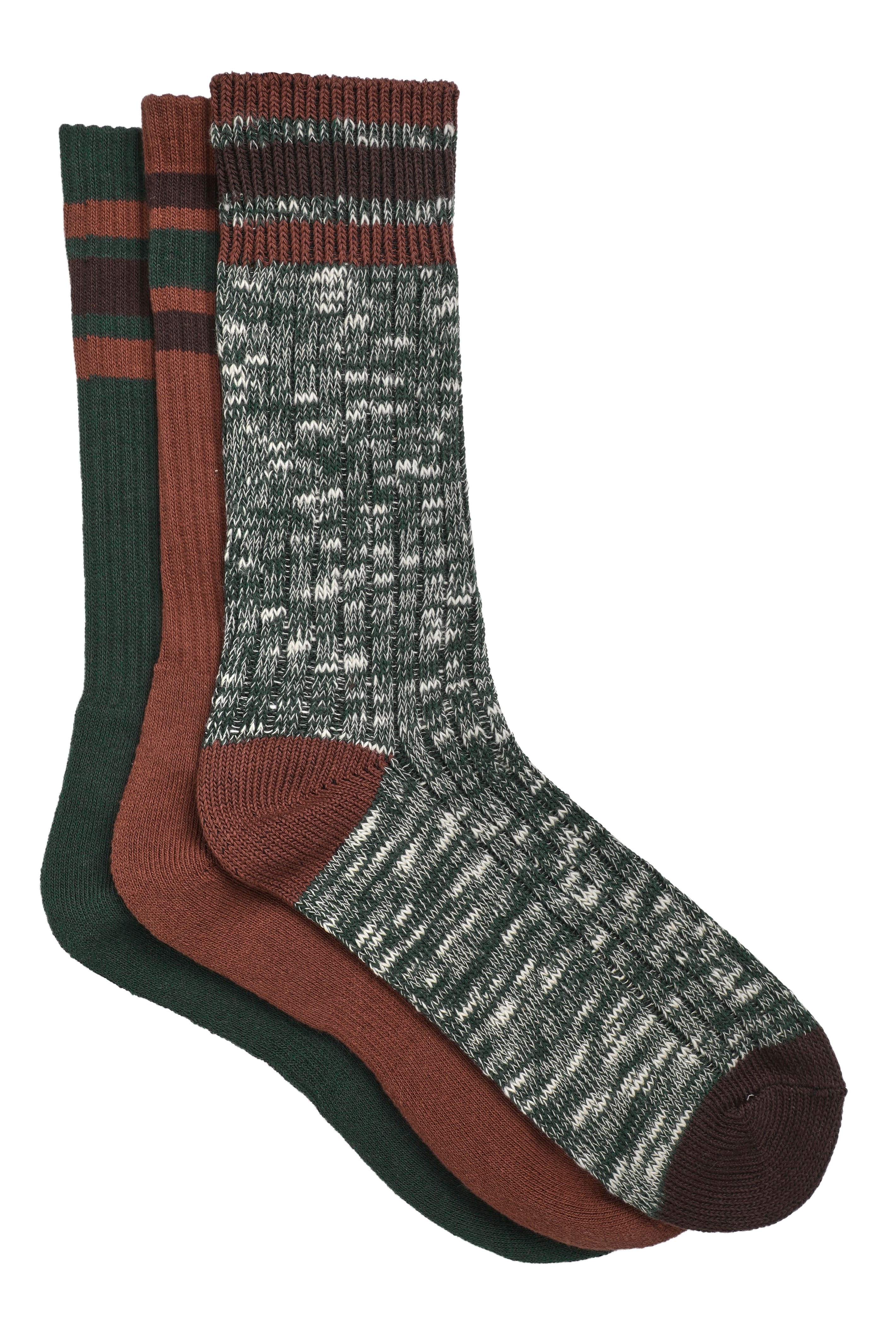 Fernvale Striped Boot Sock 3pk Rust Leaves