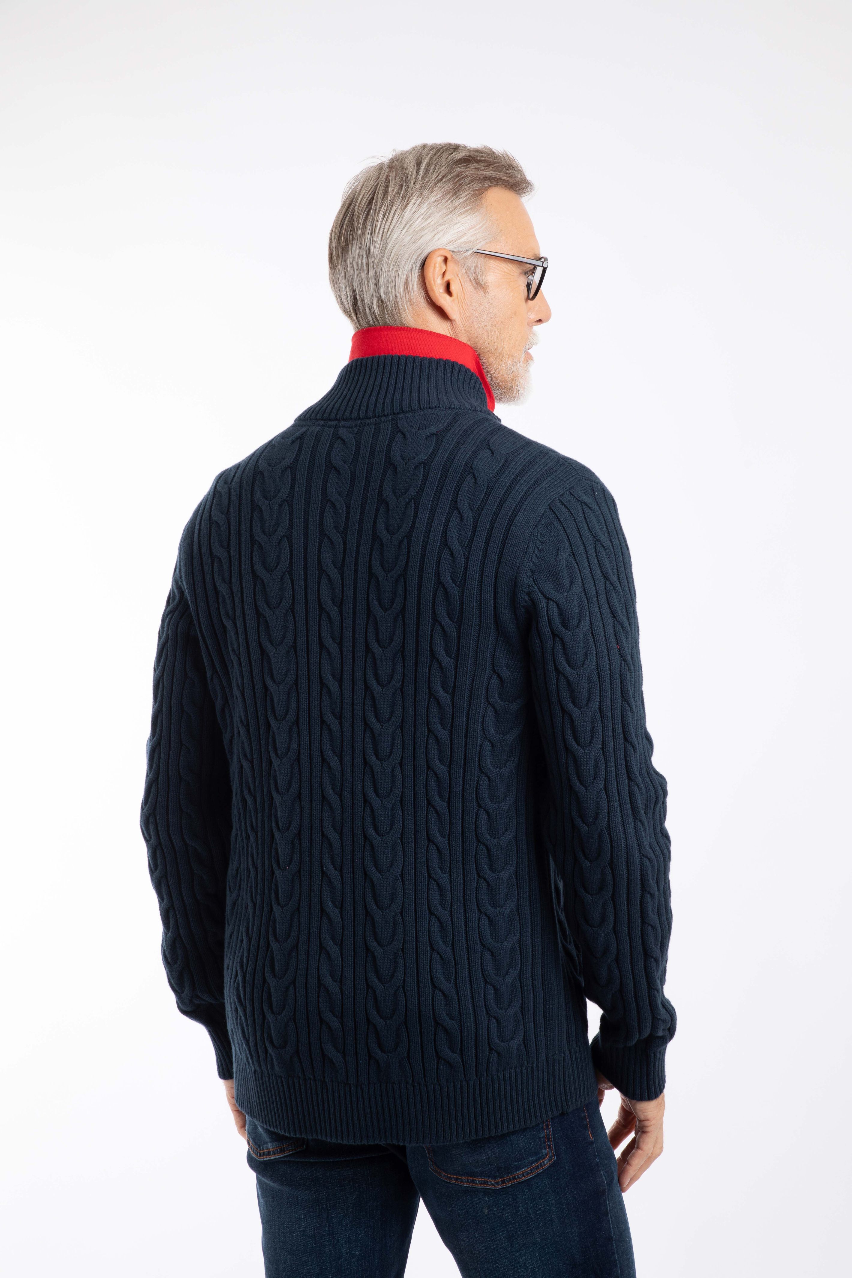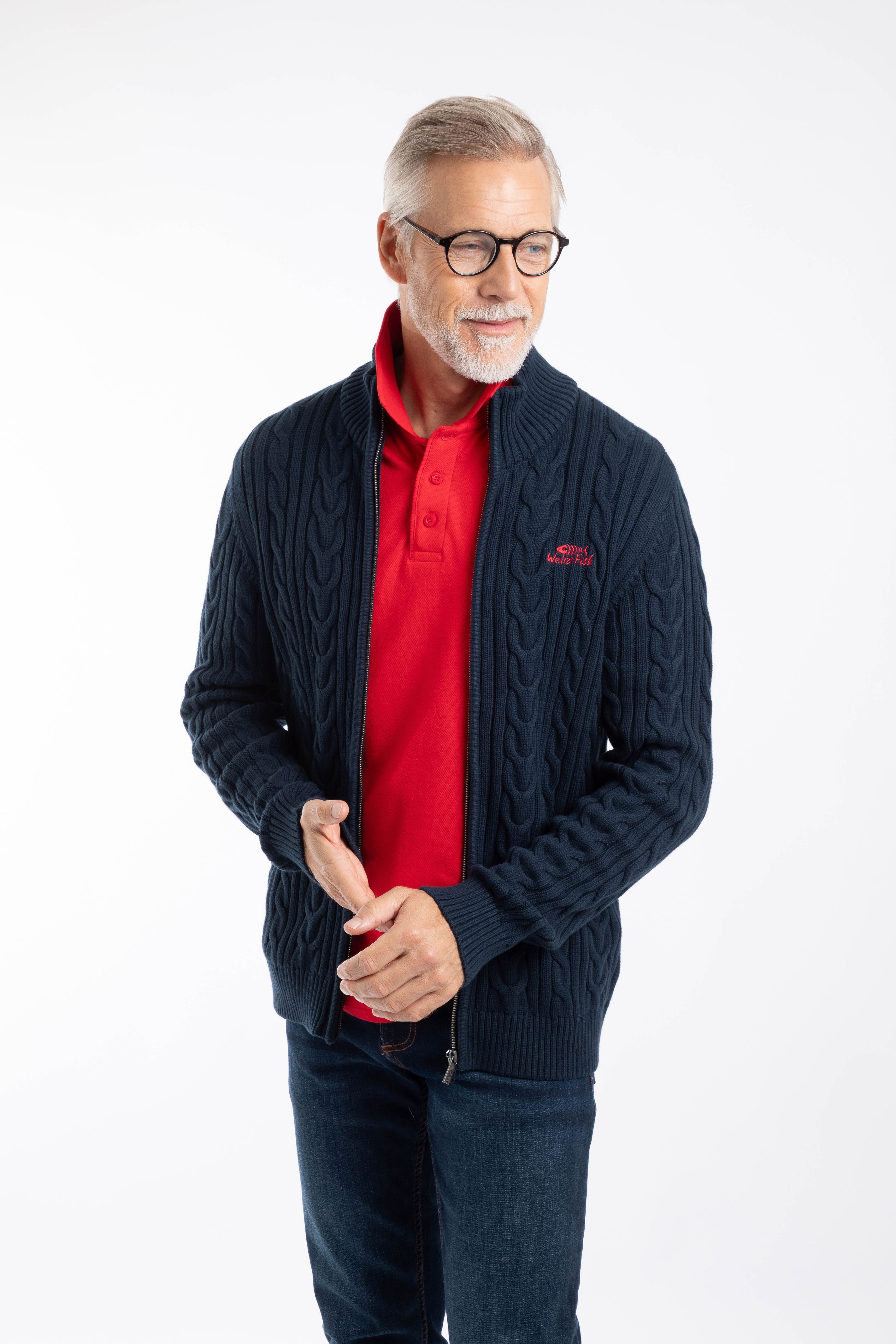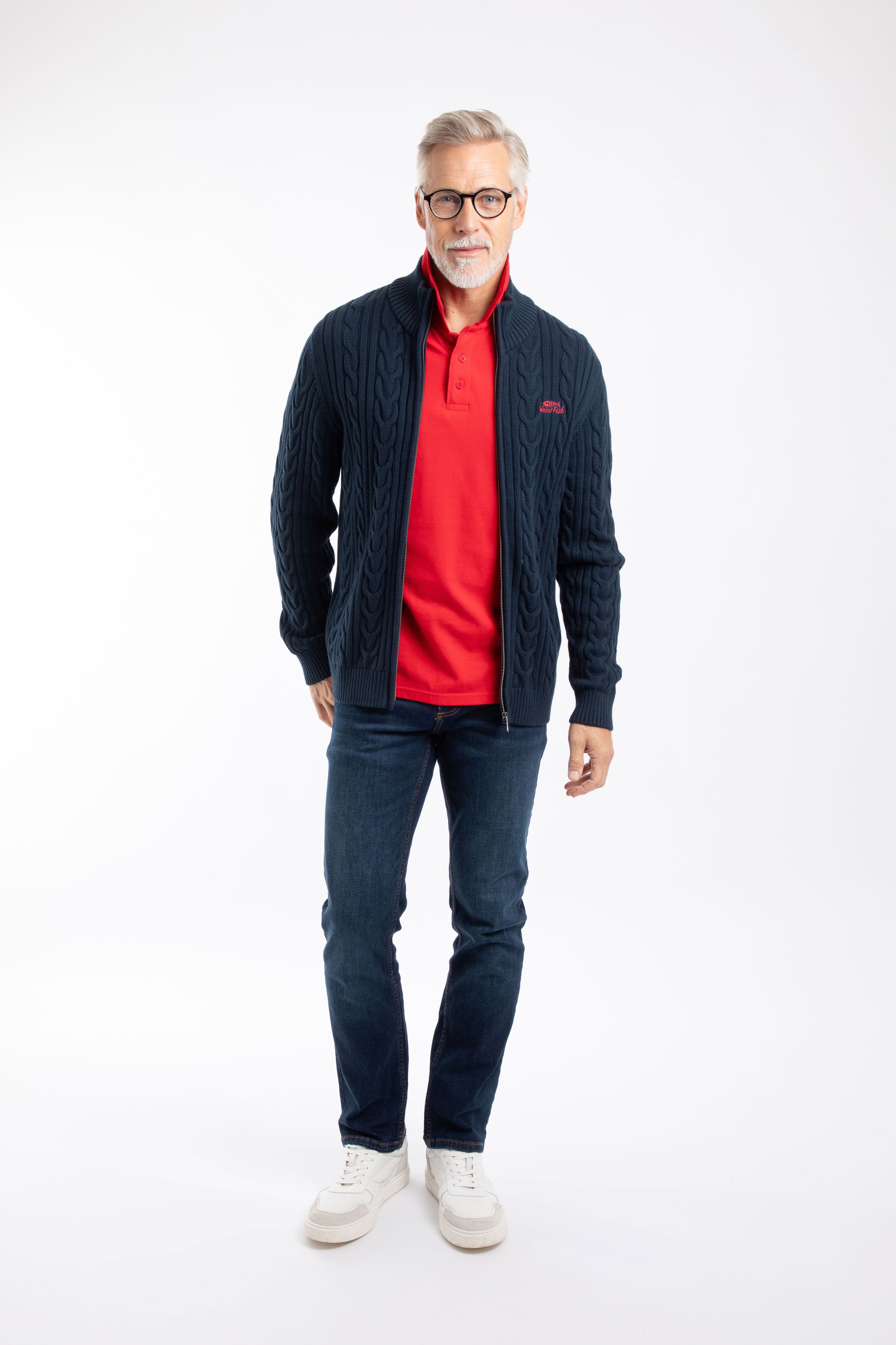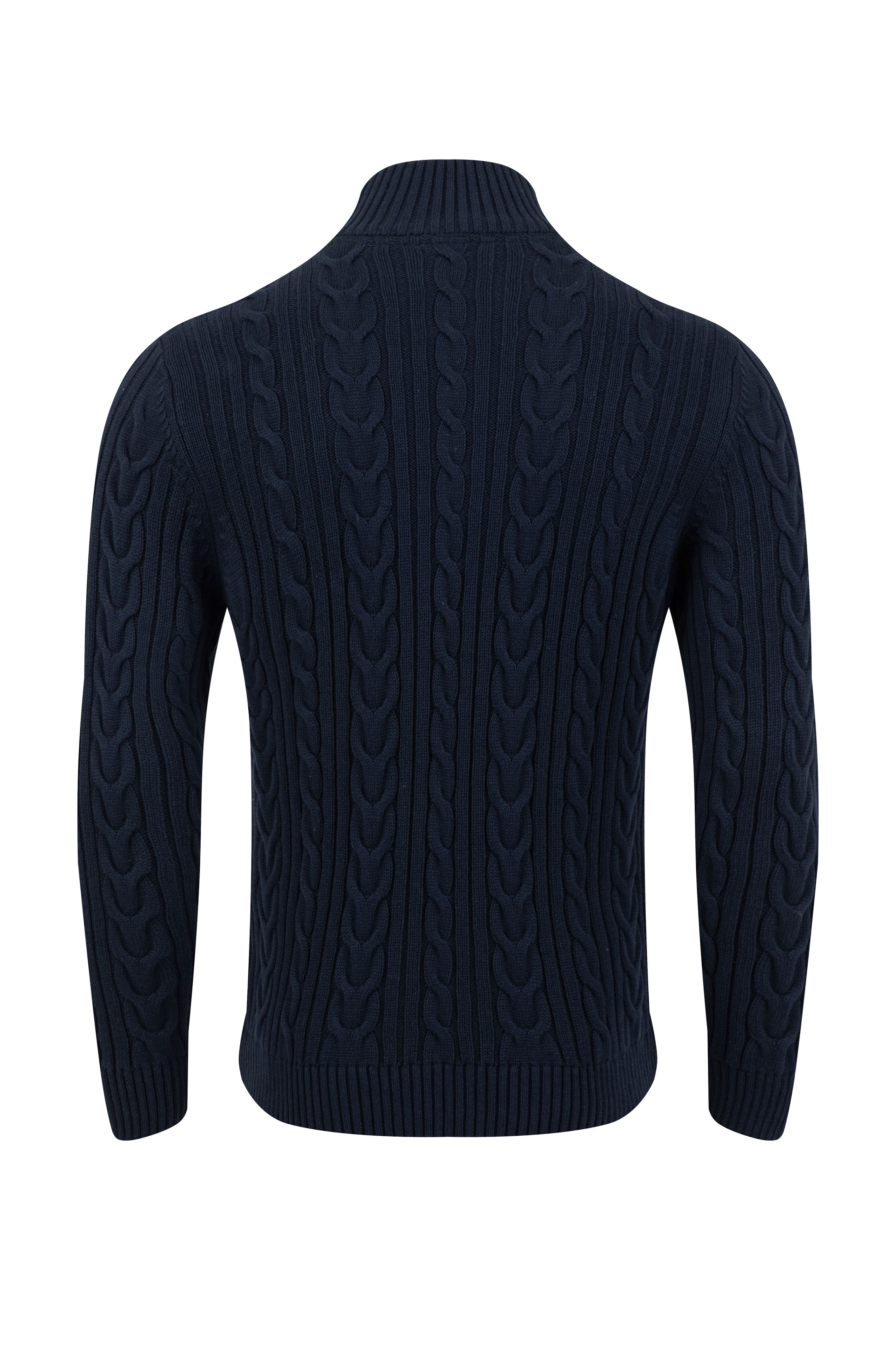 The Bexley Full Zip Cable Knit Jumper is a handy layer to replace a jacket during those transitional months. The chunky cable knit design helps to create a great fit, and we have finished it with a contrast colour embroidered chest logo.