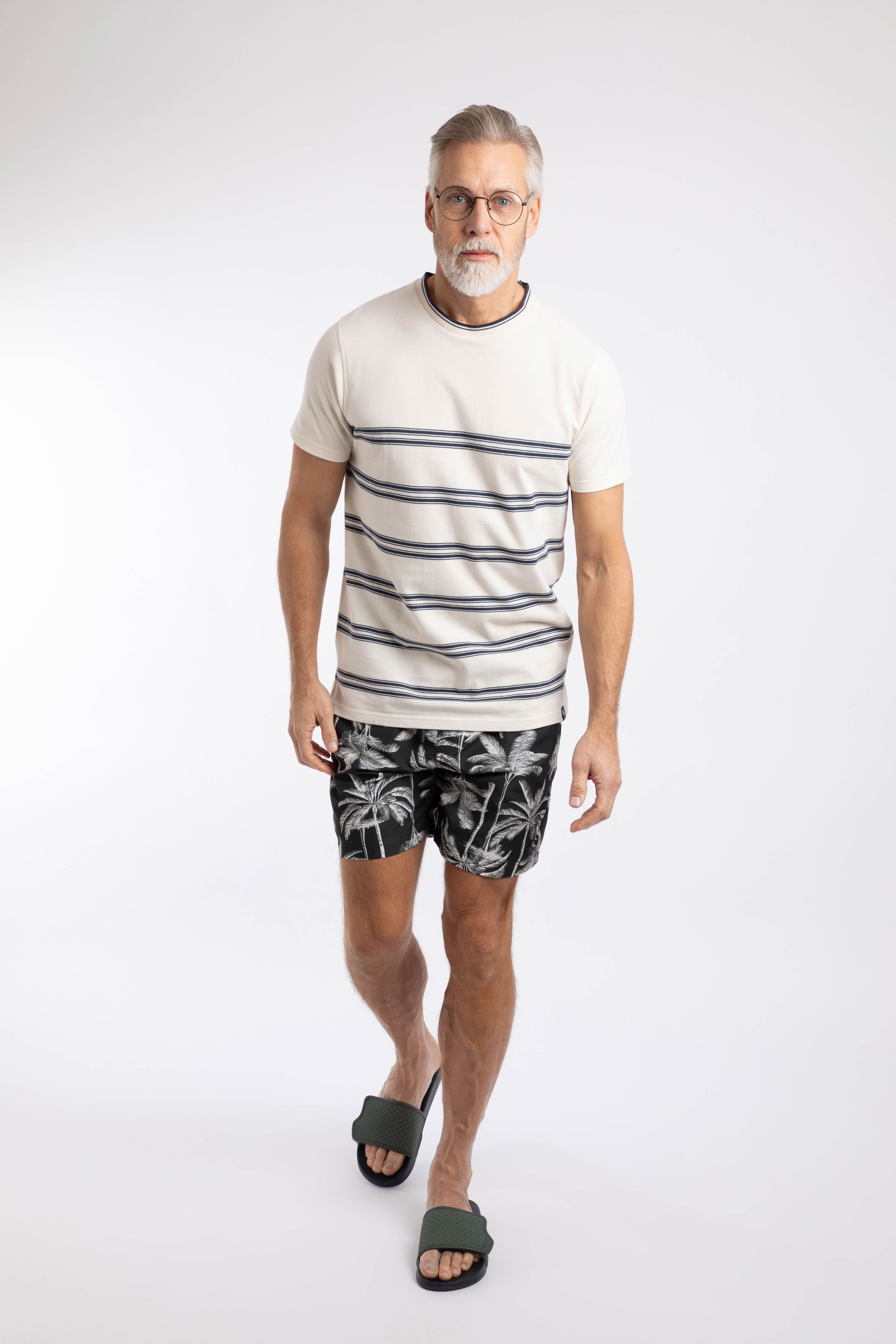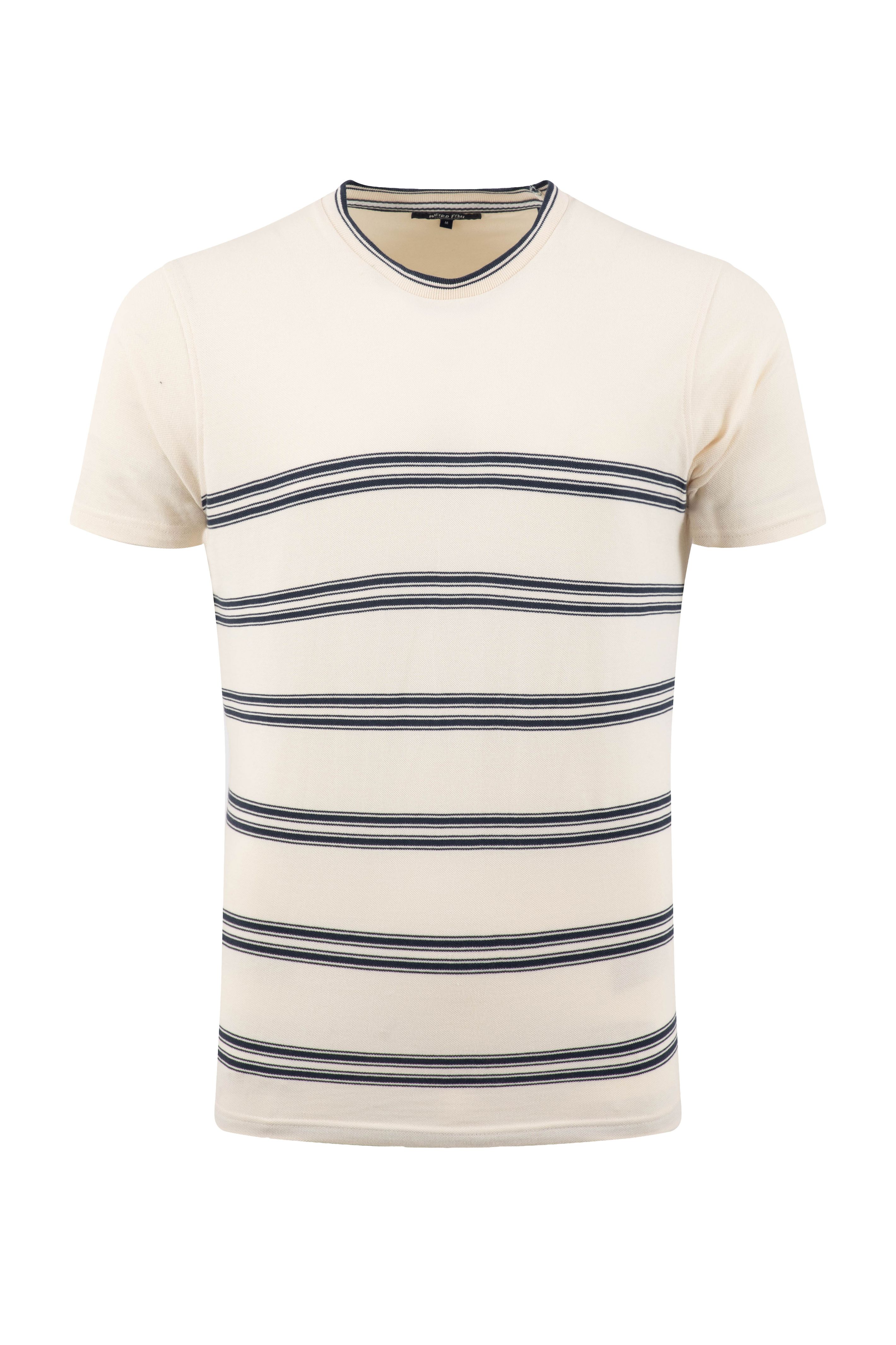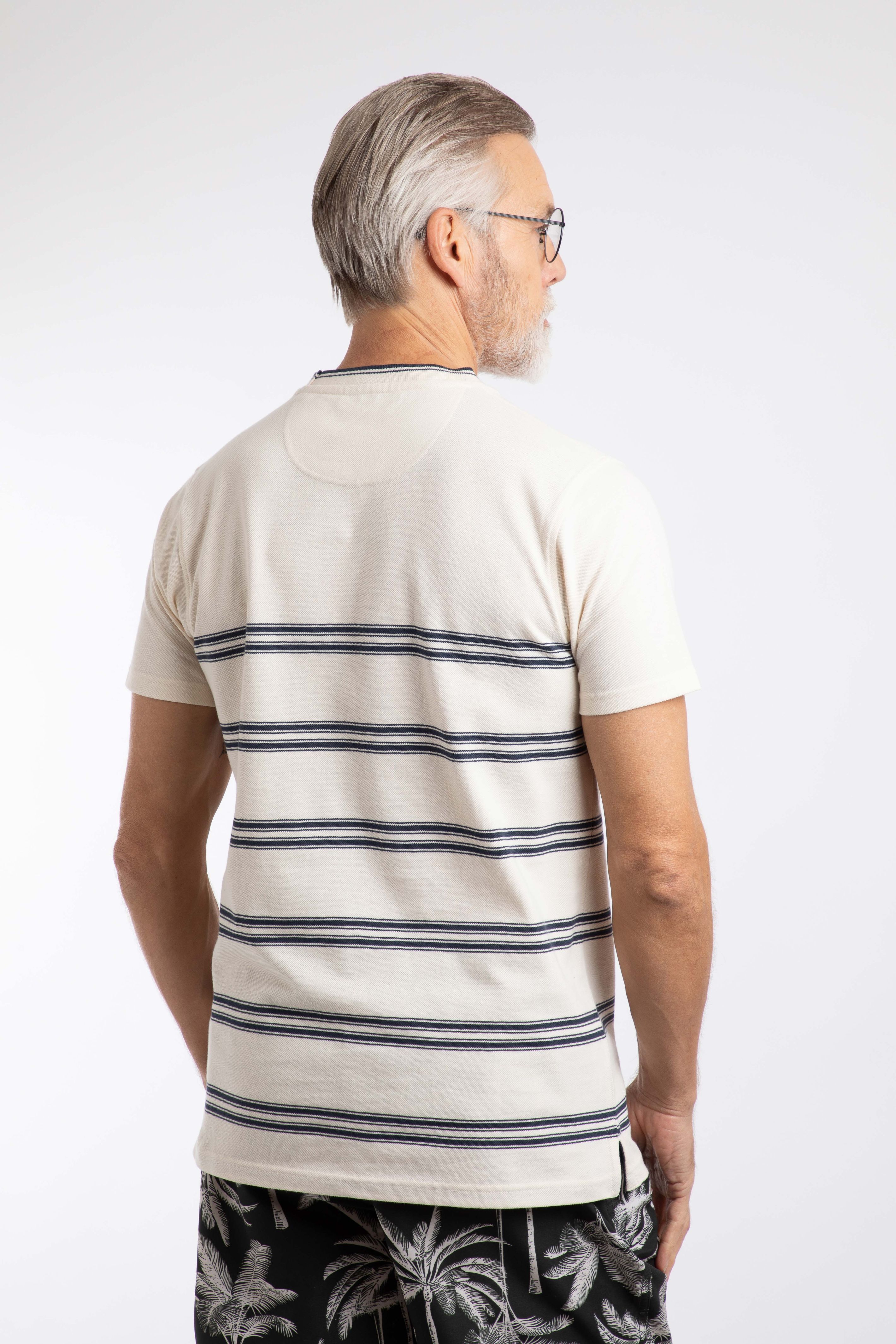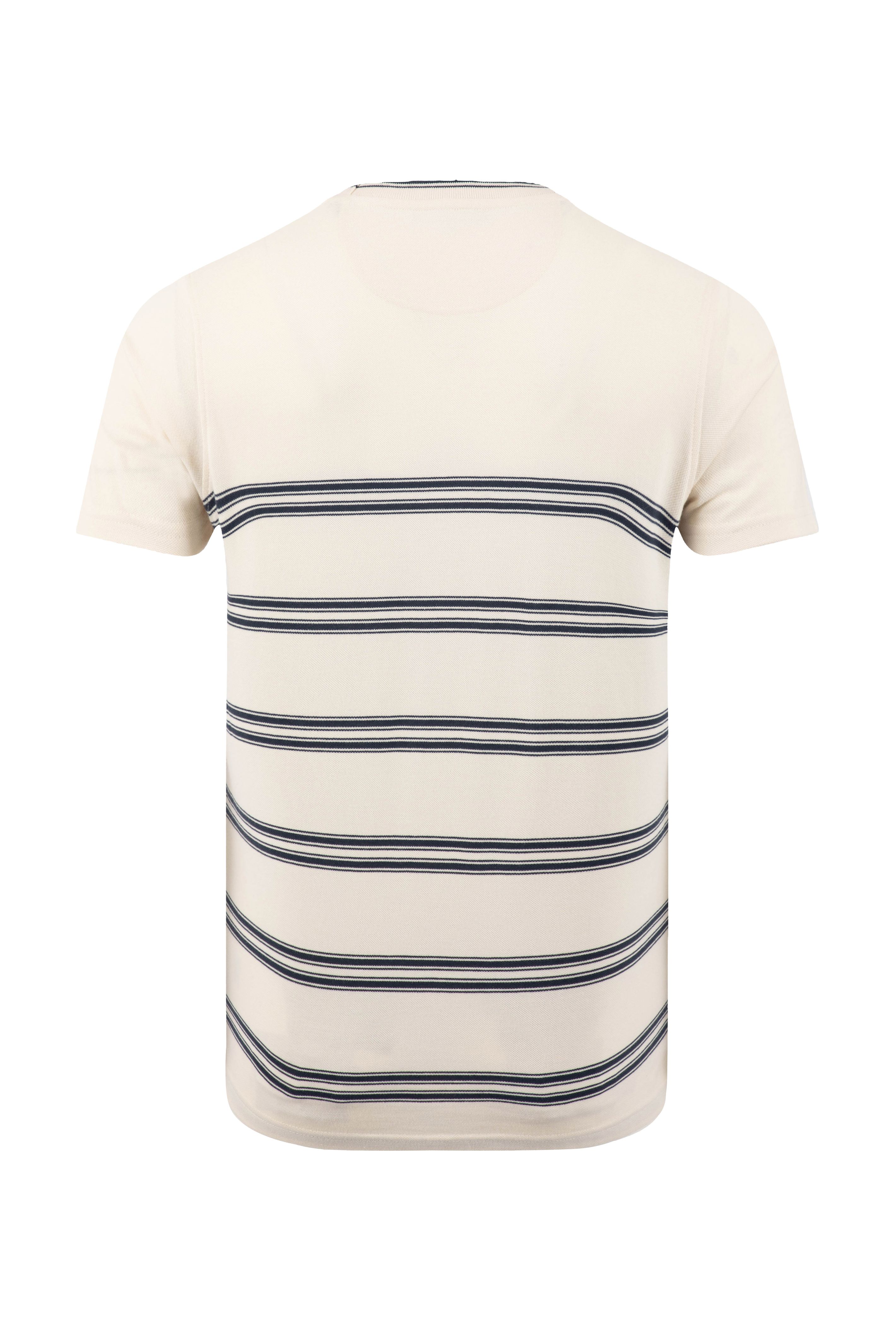 Fjord Pique Stripe Crew Neck T-Shirt Light Cream