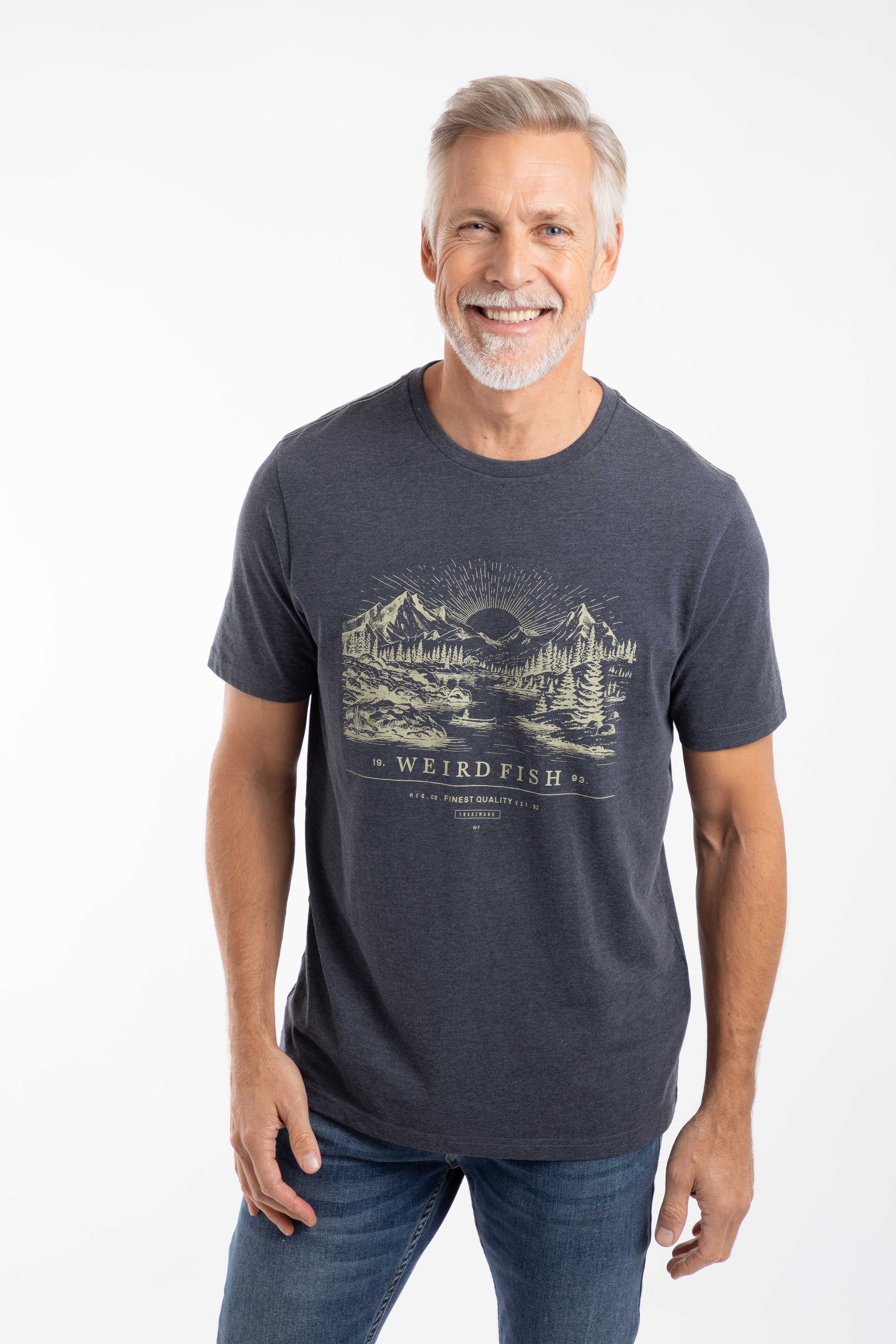 When the sun comes up, reach for the Sunrise Front Print Graphic T-Shirt. With an uplifting view of a lake and valley, this is the kind of view that would get us up and out the door every day, ready for a new adventure.