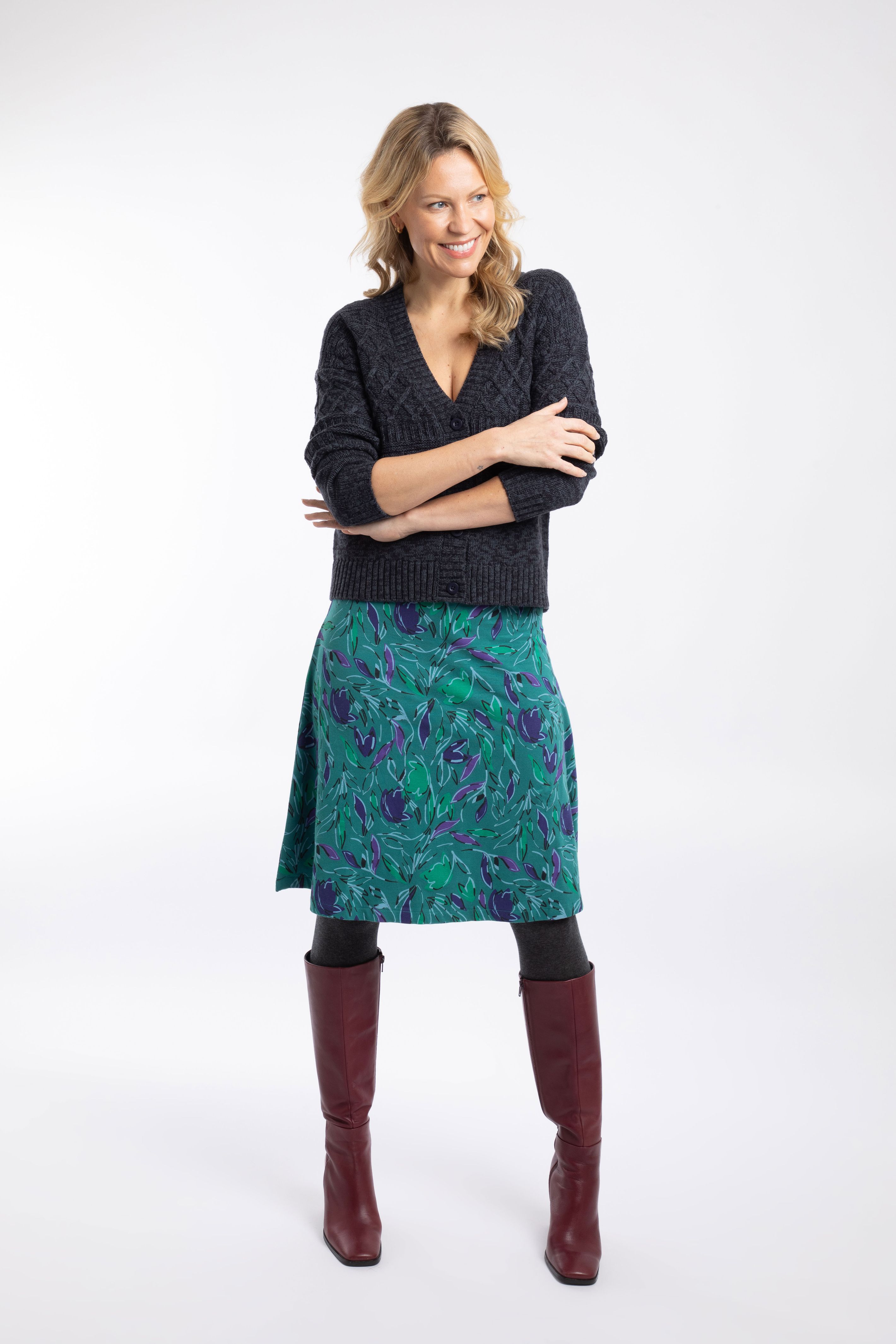 Our best-selling jersey stretch skirt, the Malmo, is the perfect base to any outfit throughout the year. Supe- soft, and super-comfortable, you'll enjoy wearing the Malmo printed jersey skirt with your favourite T-Shirts, vests, cardigans and even jumpers depending on the weather. We love its hassle free, pull on design and flattering deep, fold-over waistband.