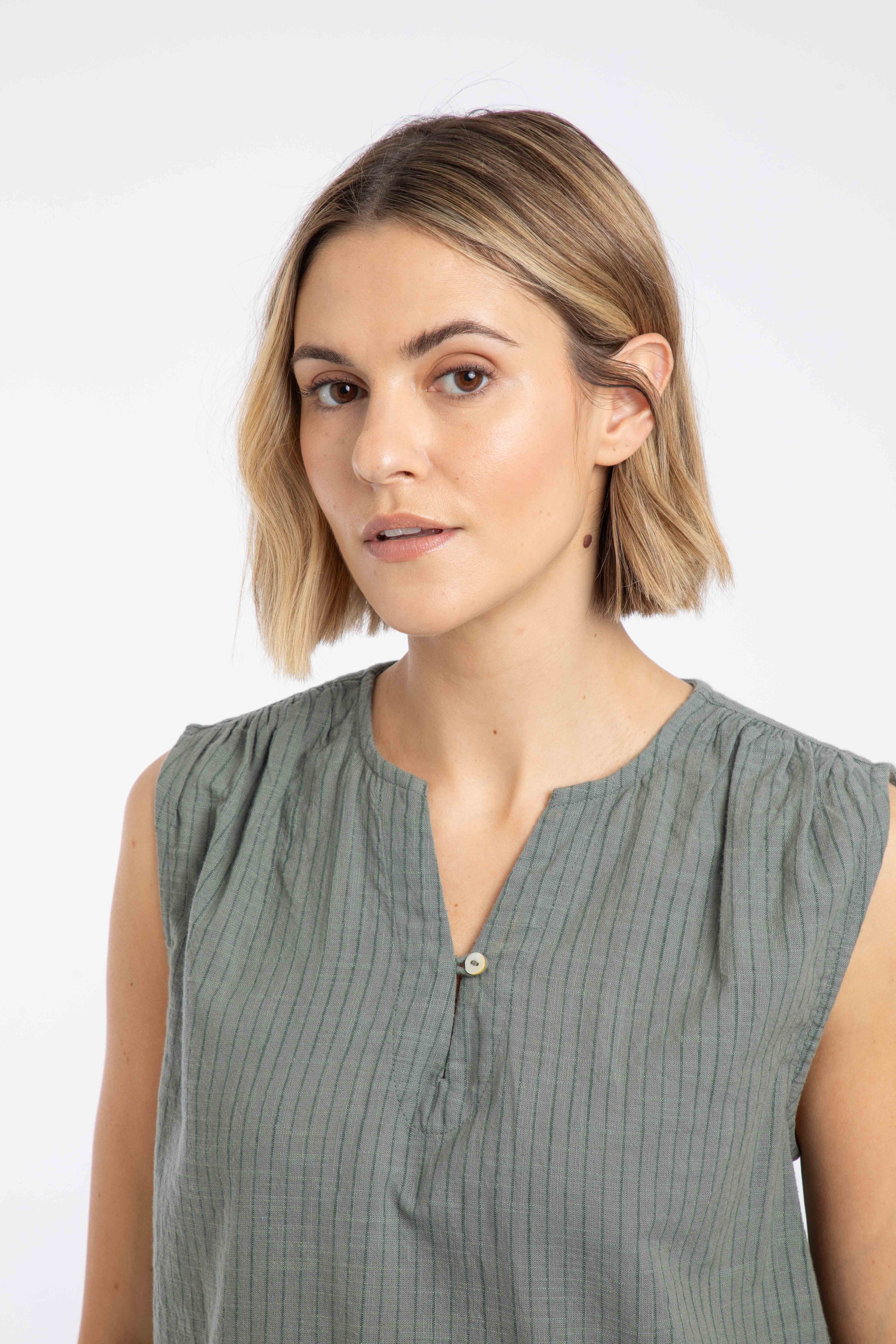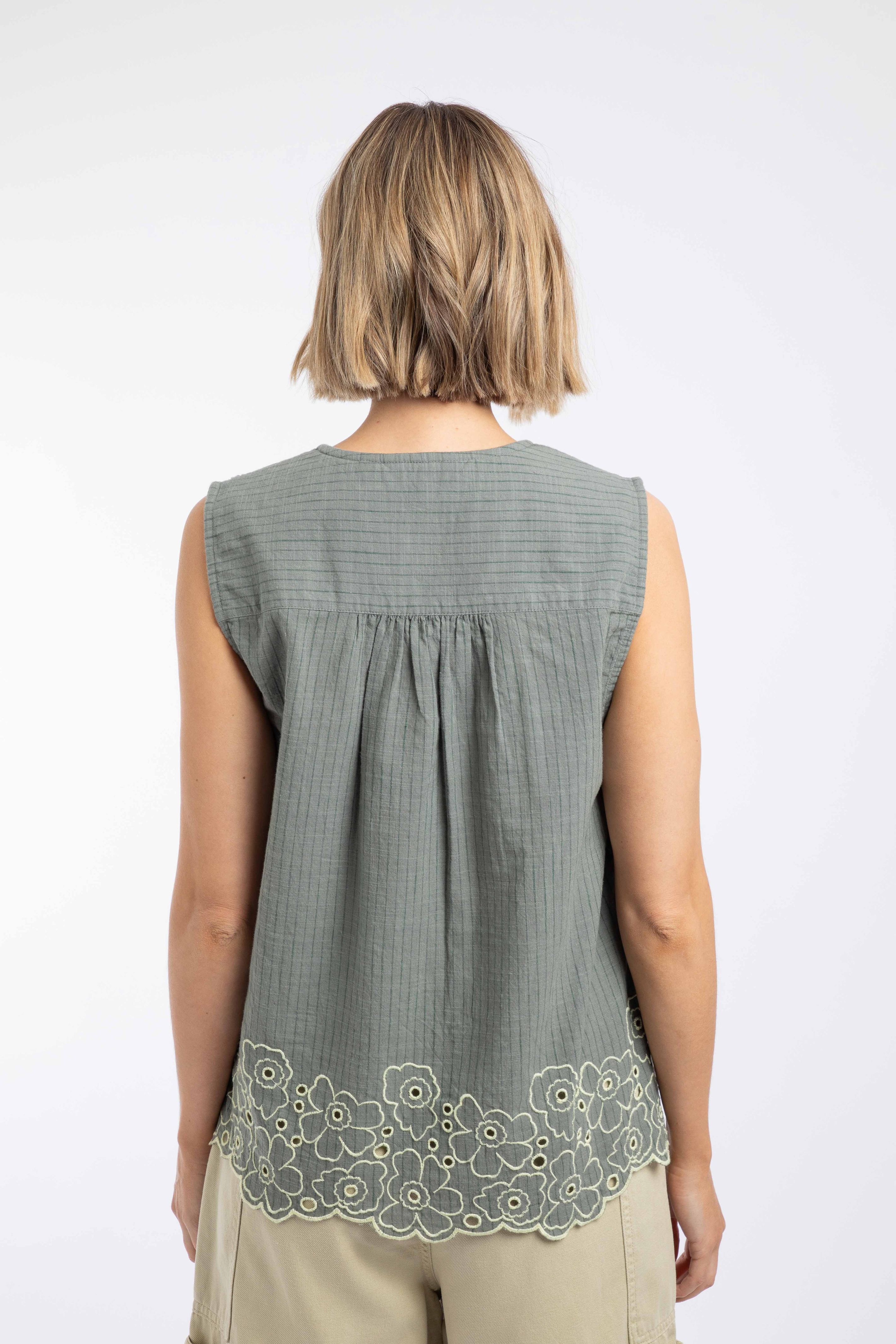 Poppy Scalloped Hem Sleeveless Blouse Woodland Sage