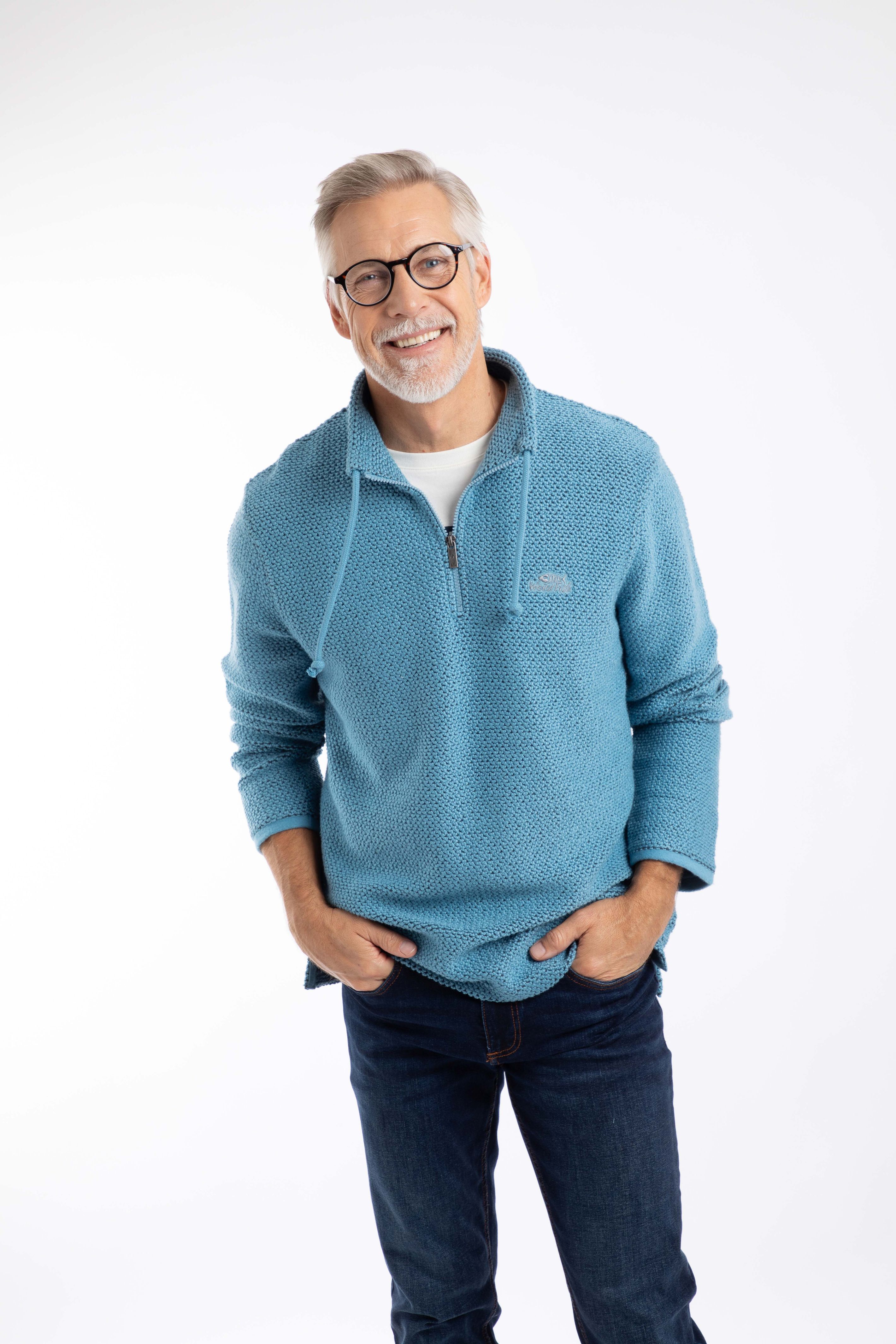 The most iconic Weird Fish item; The Cruiser 1/4 zip Macaroni is where it all began, back in 1993 we discovered these circular knitting machines that were no longer in use, and we brought them back to life. We named the fabric for the semicircle texture it embodies, and the Macaroni fabric was born. The Cruiser was the first design we made and it is still a best-seller to this day. Still the ever-long style we have all grown to love.