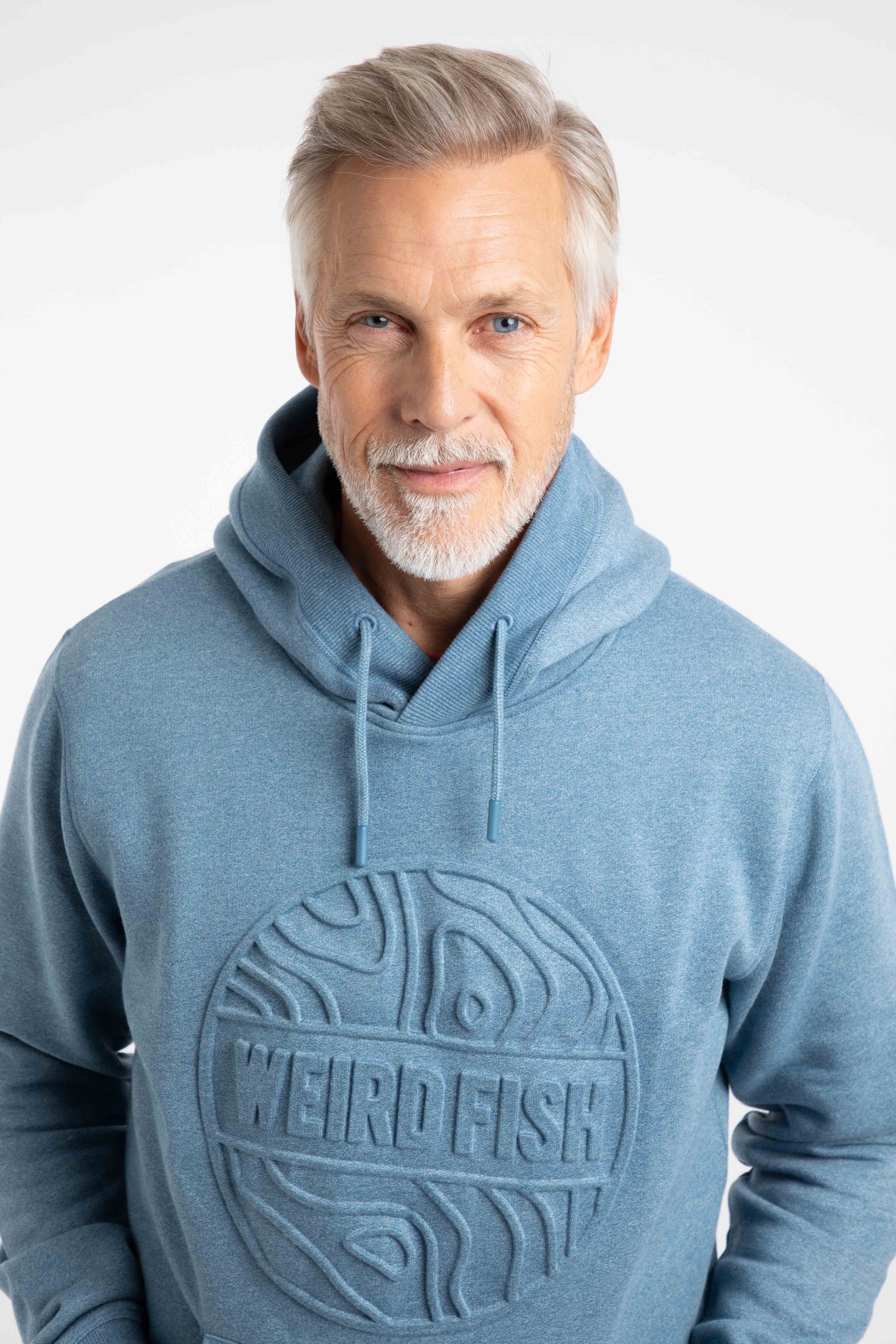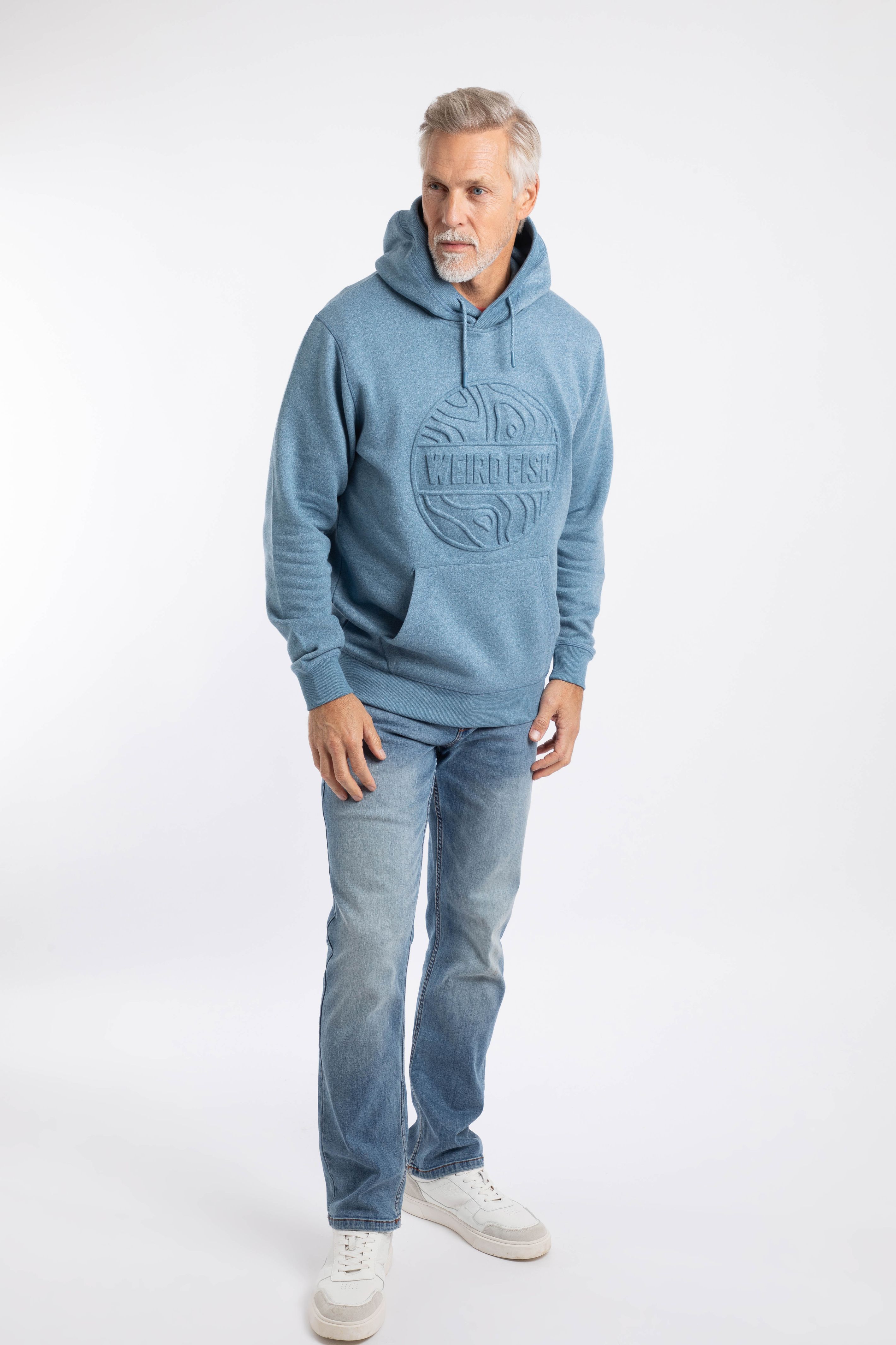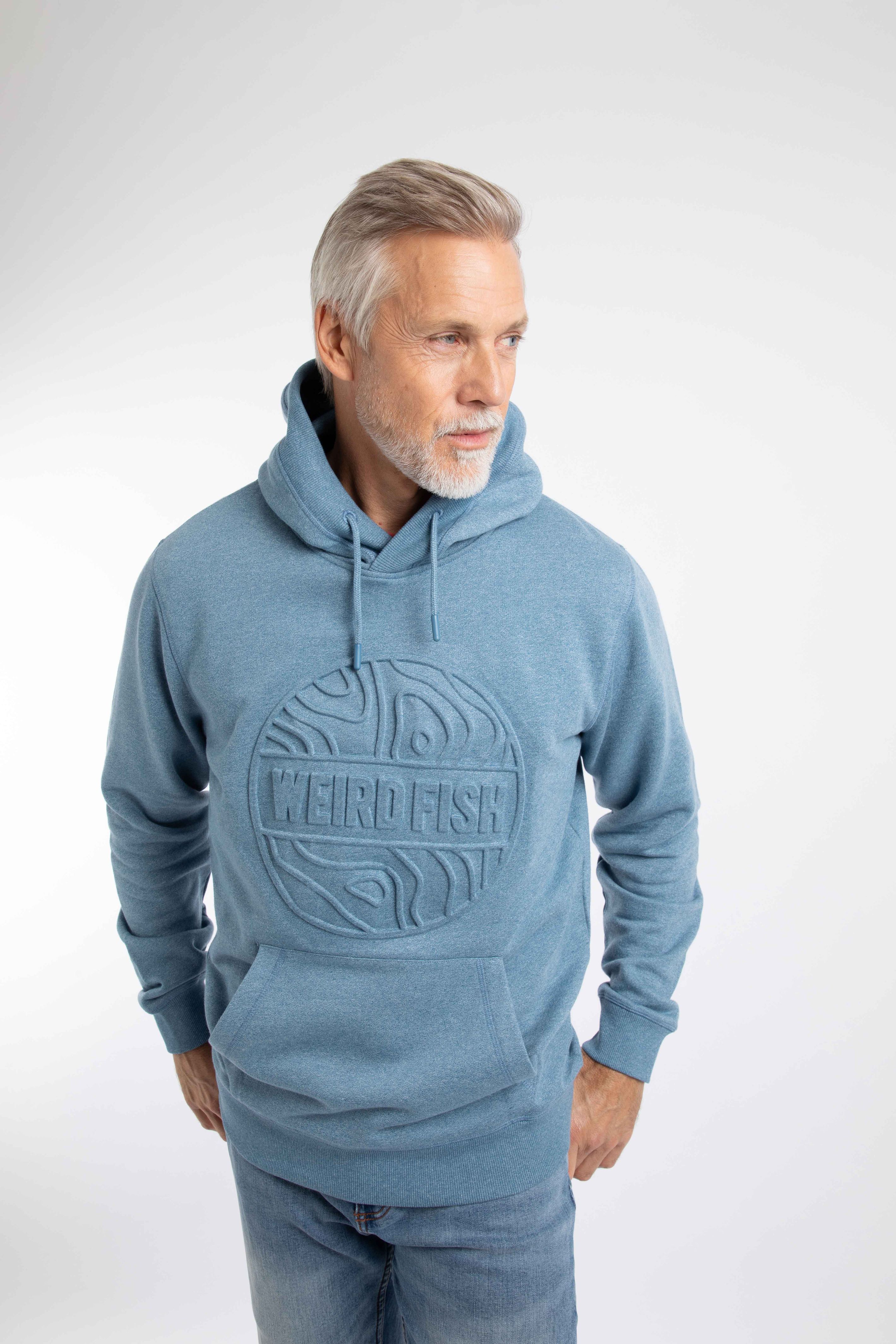 An upgrade on our usual printed hoodie, we have used an embossing technique to bring out this subtle branding on this warm, hoodie's chest. The Perranporth embossed grindle hoodie is a great casual option which will keep you warm, and looks great layered under a jacket.