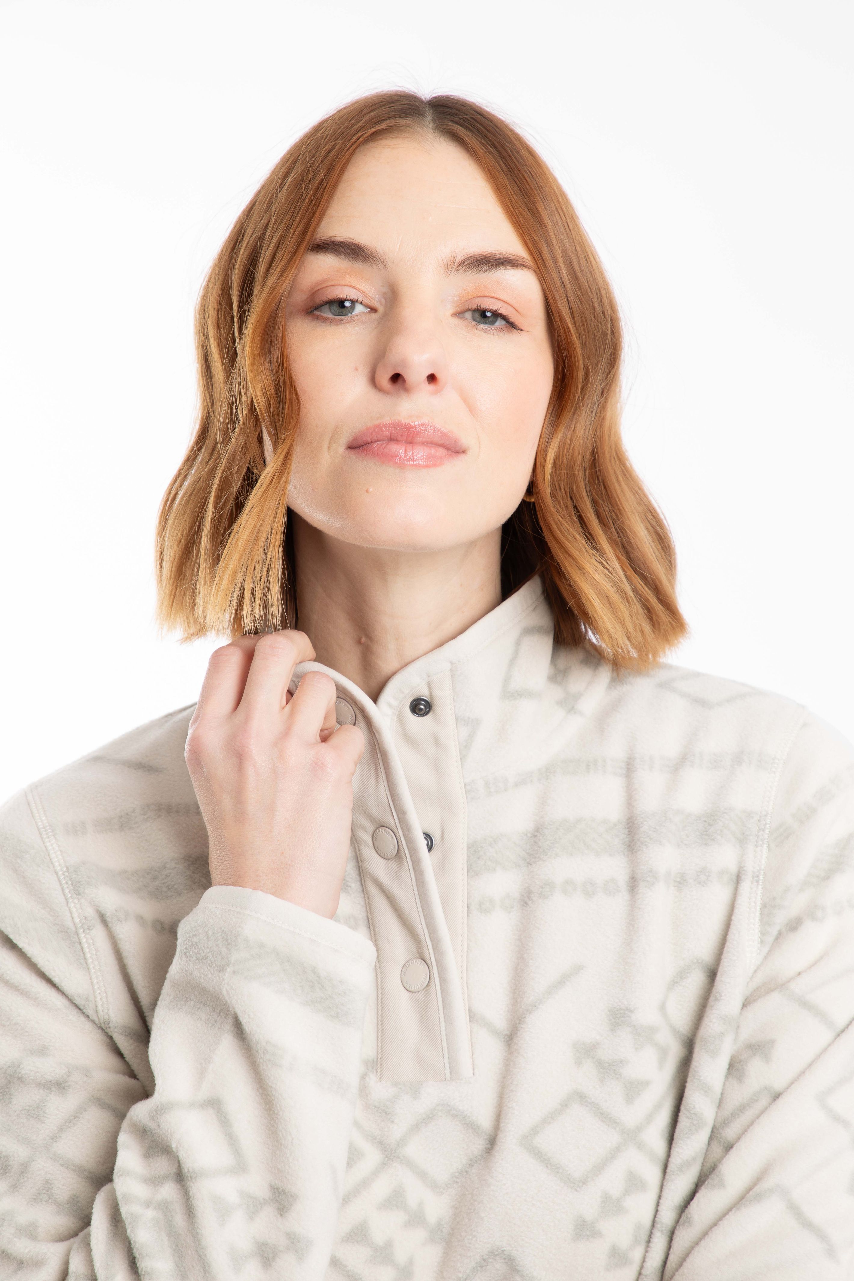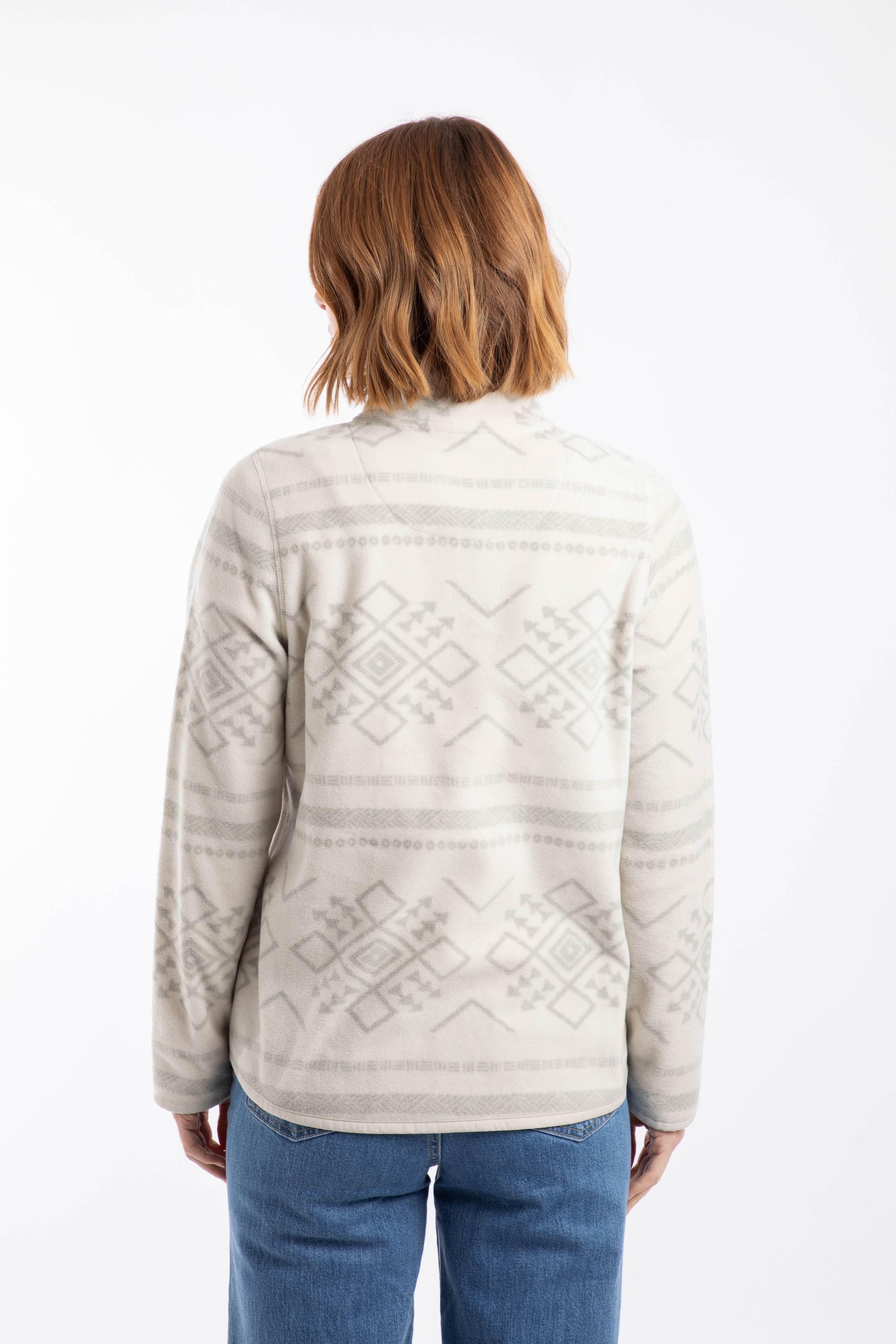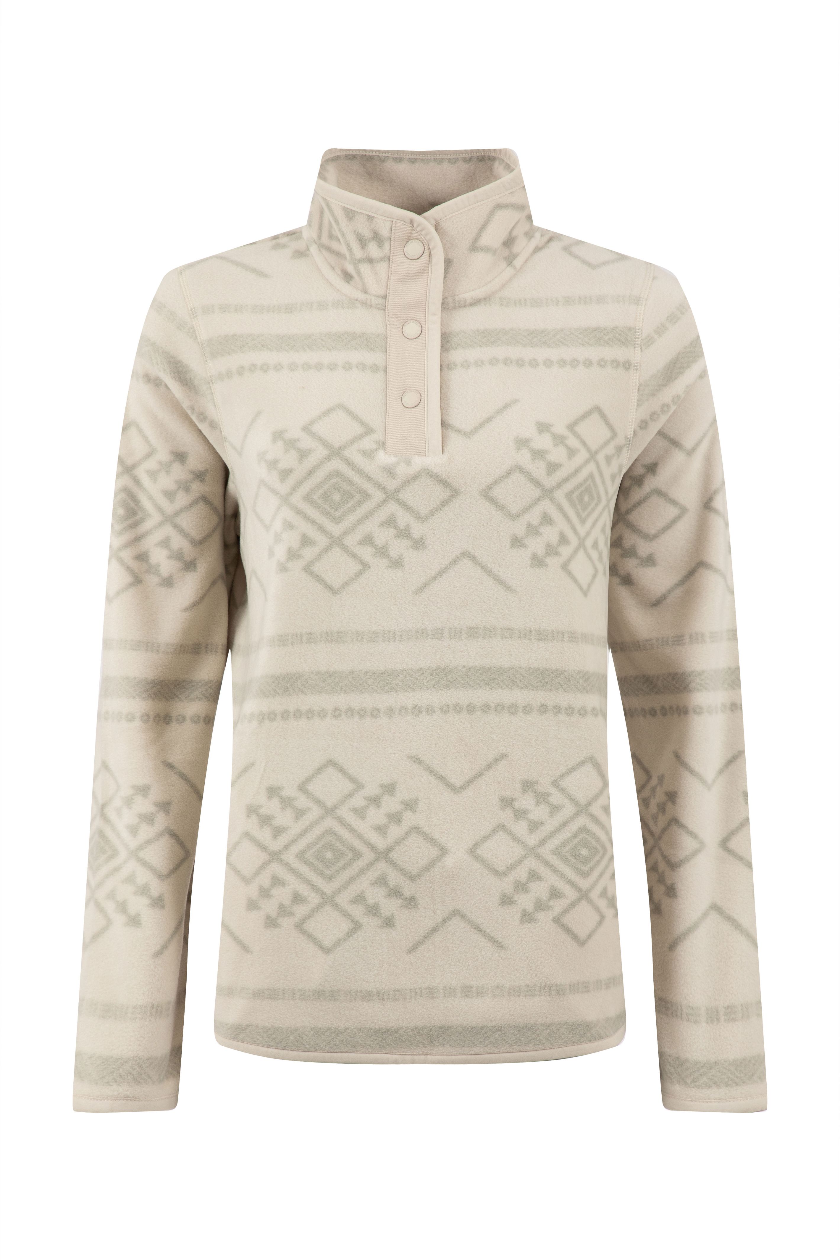 The Amy Printed Microfleece is warm and cosy with a brushed back inner, and comes in two tonal prints for the season. The high neck can be fastened with poppers, and this warm jumper is complete with hand slip pockets.