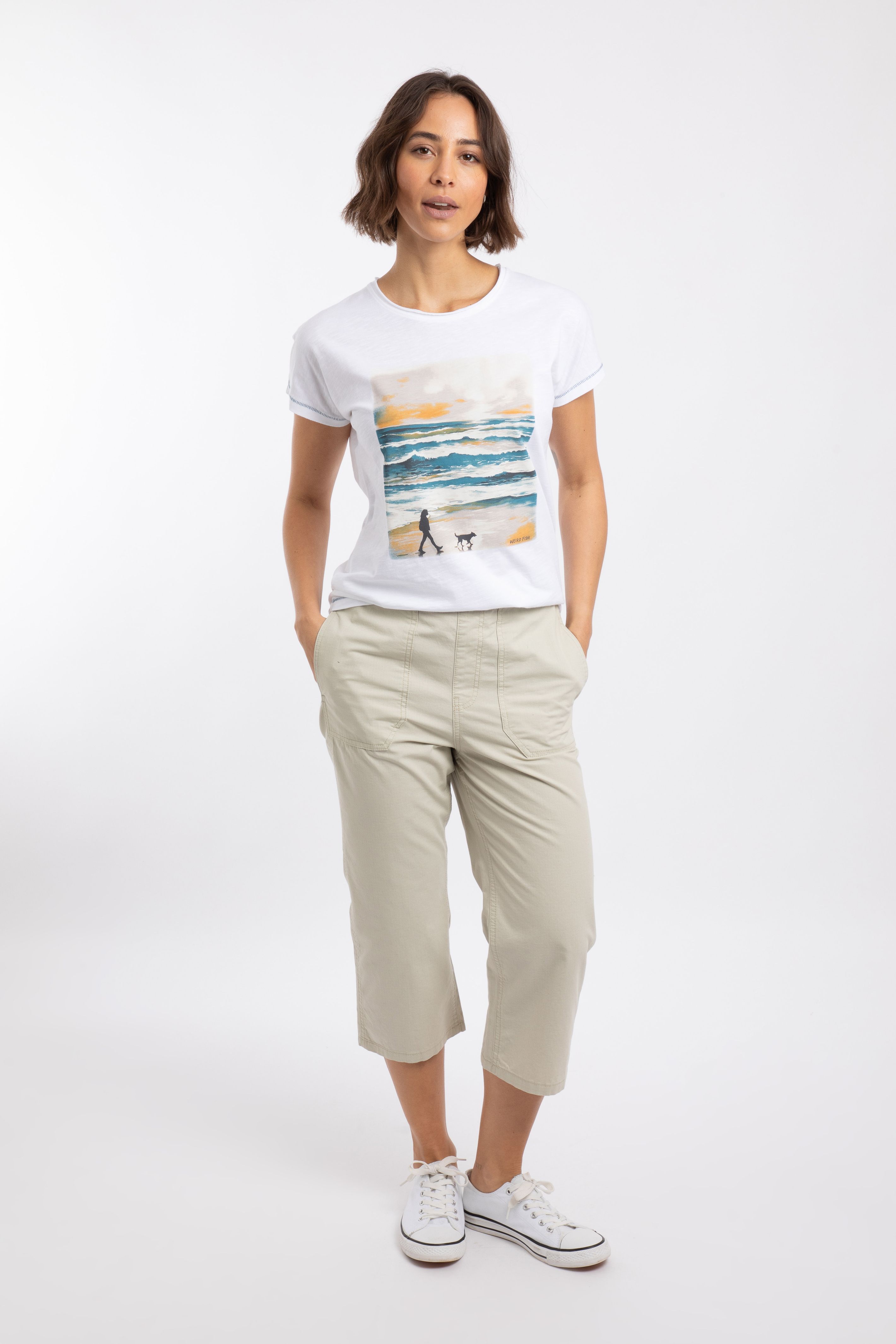 With the success of our much-loved Salena trousers, we bring you an updated shape in our Anyar 3/4 Length Ripstop Trousers. Still great for outdoor adventures thanks to the durable ripstop fabric, they have an easy-wear elasticated waist, hand slip pockets, and two back pockets.