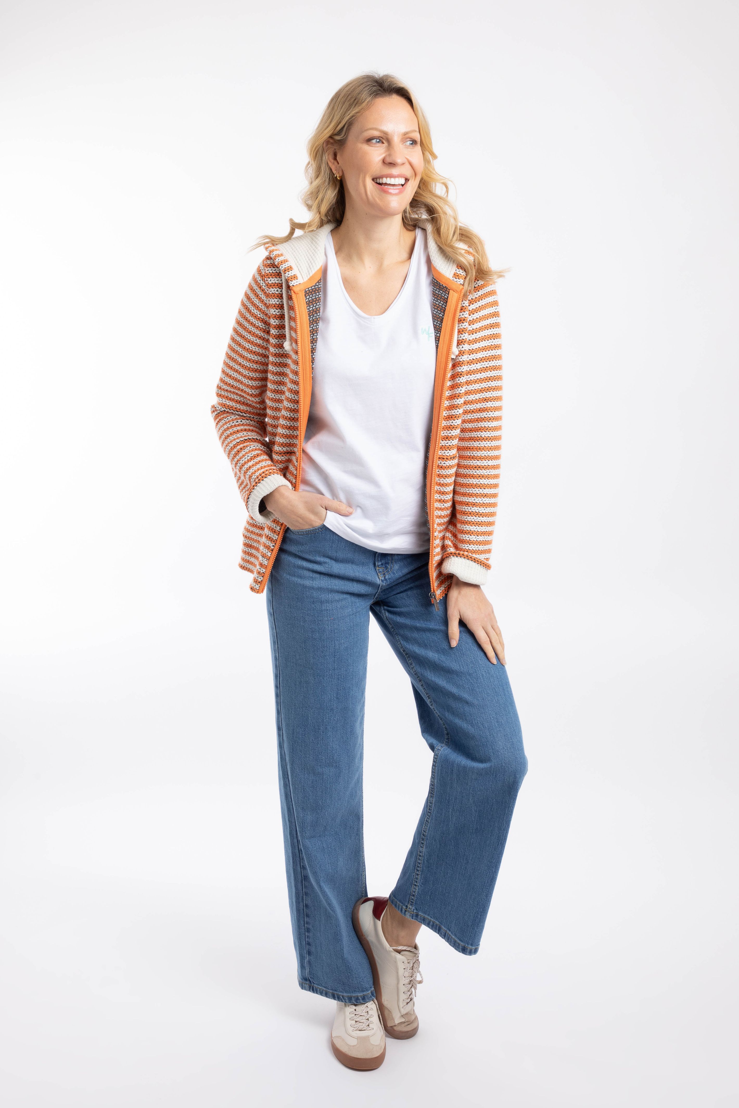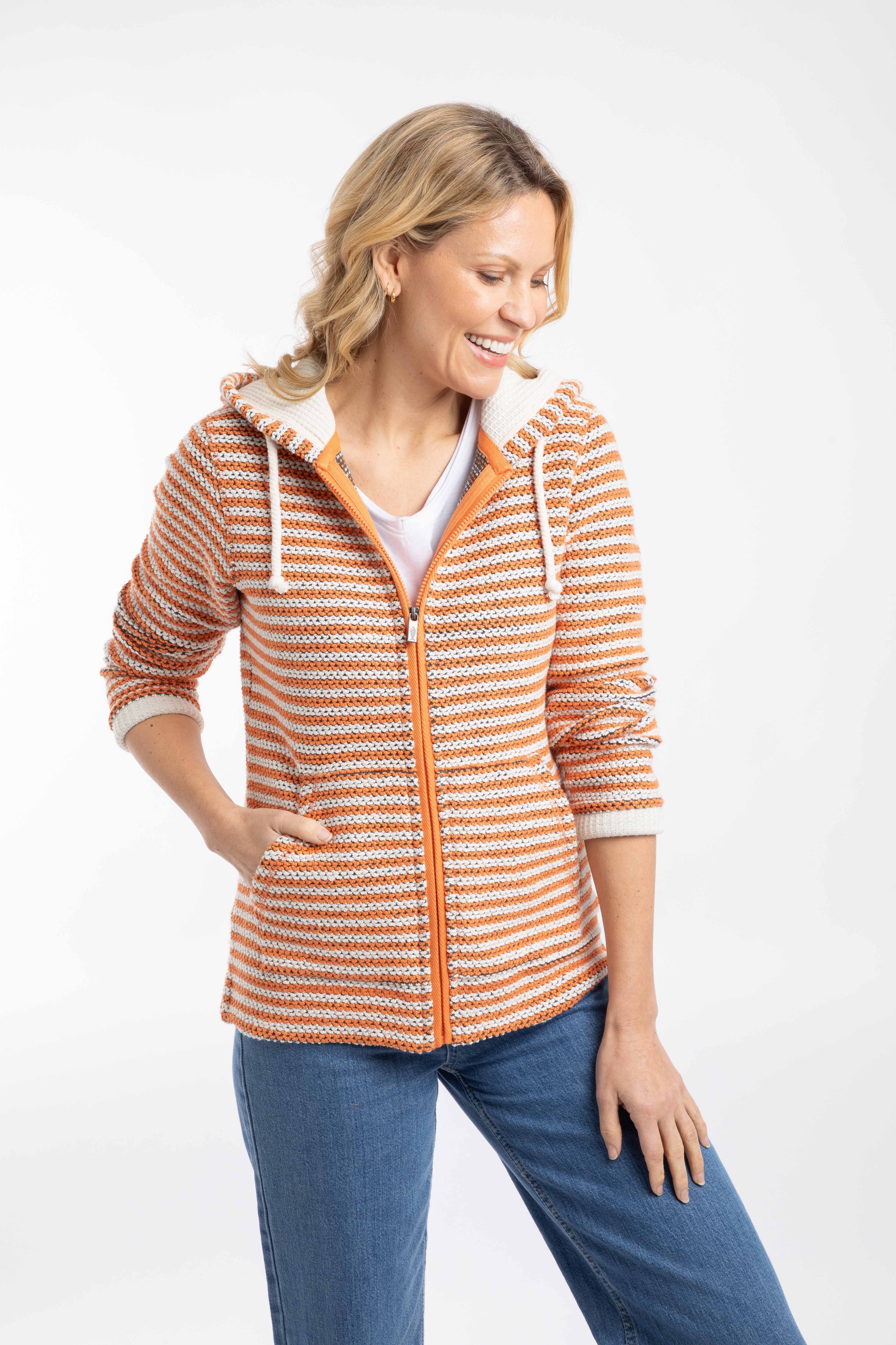 We love our Macaroni fabric, and we love stripes, so it was about time we married the two together. In our Fisher Full Zip Stripe Macaroni Hoodie, you get all the great features of our classic Chicoa Macaroni, but with this added nautical stripe design. Great as a jacket alternative for those in-between days, and who doesn't love a hood?! These Macaroni sweatshirts really stand the test of time, lasting wash after wash, the more well-loved they are, the more relaxed and comfy they become, just like your favourite pair of jeans, which will look great with this sweatshirt by the way.