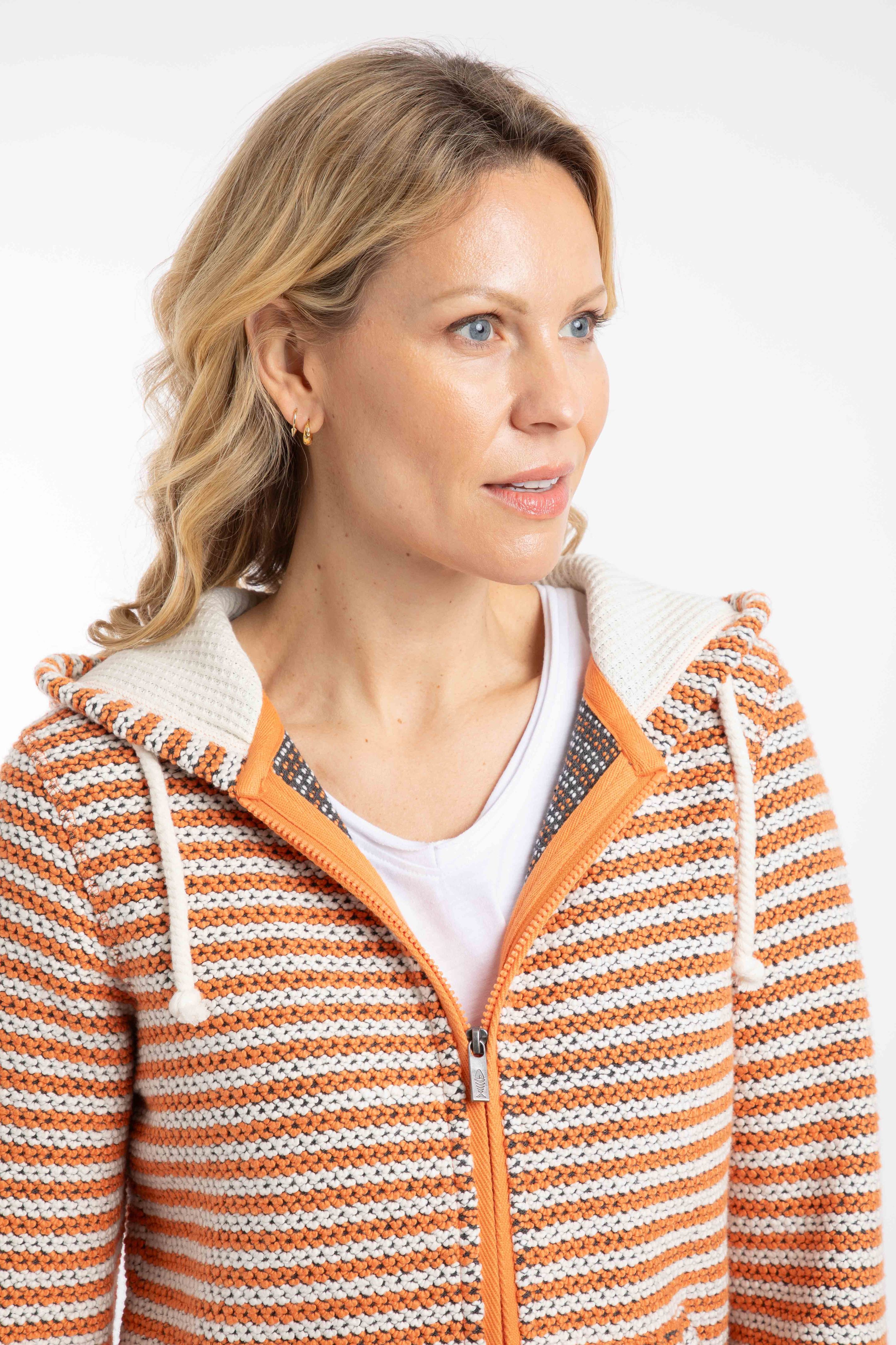 Fisher Full Zip Stripe Macaroni Hoodie Apricot
