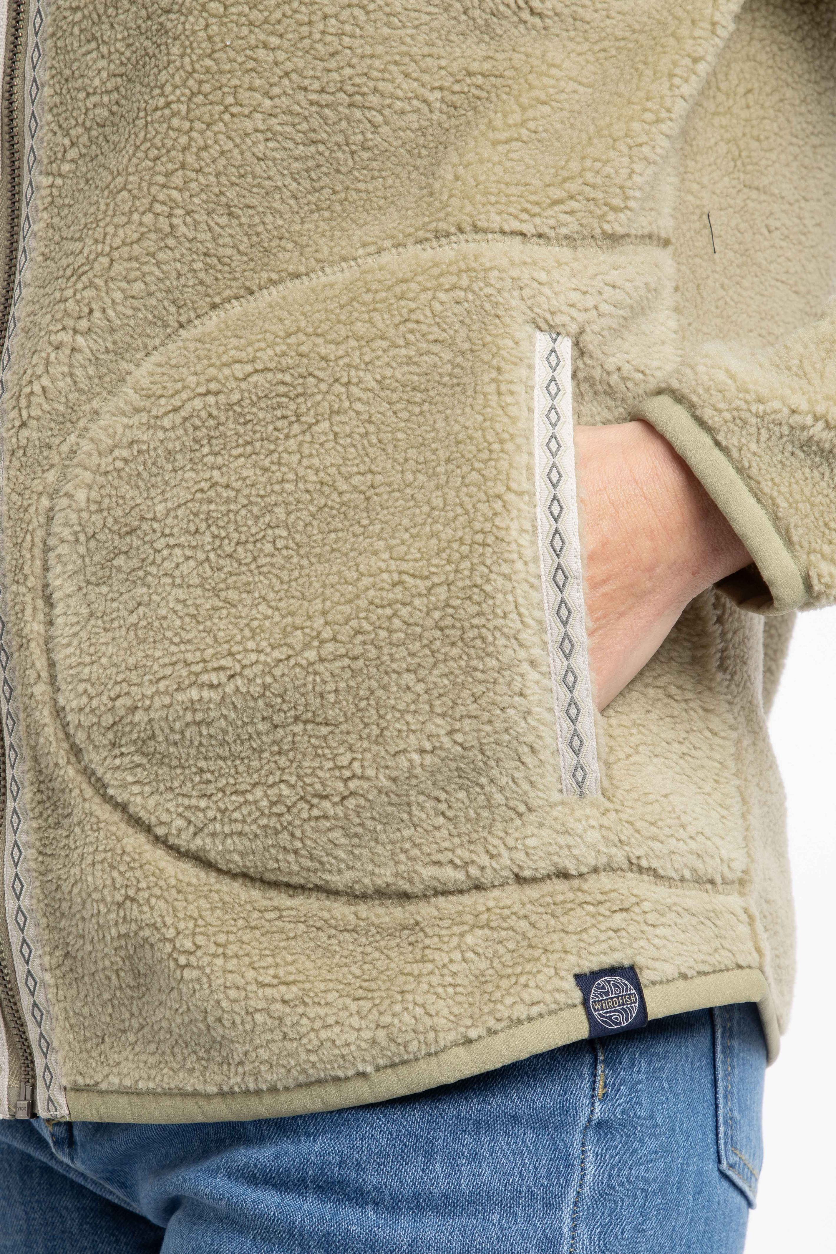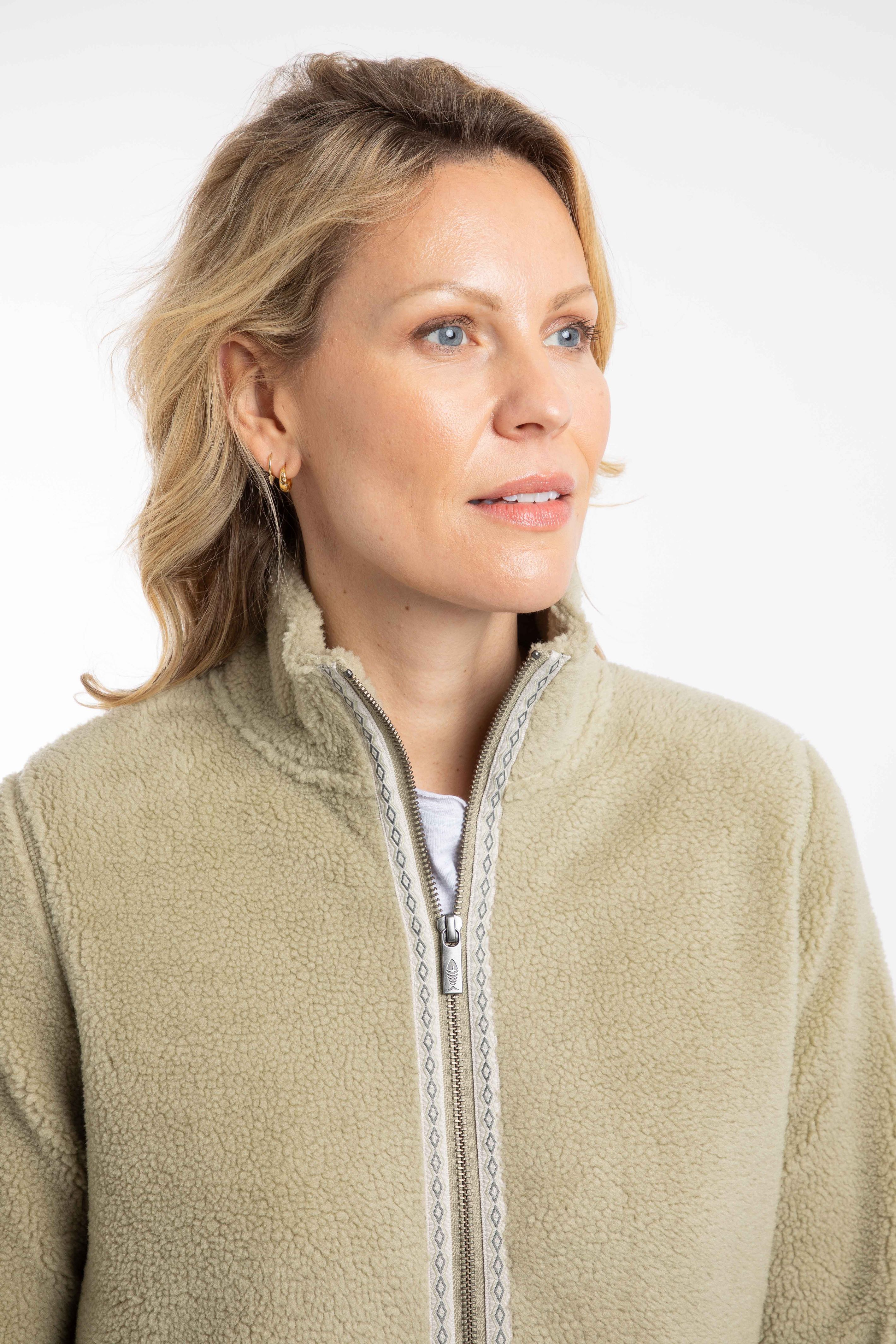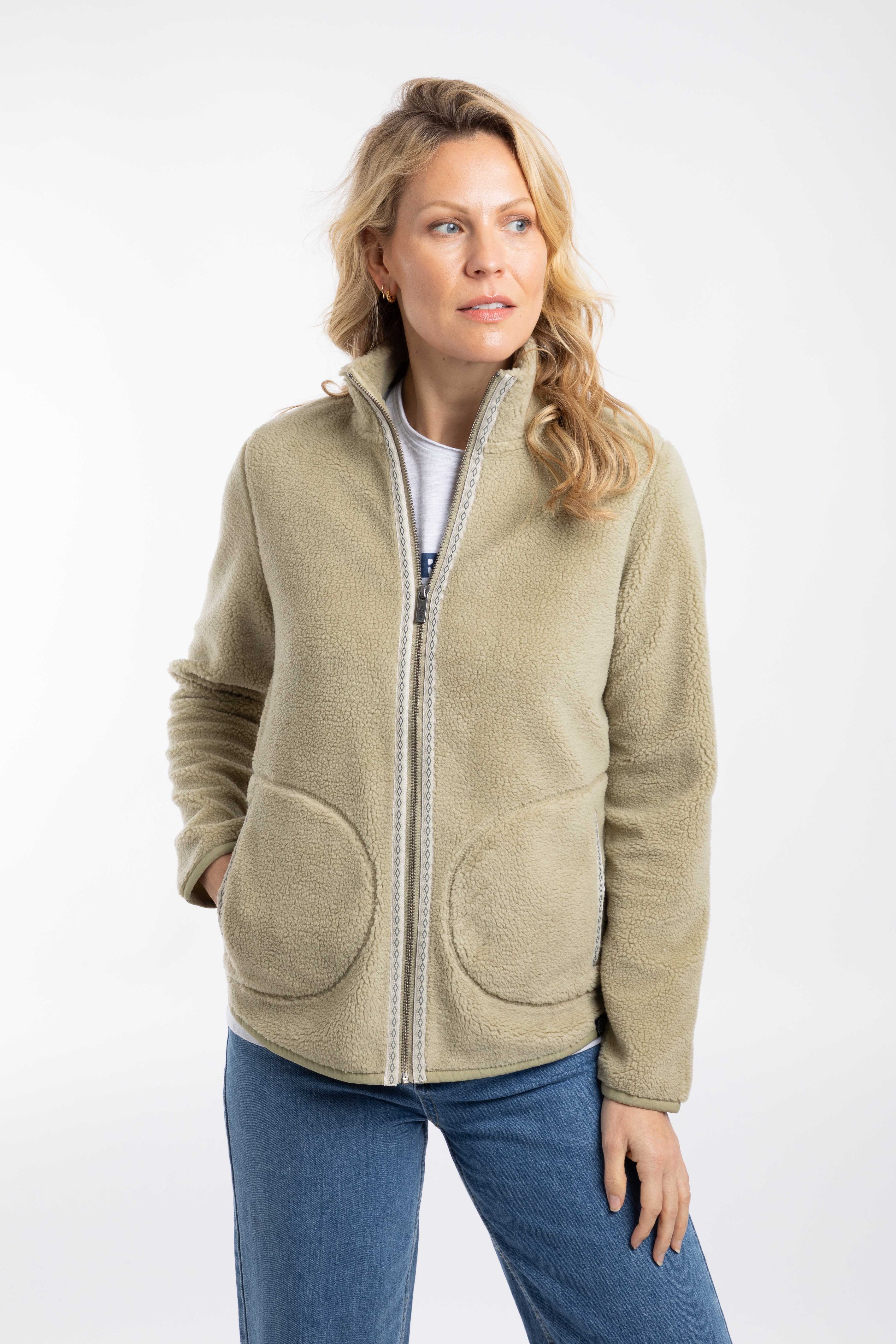 In the winter, our Borg fleece is very popular, so we have created a lighter summer weight. The Lucille Lightweight Full Zip Borg Fleece is still lovely and warm, but without the bulk. With hand-slip pockets and attractive, patterned tape details throughout.