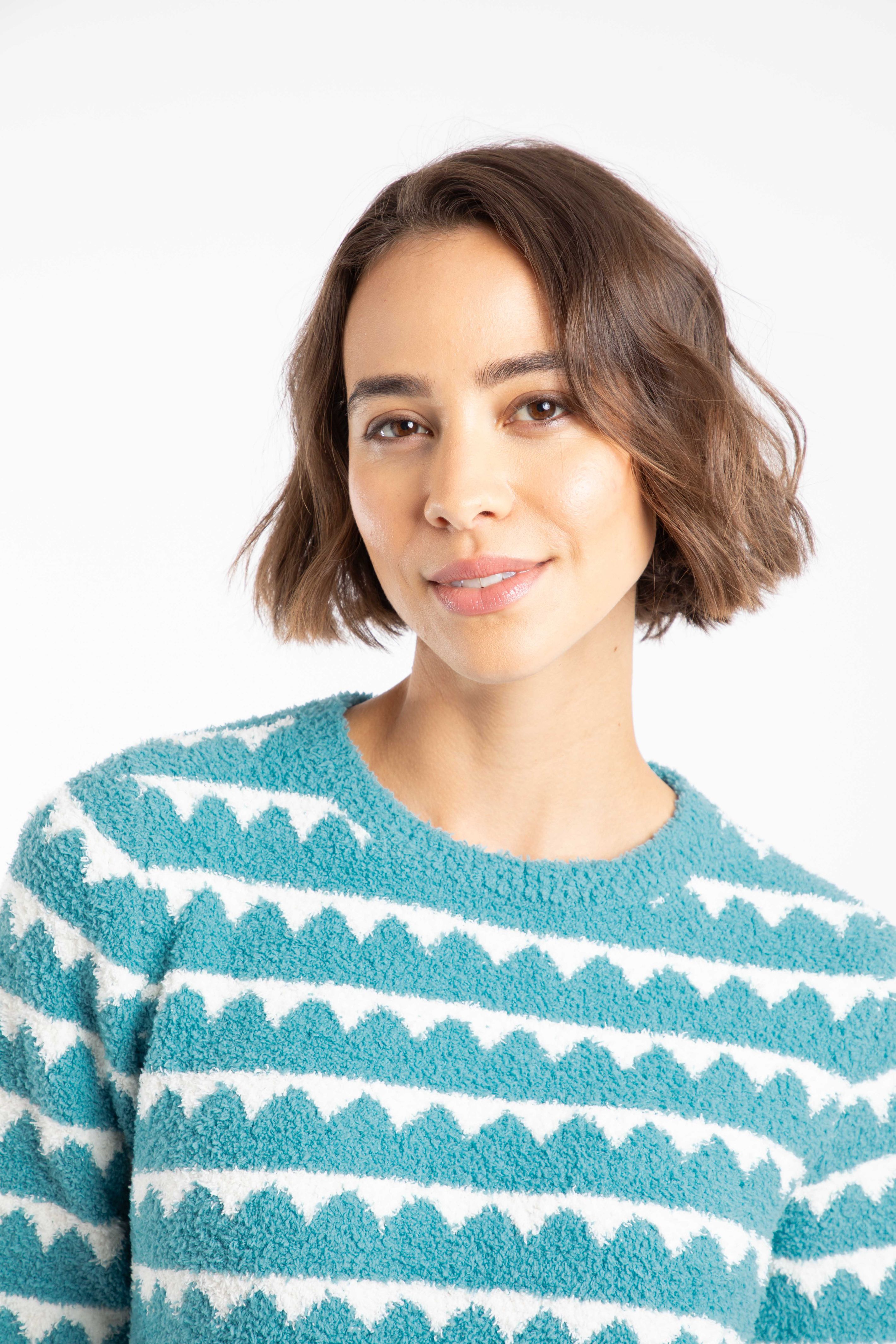 We really do mean cosy when we called this knit the Tyla Cosy Patterned Knit Jumper. The material is really soft and squashy feeling, with a bit of stretch. It is so light but cosy and warm, you won't want to take it off.
