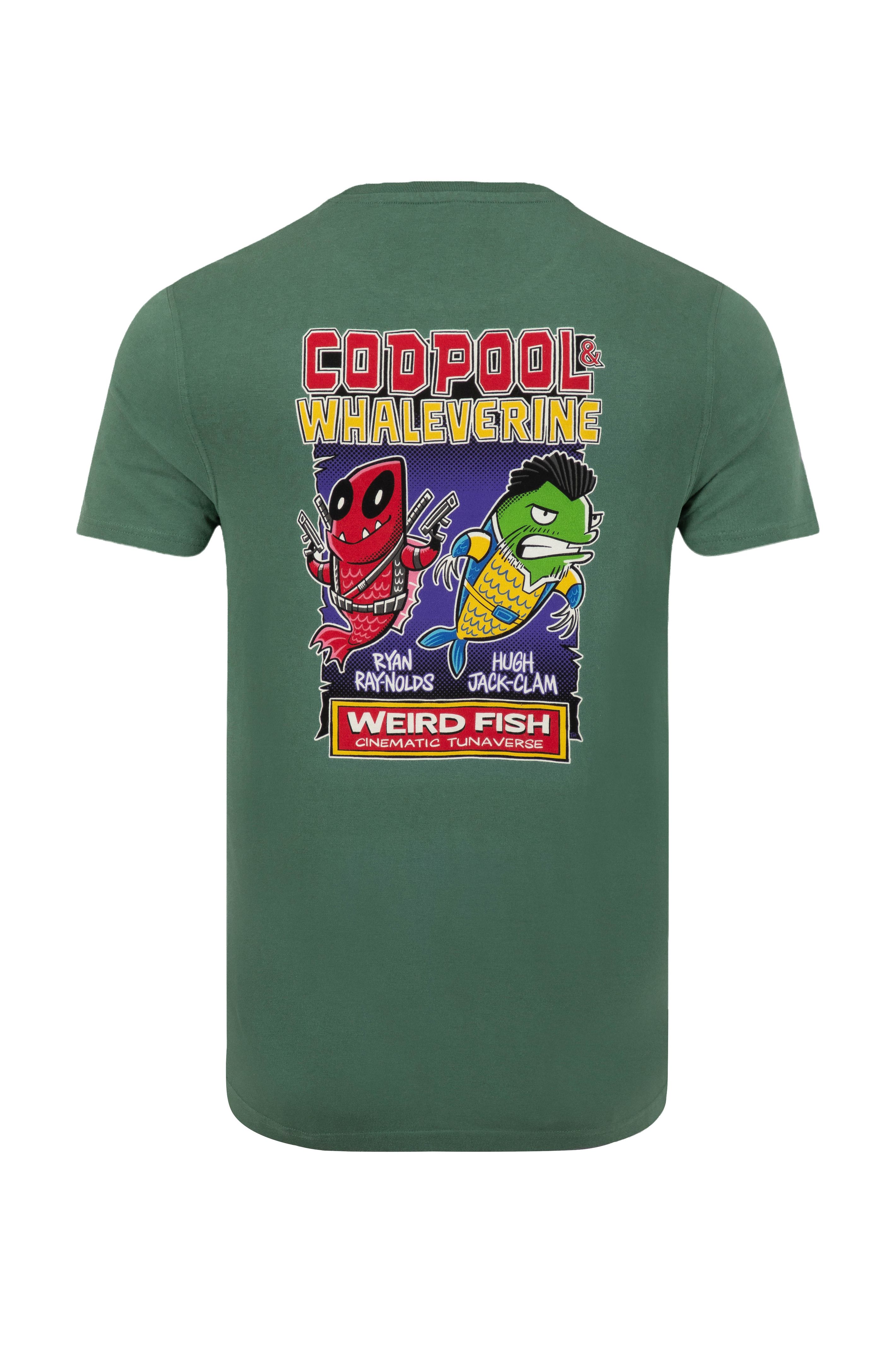 Possibly the best pairing since Weird met Fish, our Codpool Back Print Artist T-Shirt features the baddie fighting duo of Codpool and Whaleverine, brought to you from the cinematic tunaverse.