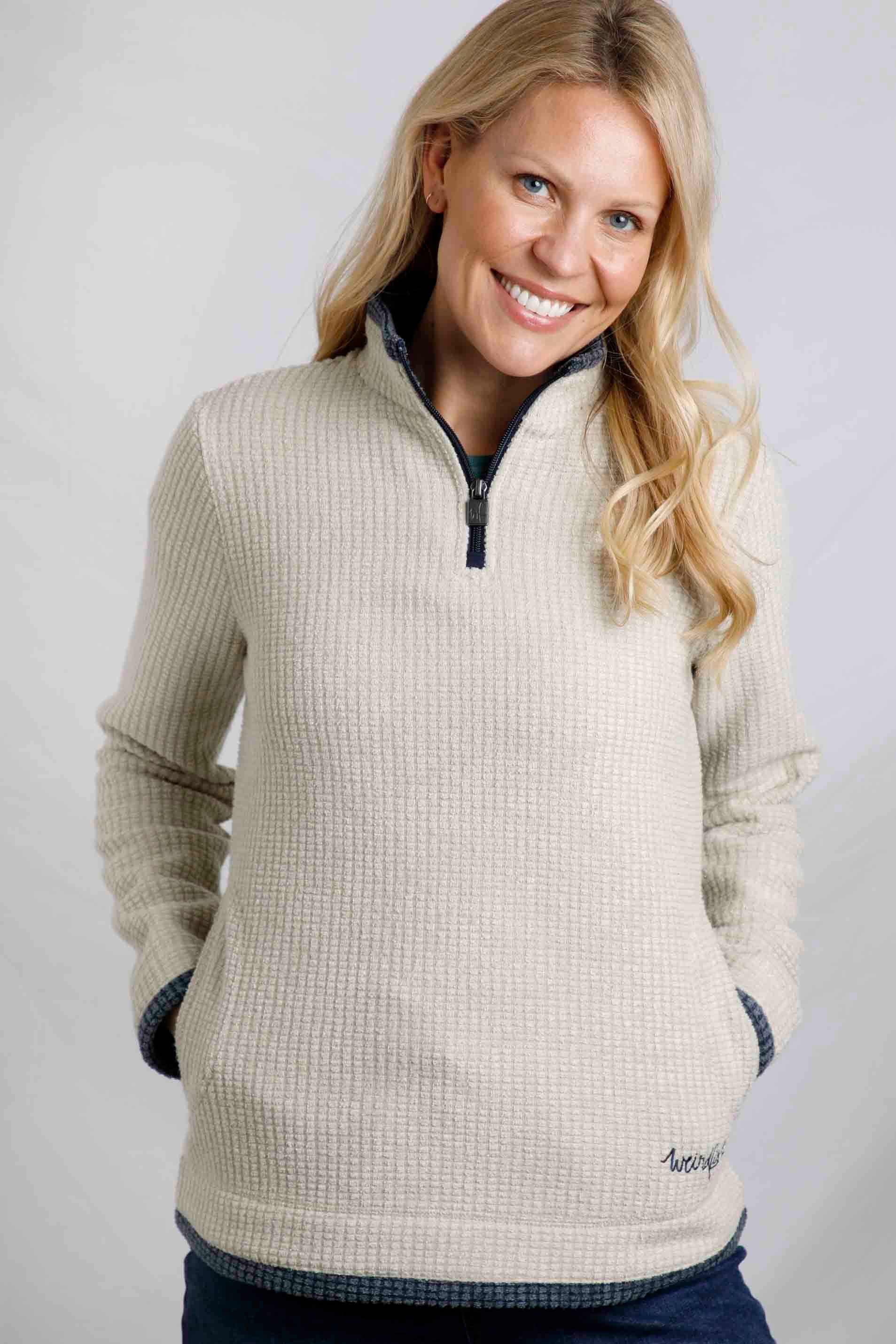 Beye 1/4 Zip Grid Fleece Ecru