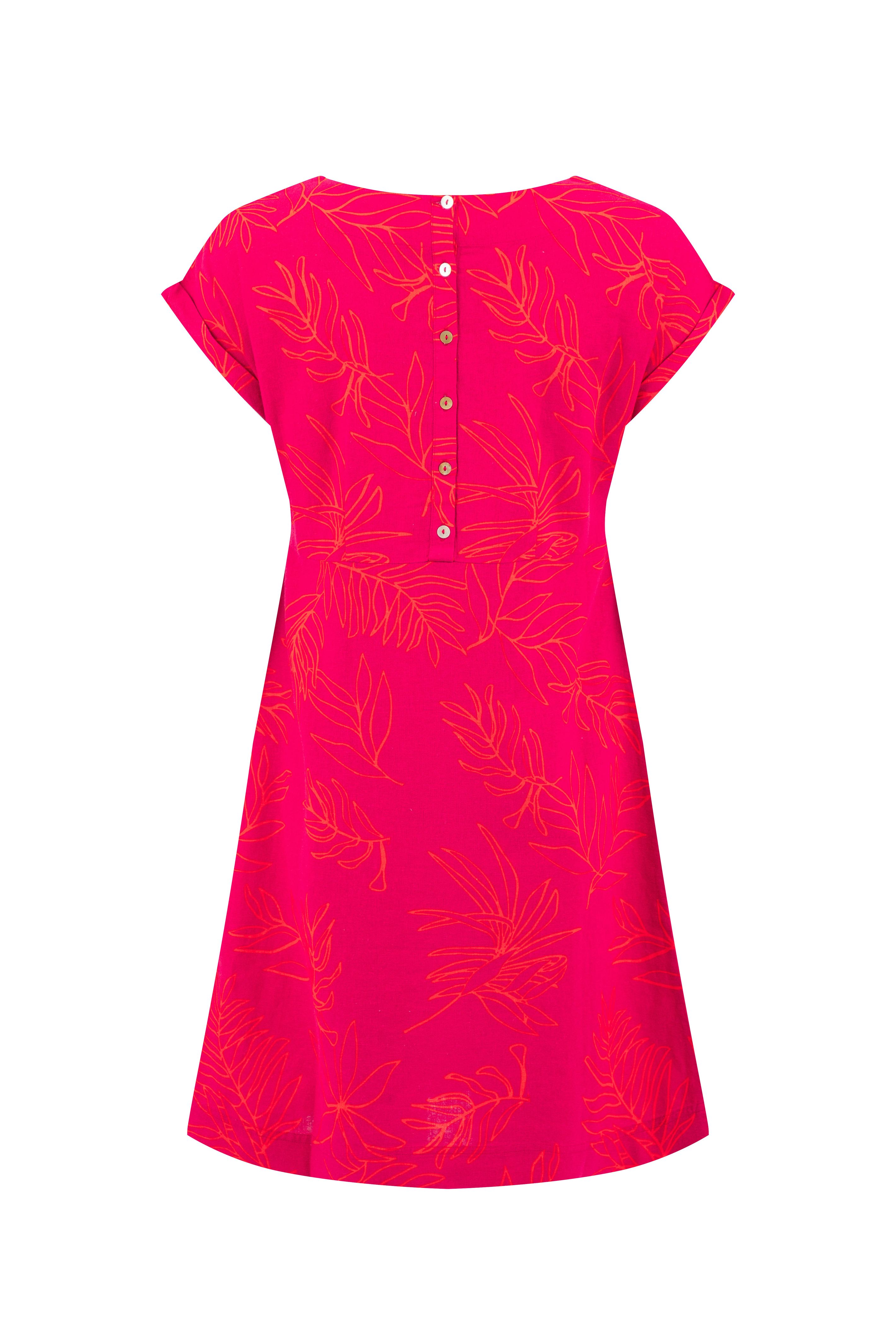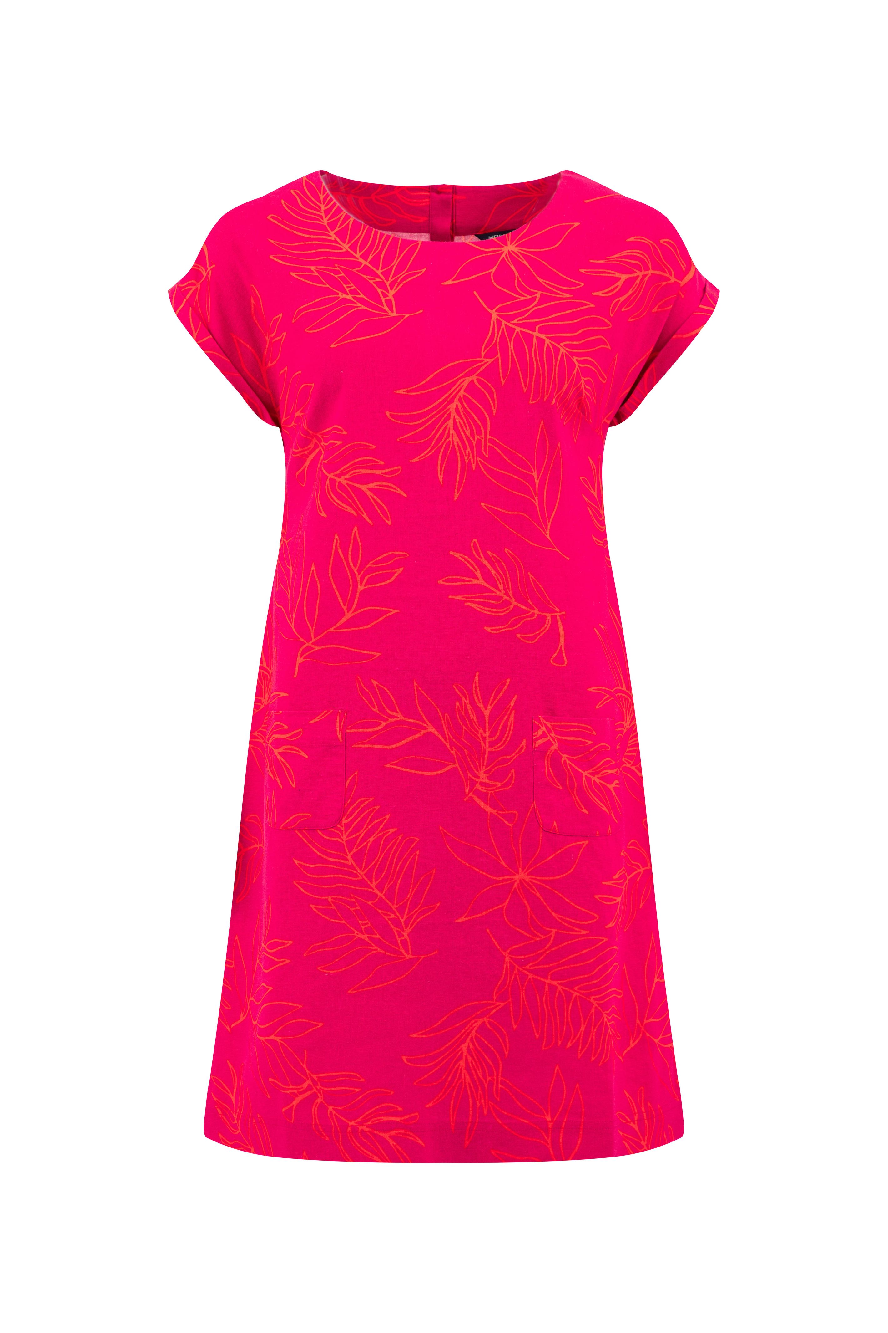 Orlando Printed Linen Rich Shift Dress Dark Pink