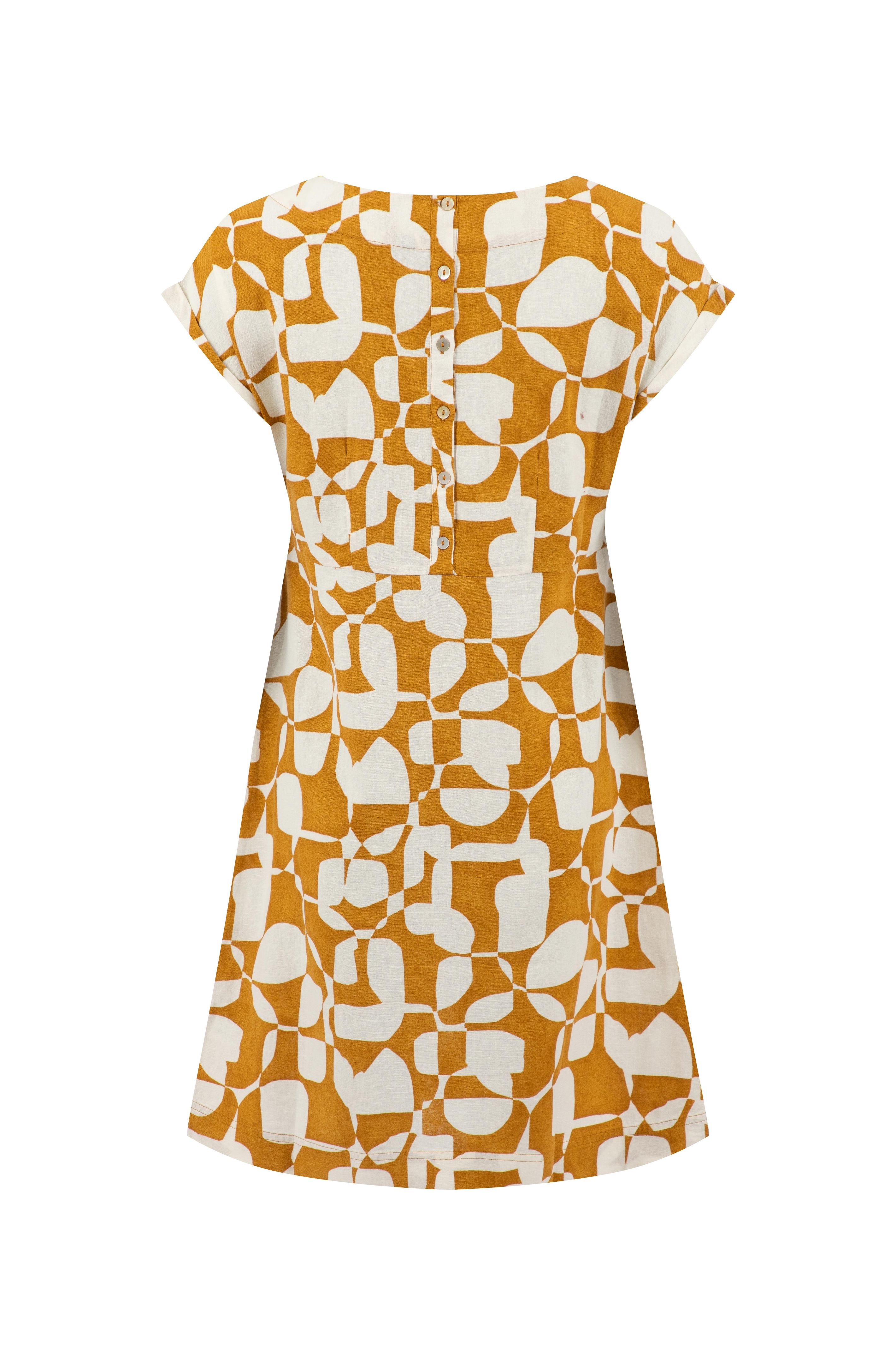 Orlando Printed Linen Rich Shift Dress Ochre