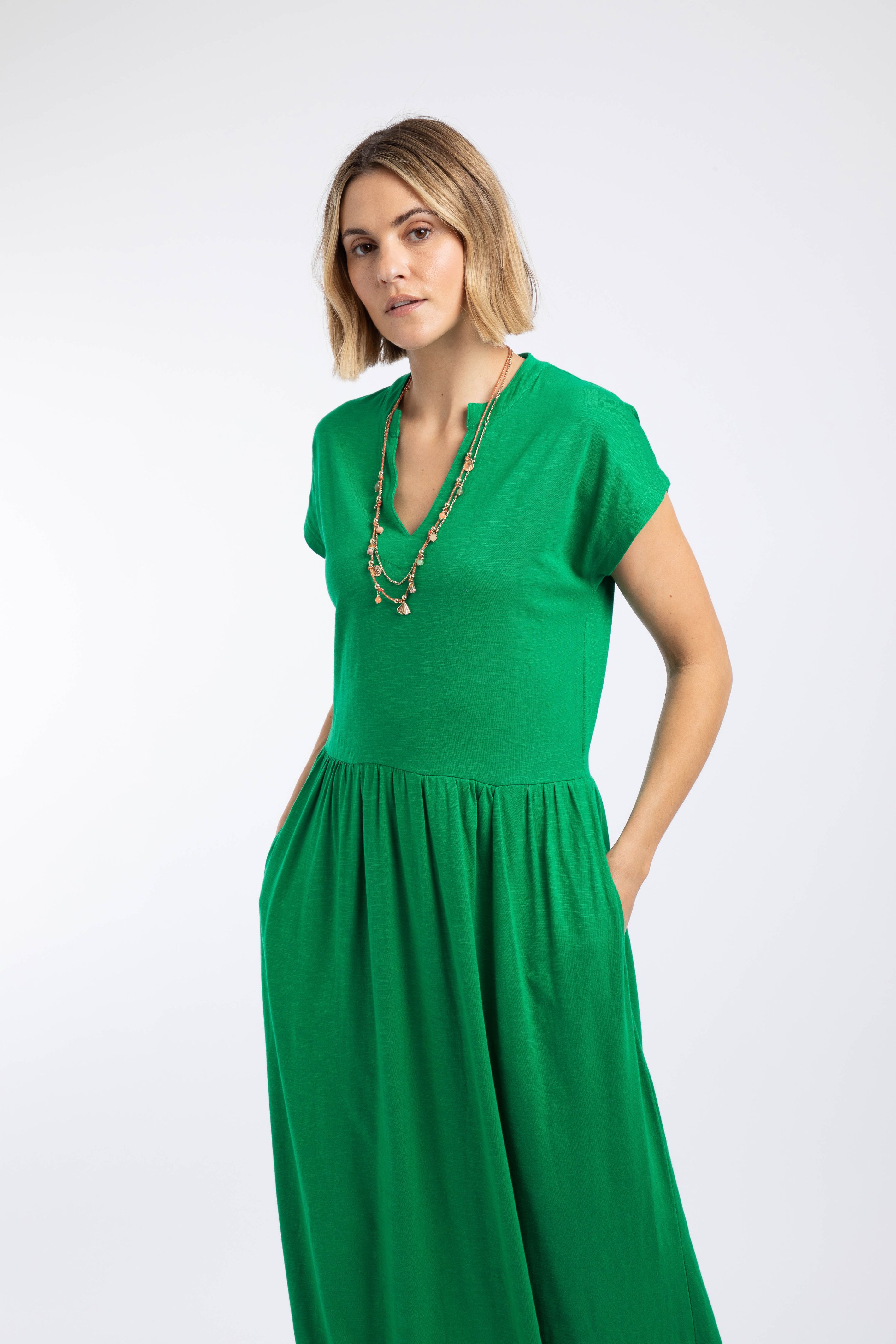 Reed Plain Jersey Notch Neck Maxi dress Heritage Green