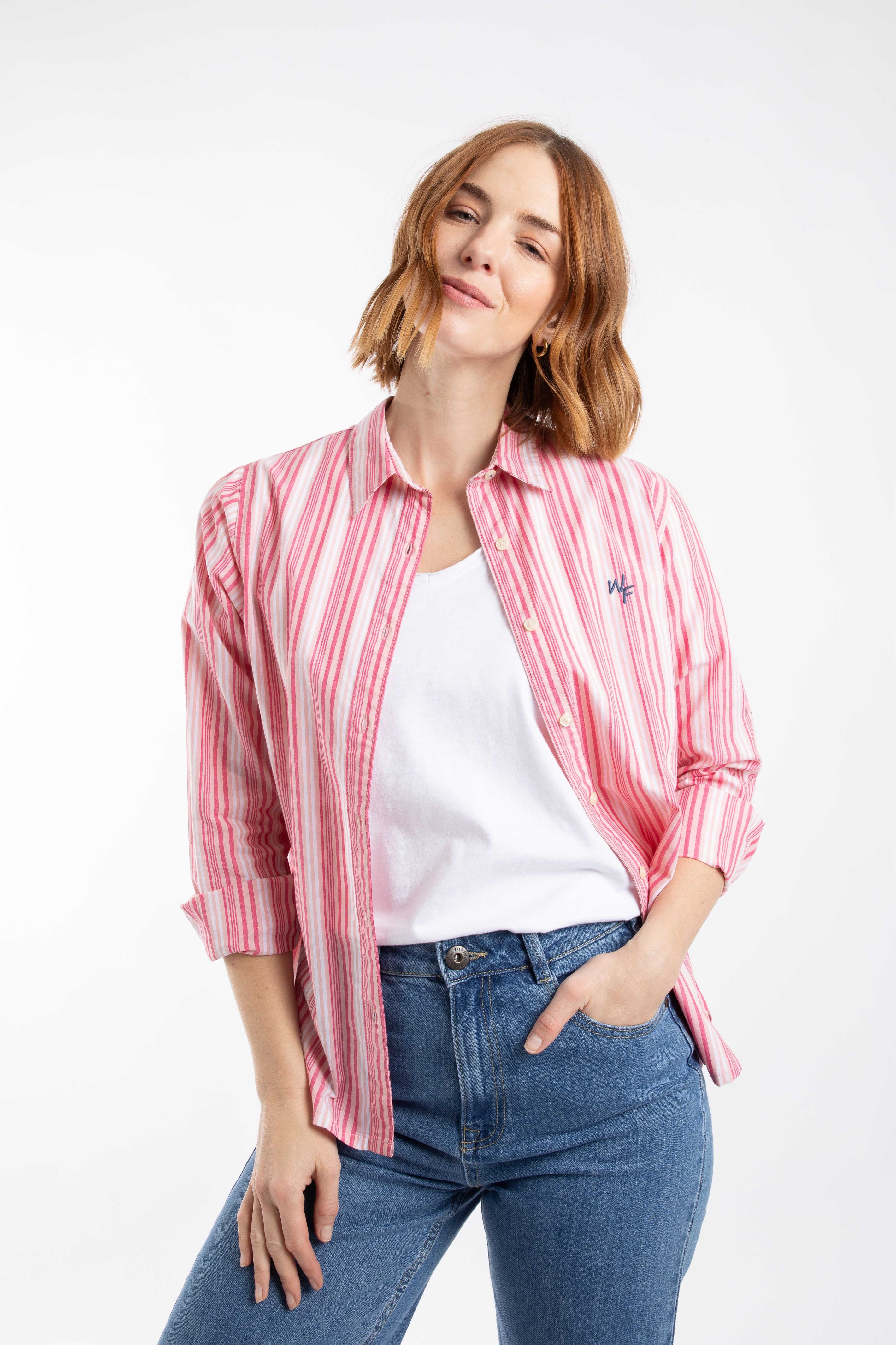 There is something special about that oversized shirt, borrowed from a partner, and we can give you that feeling in your very own Roscoe Striped Boyfriend Shirt. The smart Oxford style looks great dressed up or down and layered under knits.
