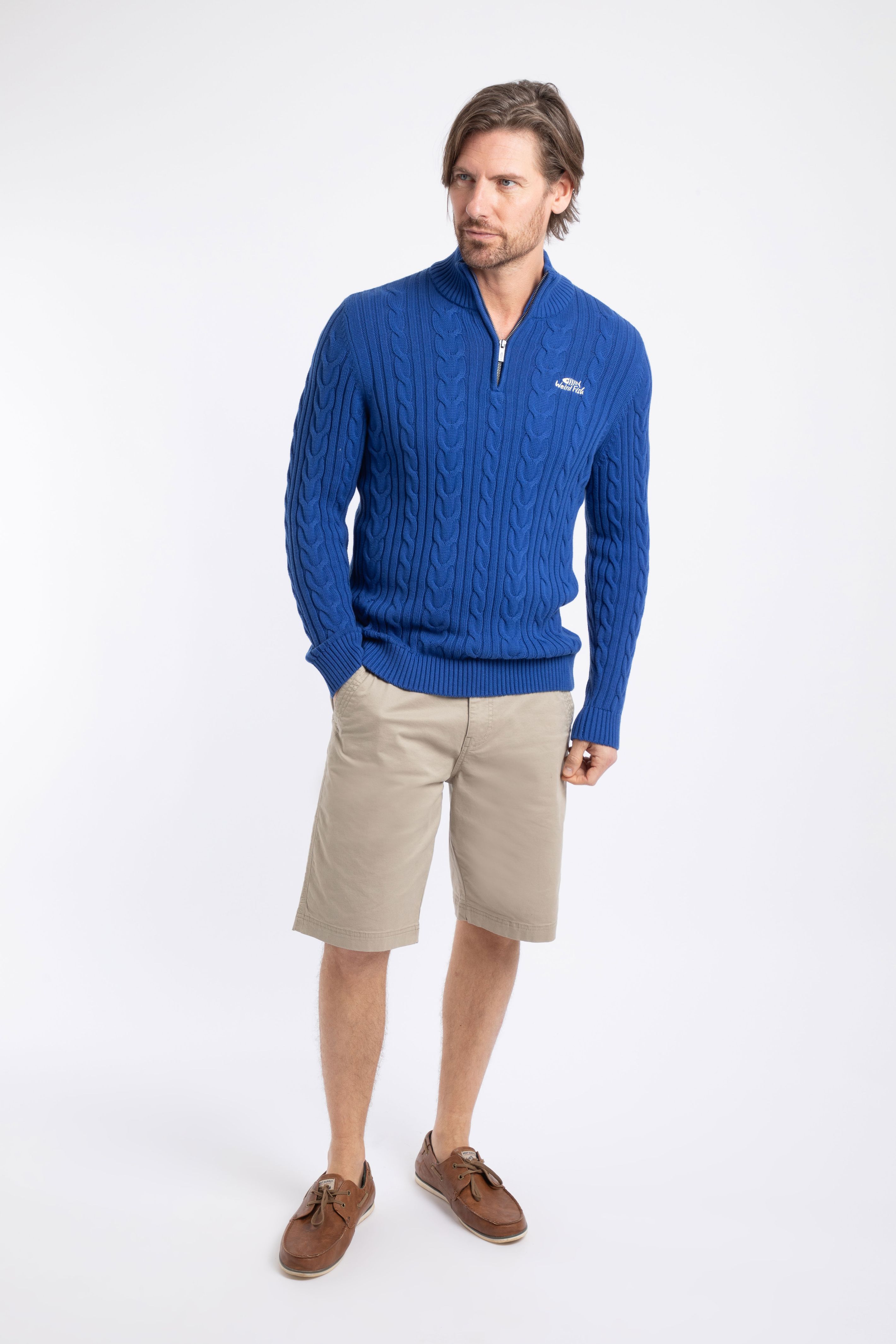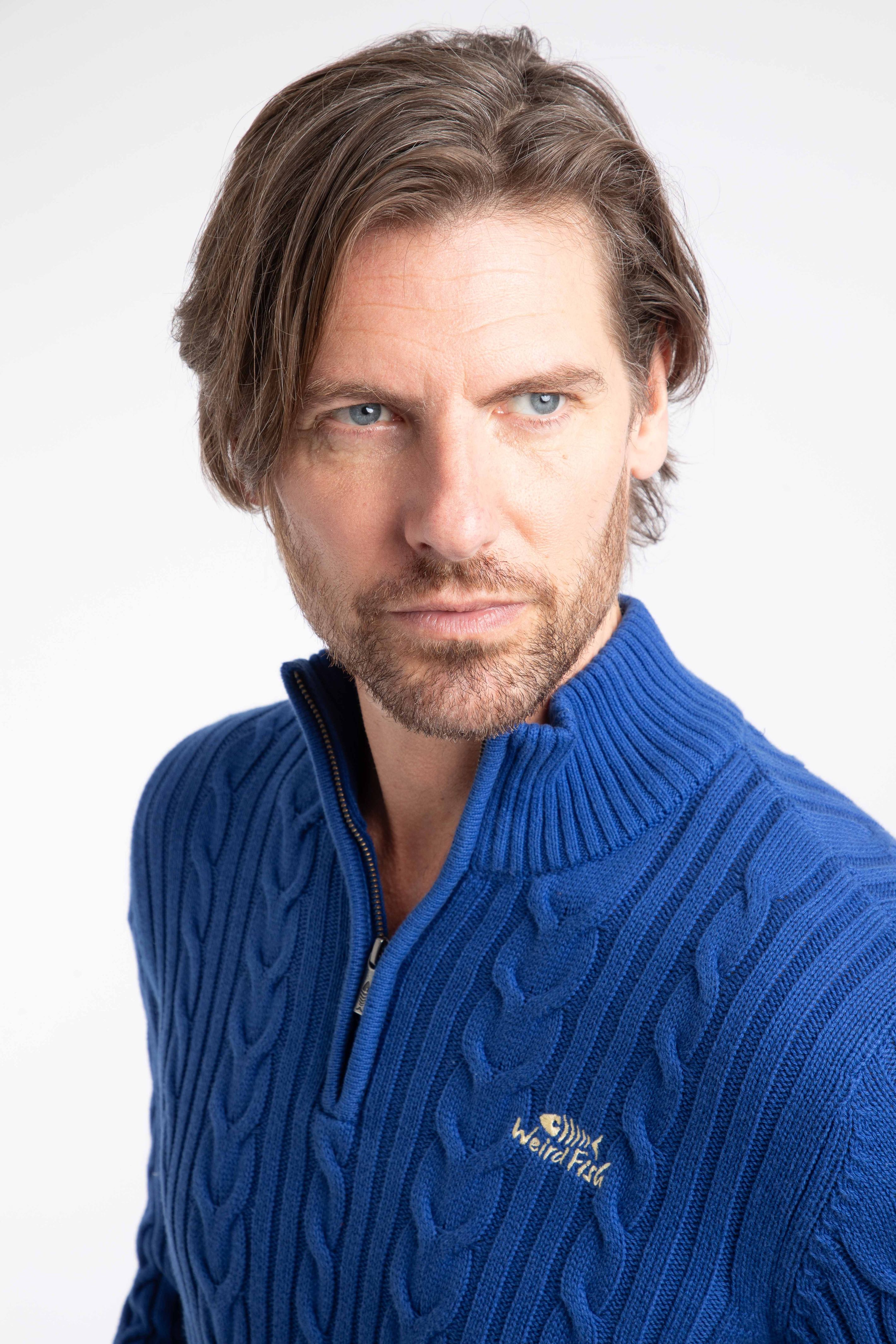 Heath 1/4 Zip Cable Knit Jumper Mazarine Blue