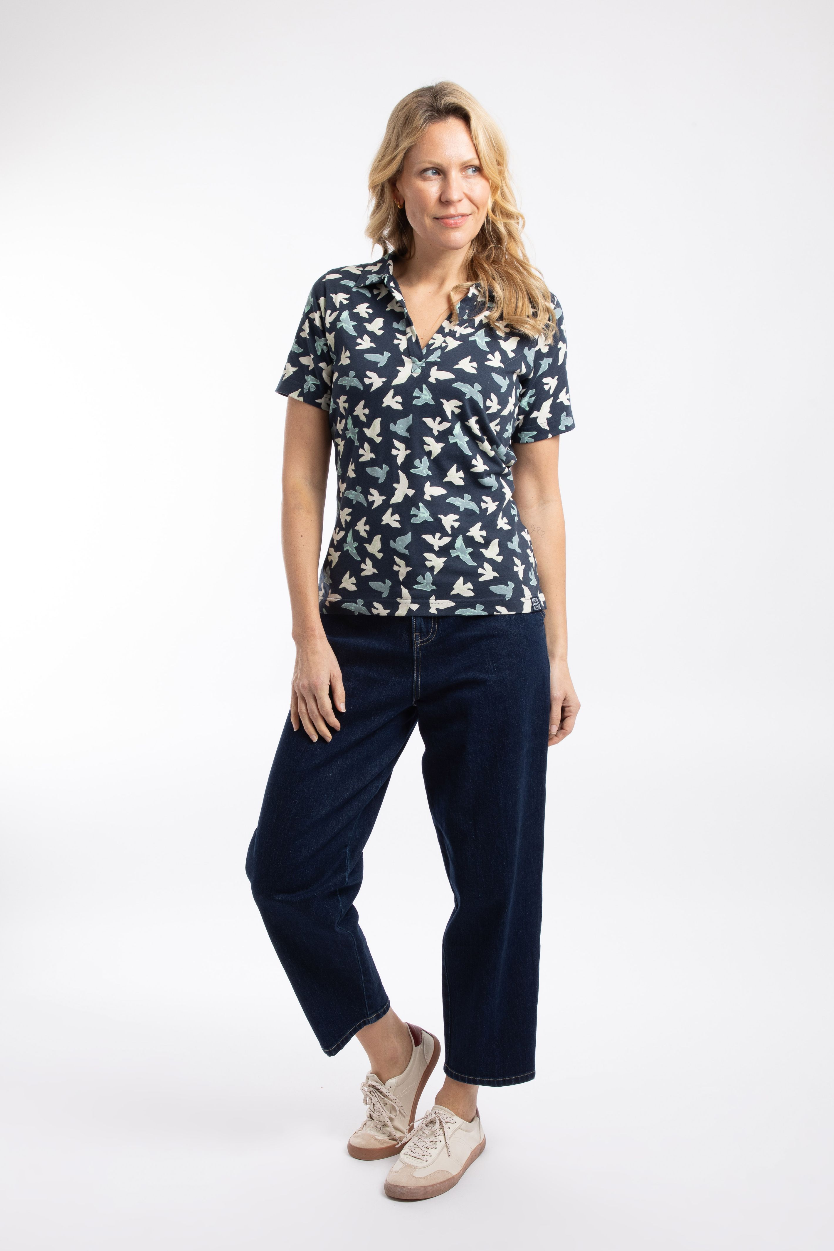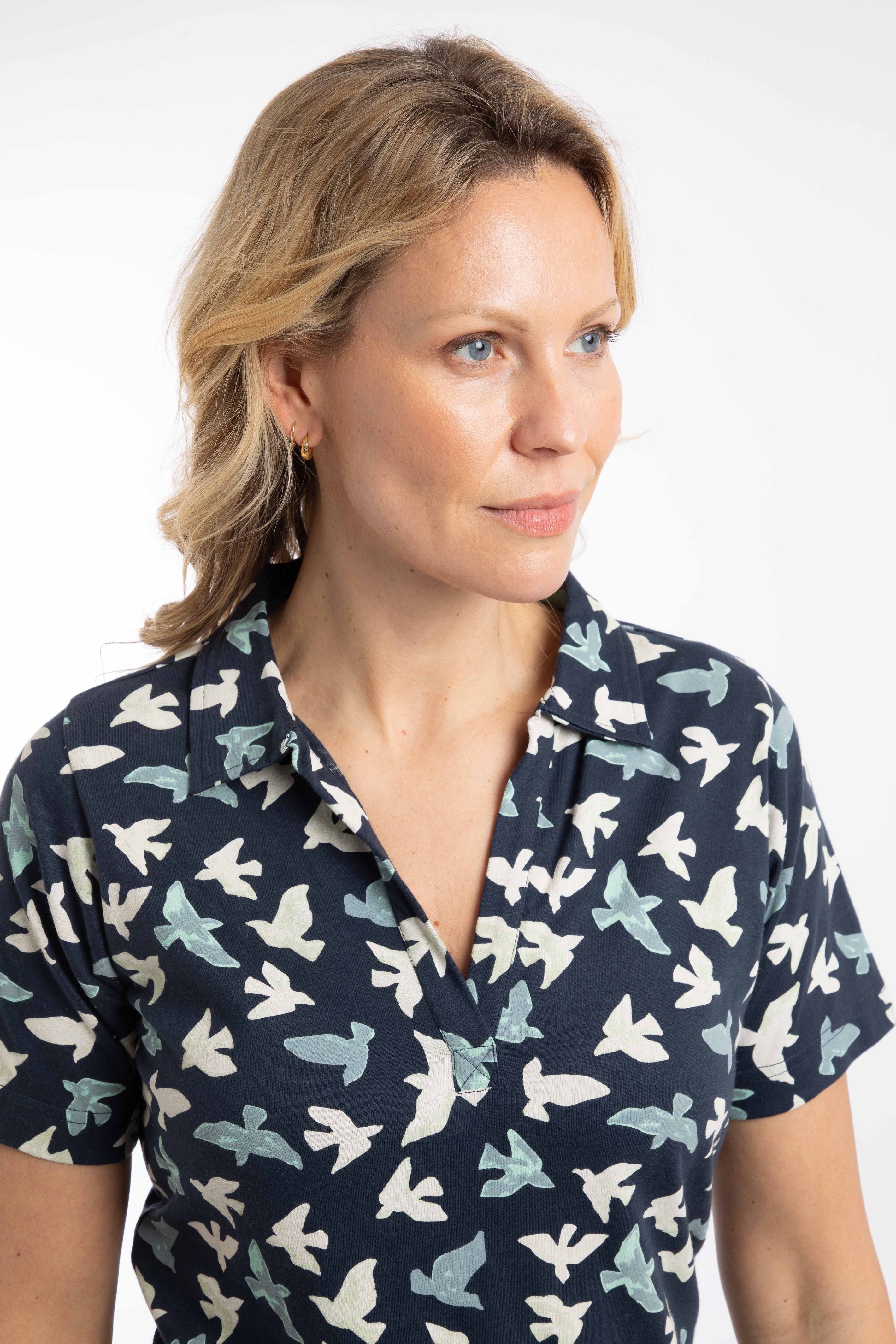 If you fancy something a little different from your standard tee, try our Rhenena Printed Jersey Polo Shirt. We have added a trophy neck for a retro feel and flattering shape. Choose your favourite print design in this soft and stretchy jersey material.