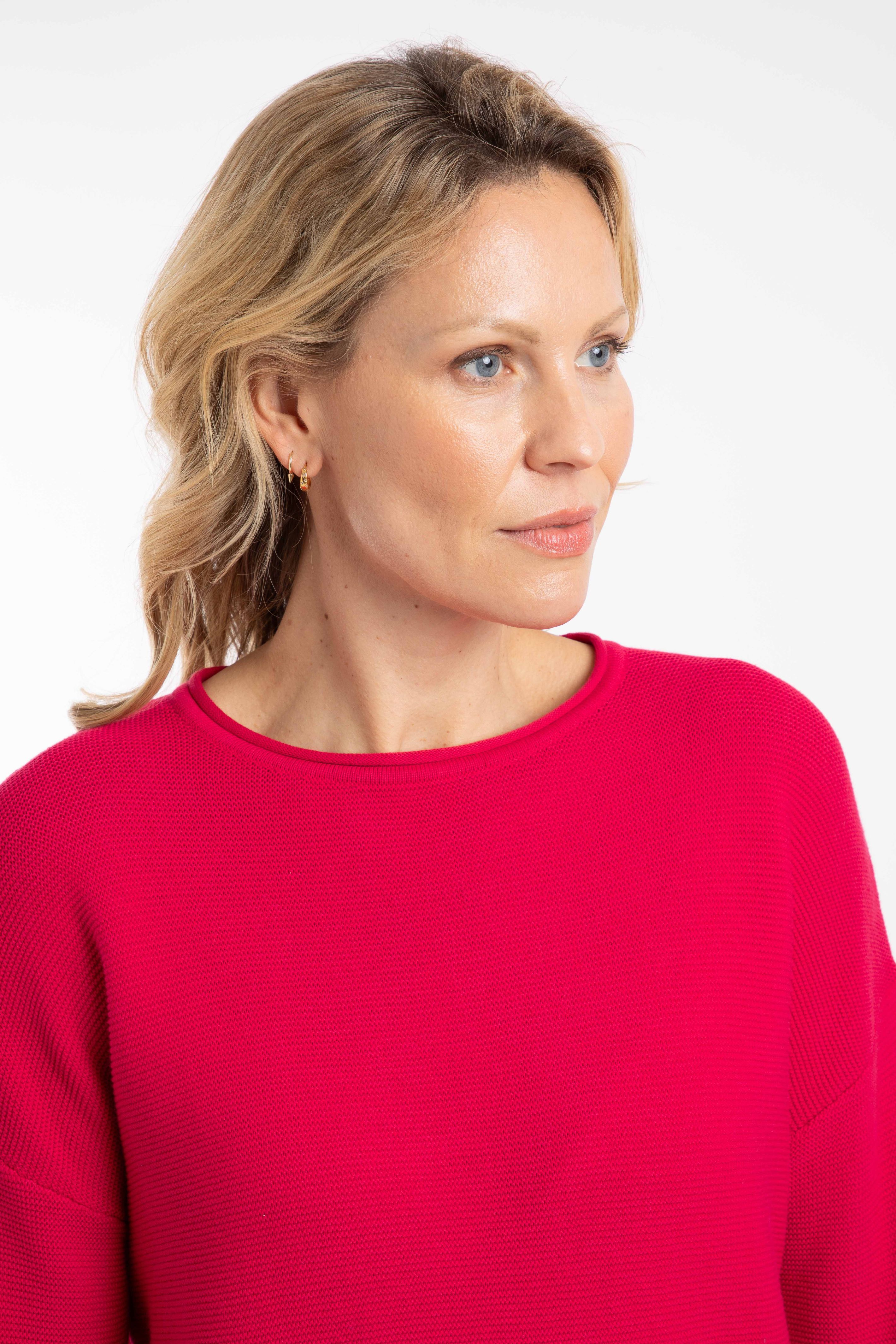 You will love the versatility of the Dalla knitted crew neck jumper. It has a great slouchy, relaxed fit, and a fine-gauge knit, so it is easy to manipulate and tuck to create a chic look with our skirts and shorts, or it equally makes a great, quick, pull on jumper to throw on with your favourite jeans too. It comes in two bold, statement colours which look fantastic colour blocked with a contrasting colour bottom, or go simple and timeless by choosing the classic navy.