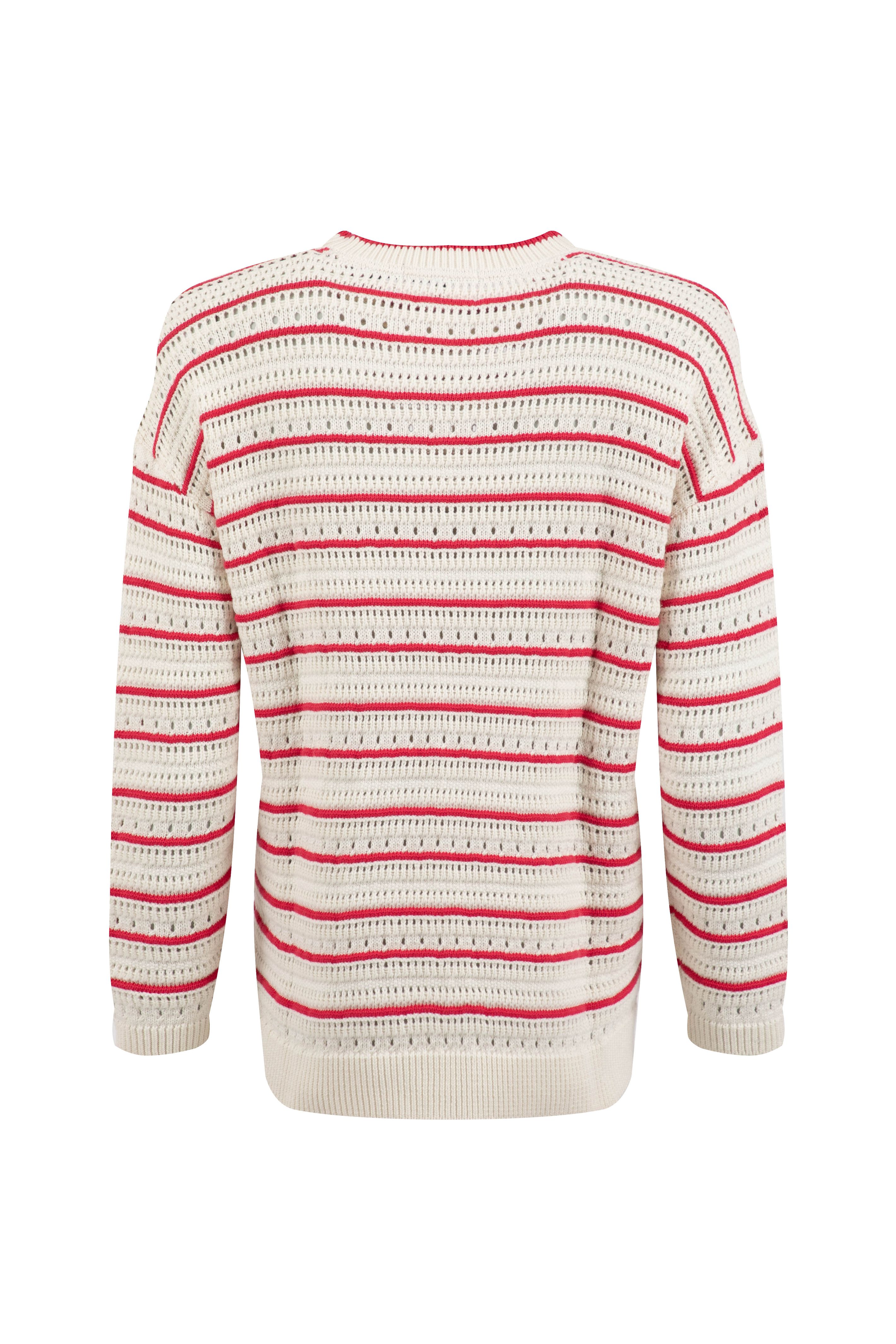 Liah Pointelle Striped Crew Neck Jumper Deep Pink