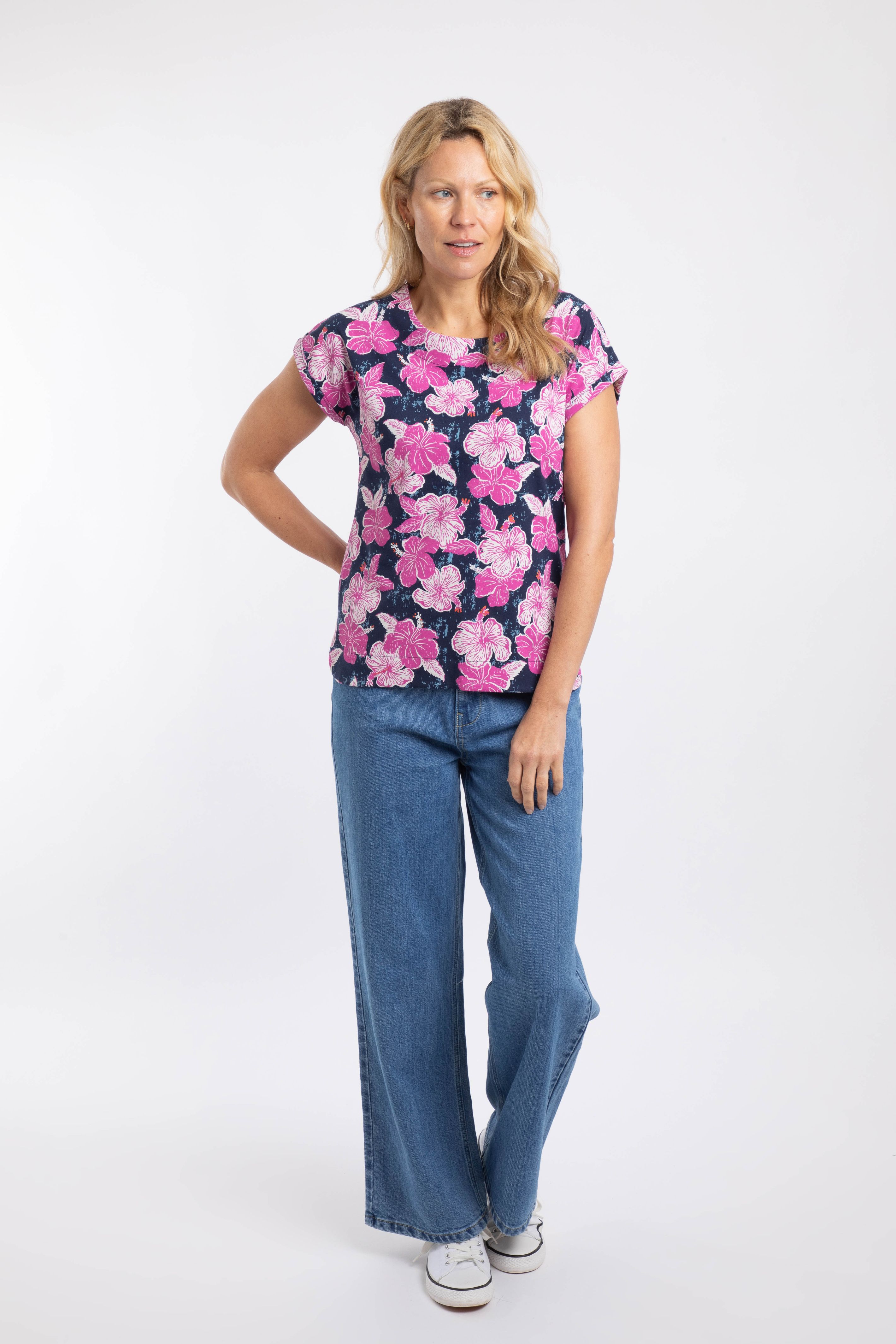 Our Paw Paw Printed Jersey T-Shirt has been around for a long time, and it's easy to see why. Great for everyday wear and made from strong, and soft cotton, with so many beautiful designs, there is a print and pattern for every occasion. Cut with a wide, rounded neckline and flattering wide, short sleeves for extra movement and comfort, you'll love the printed Paw Paw T-Shirt this season and for years to come.