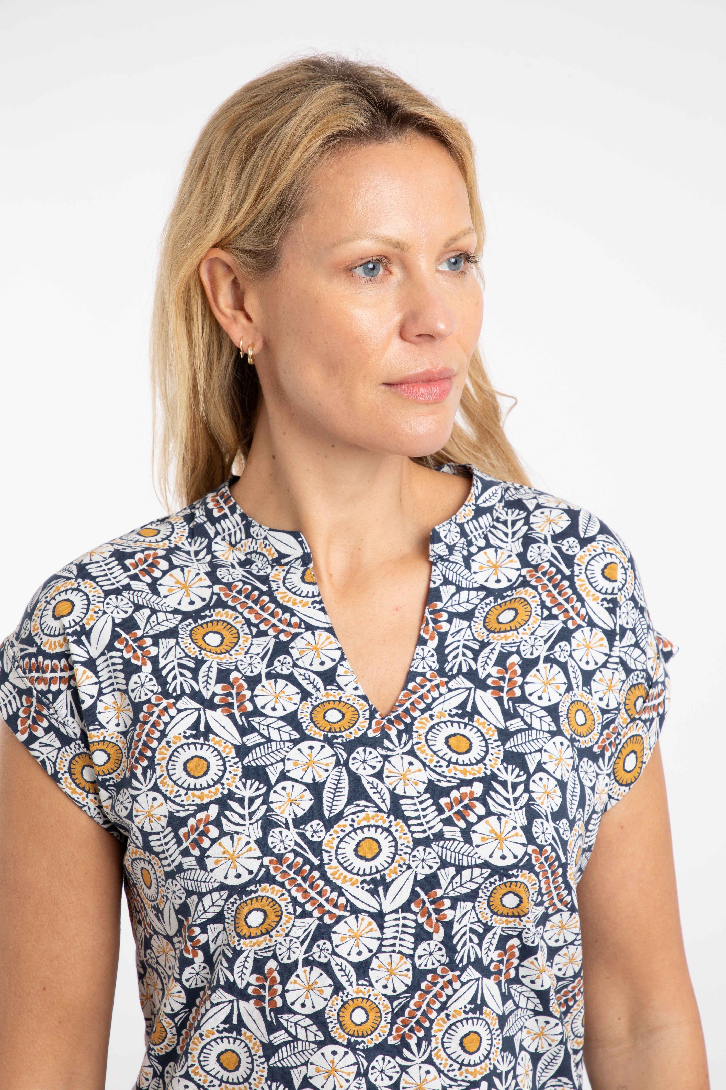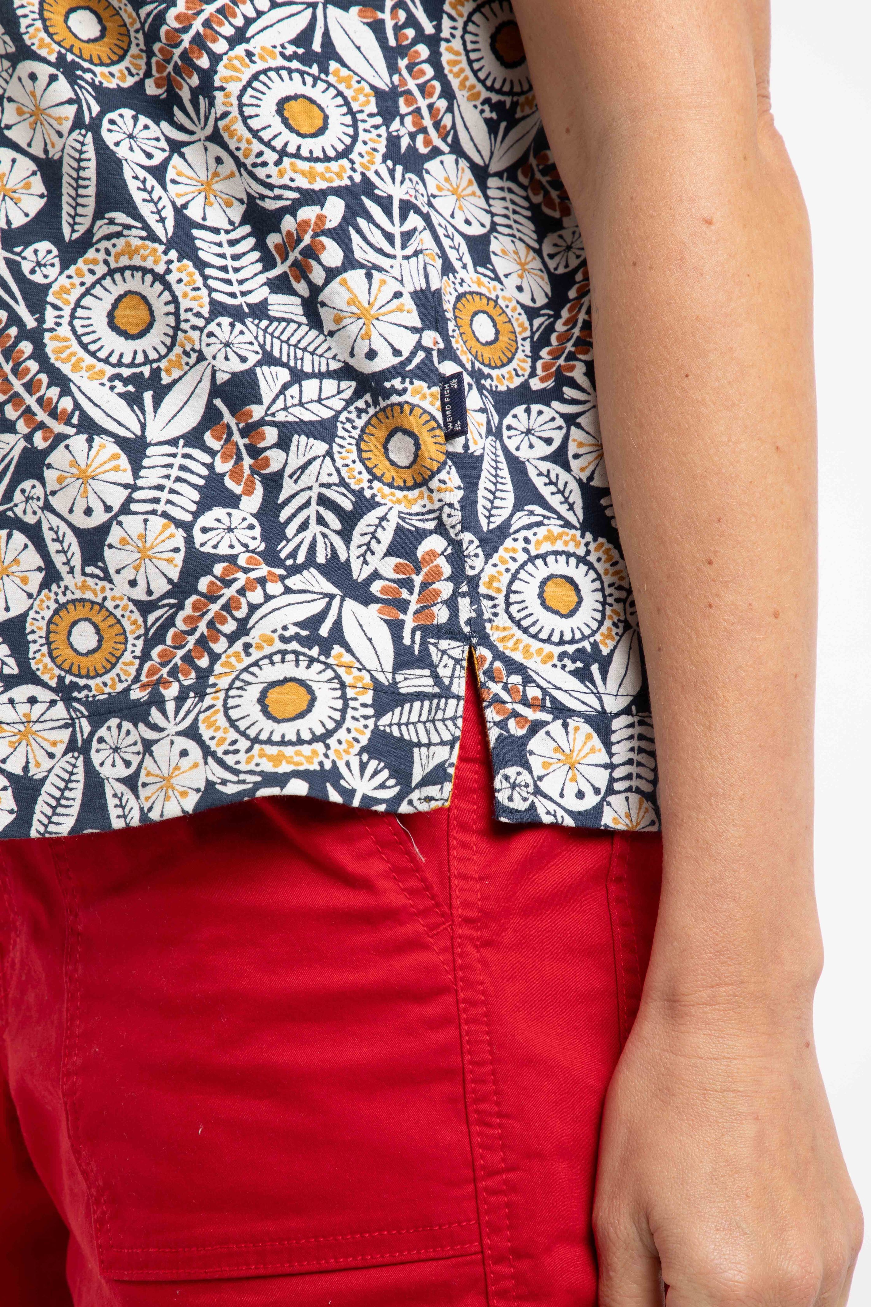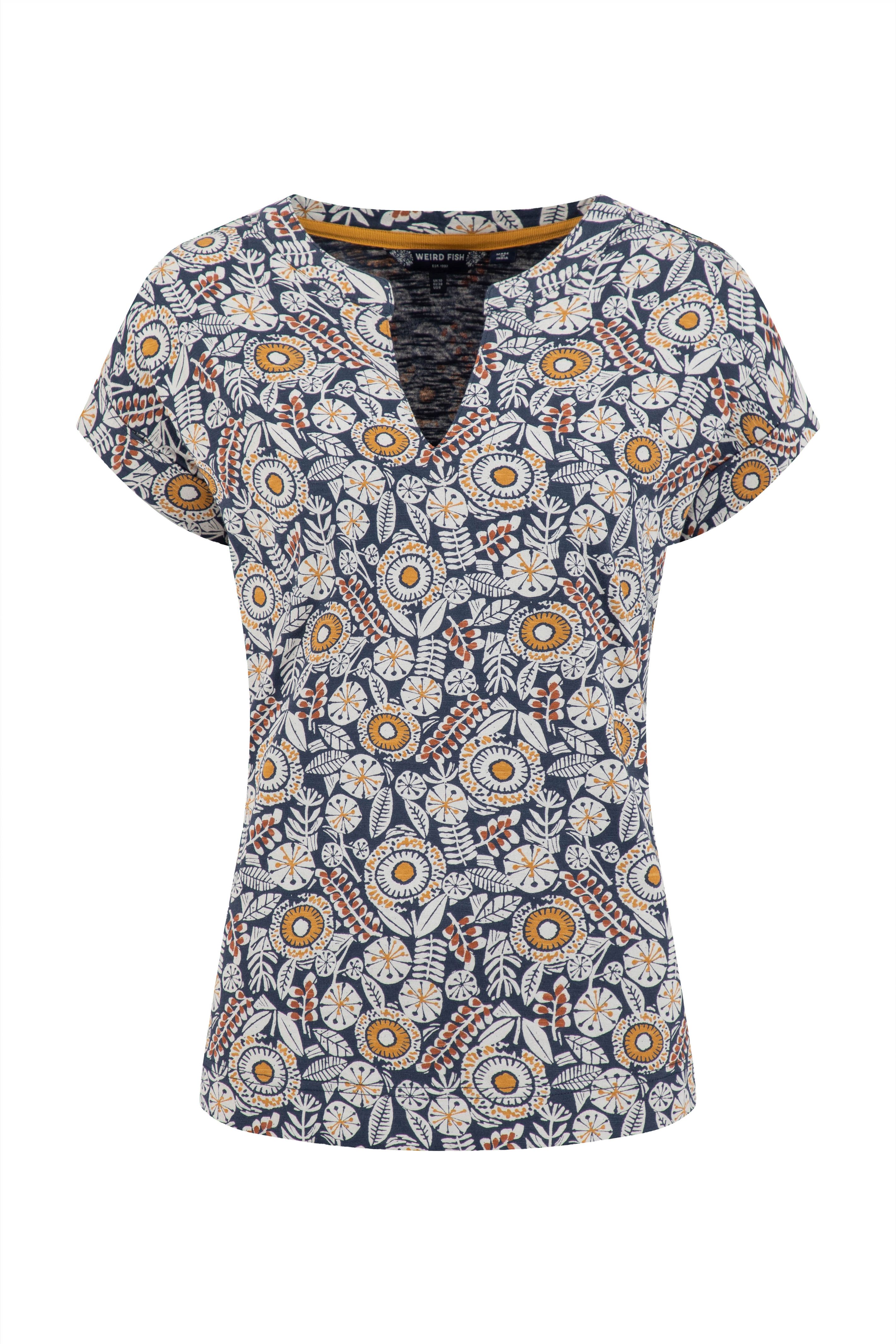 A T-Shirt with a difference, the Alia Printed Jersey T-Shirt has a trophy-shaped neckline and fixed, rolled sleeves. Available in a range of unique Weird Fish prints, you will be sure to find your favourite this season.