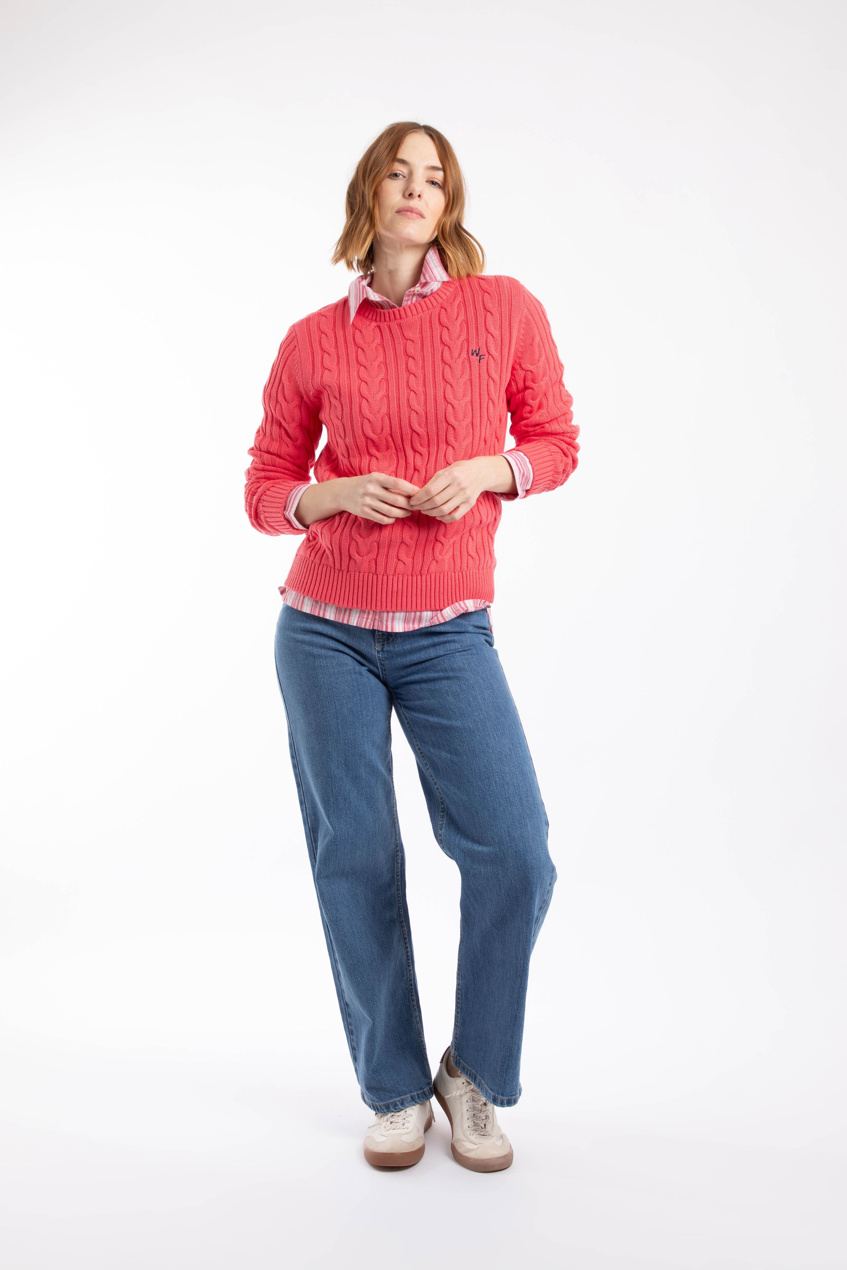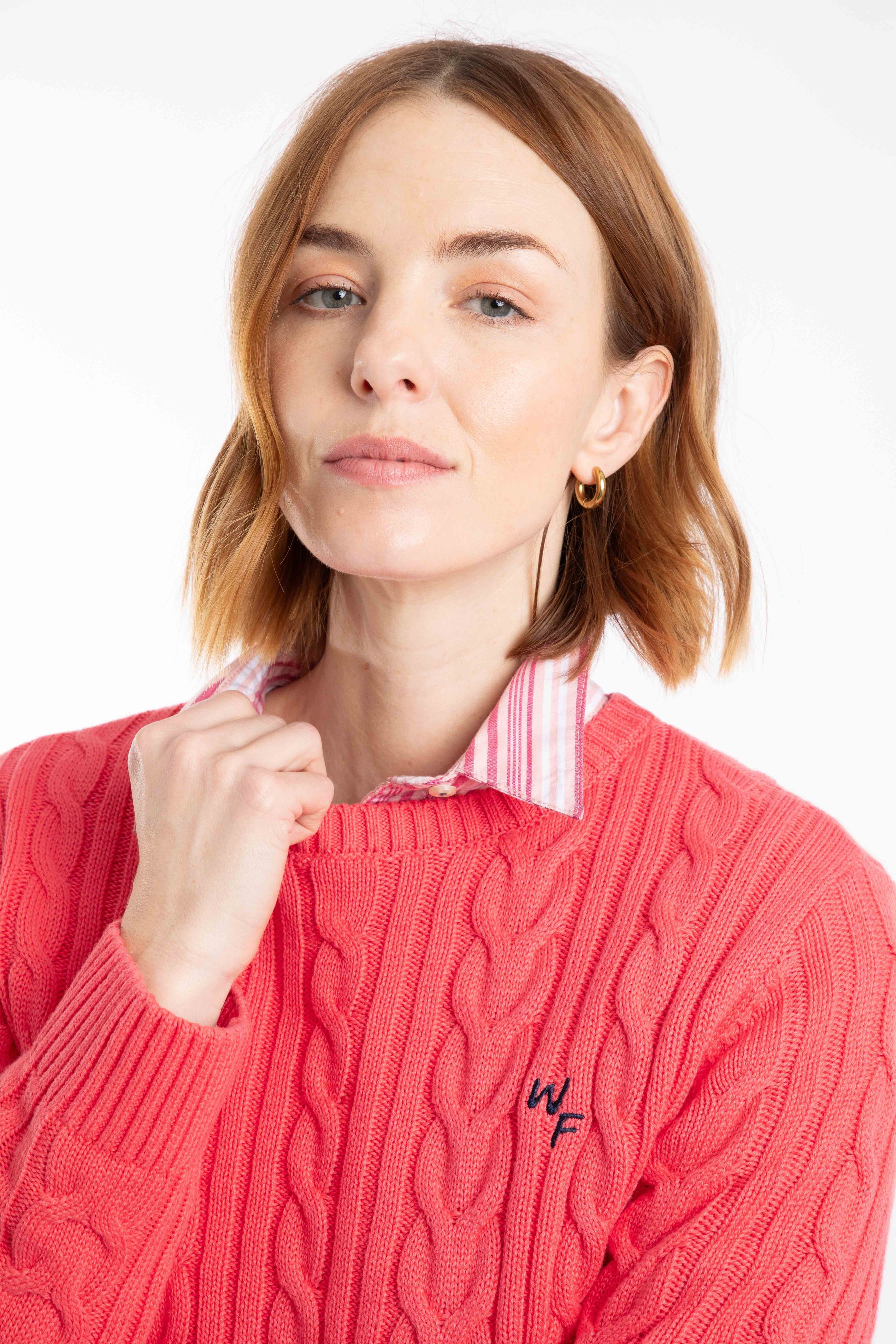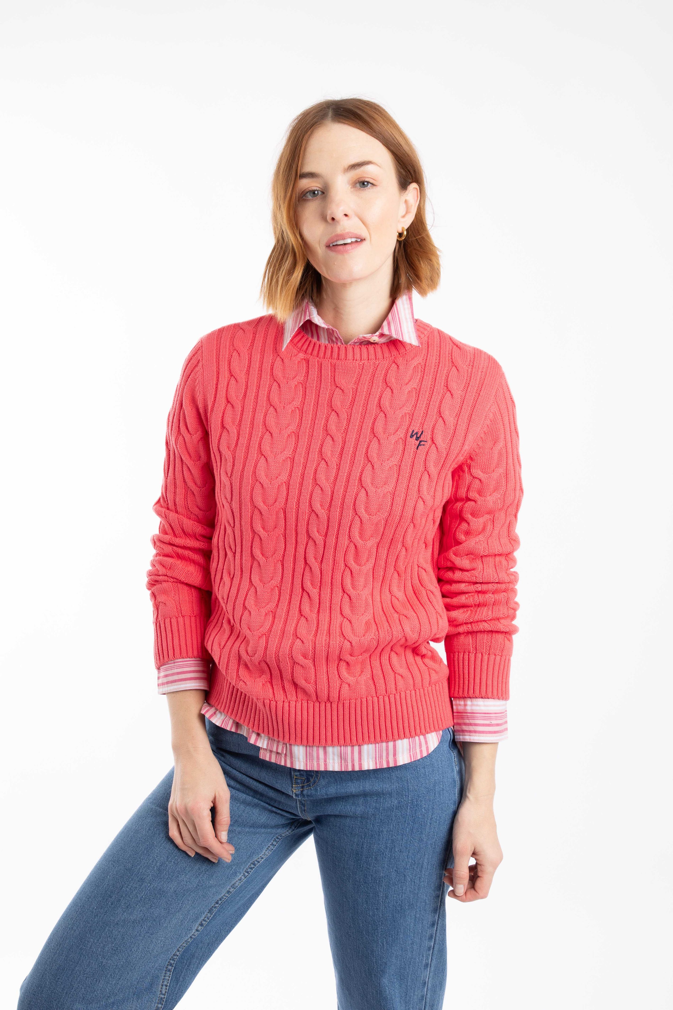 Amberise Crew Neck Cable Knit Jumper Flamingo