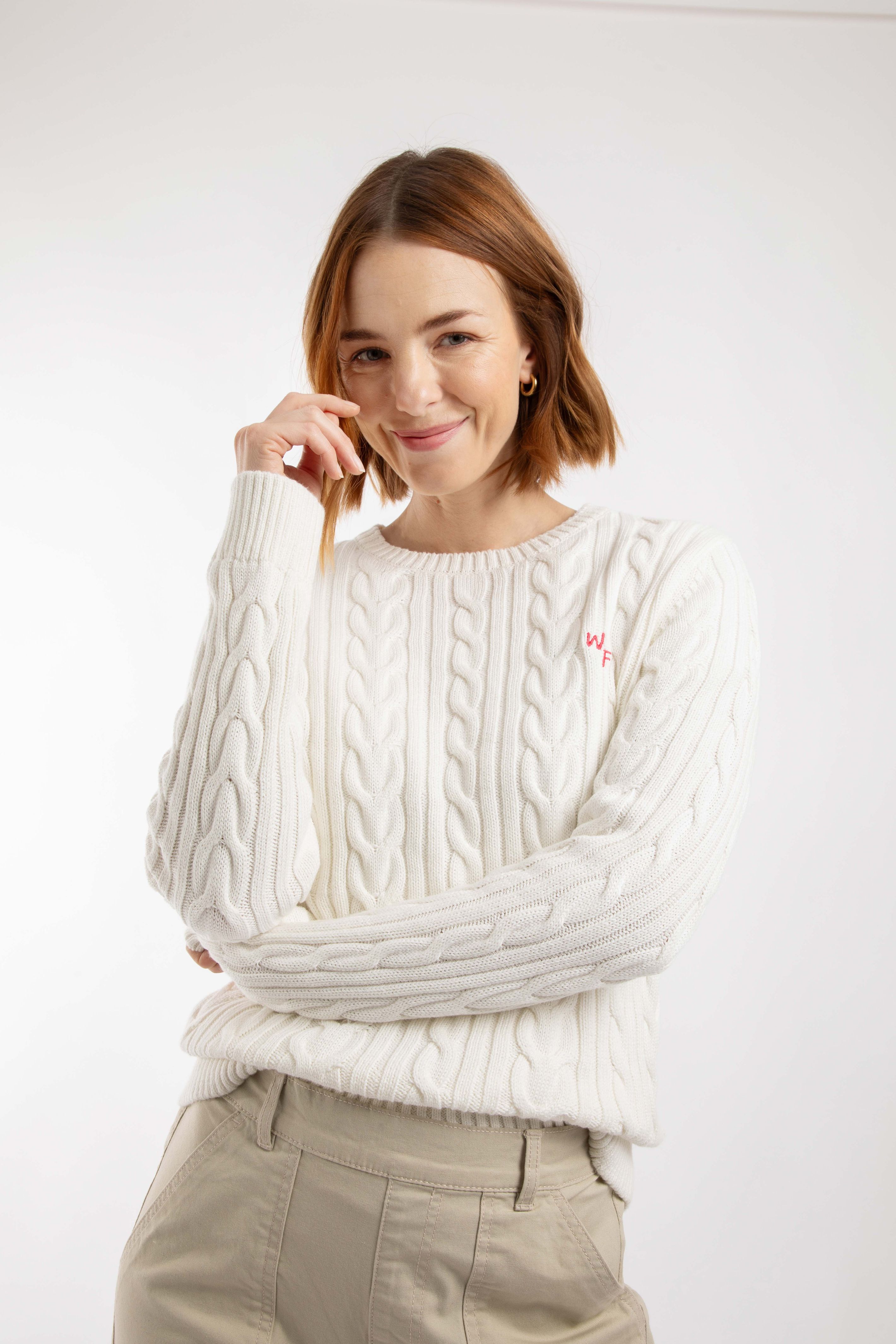 Amberise Crew Neck Cable Knit Jumper Light Cream
