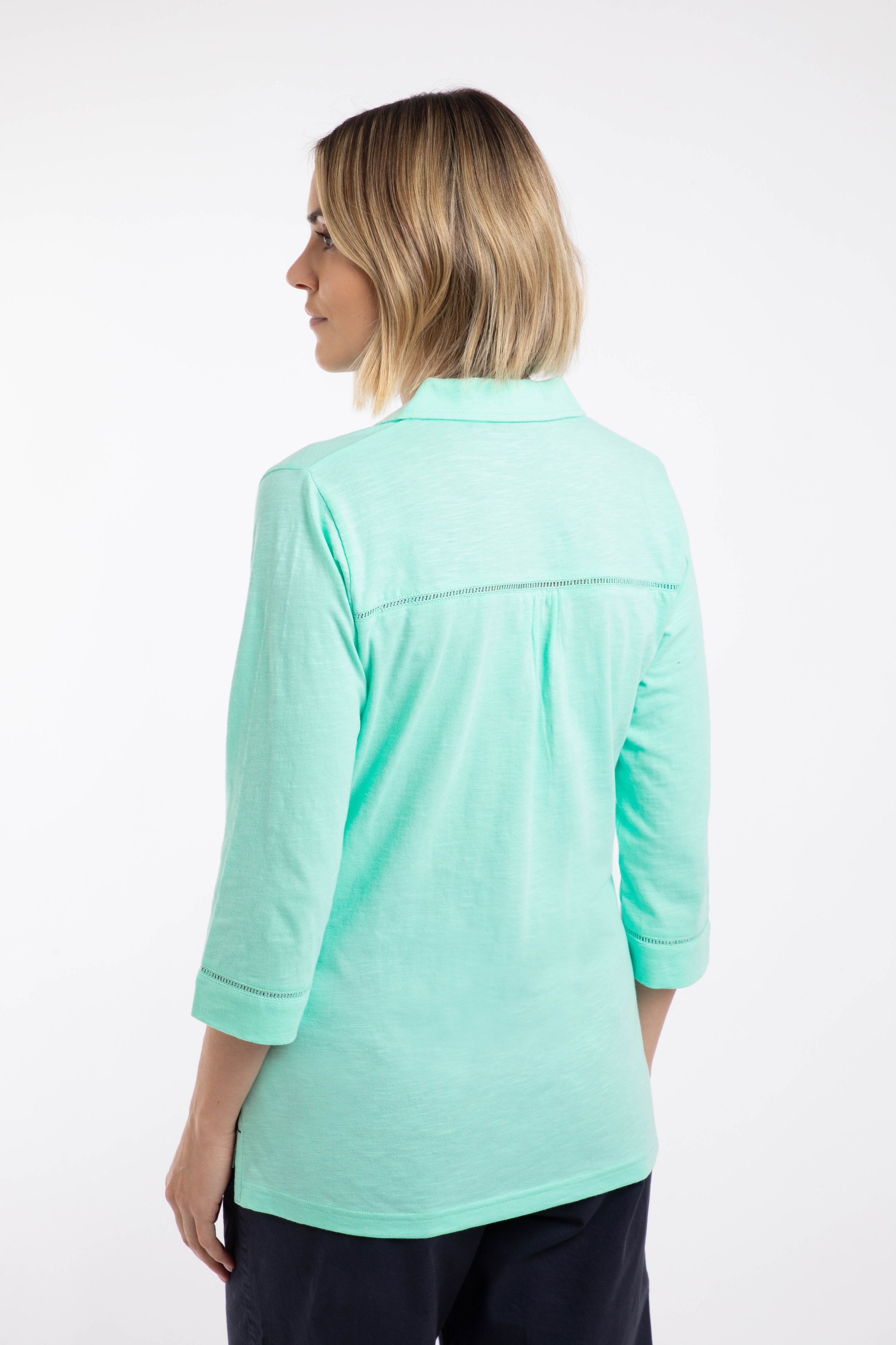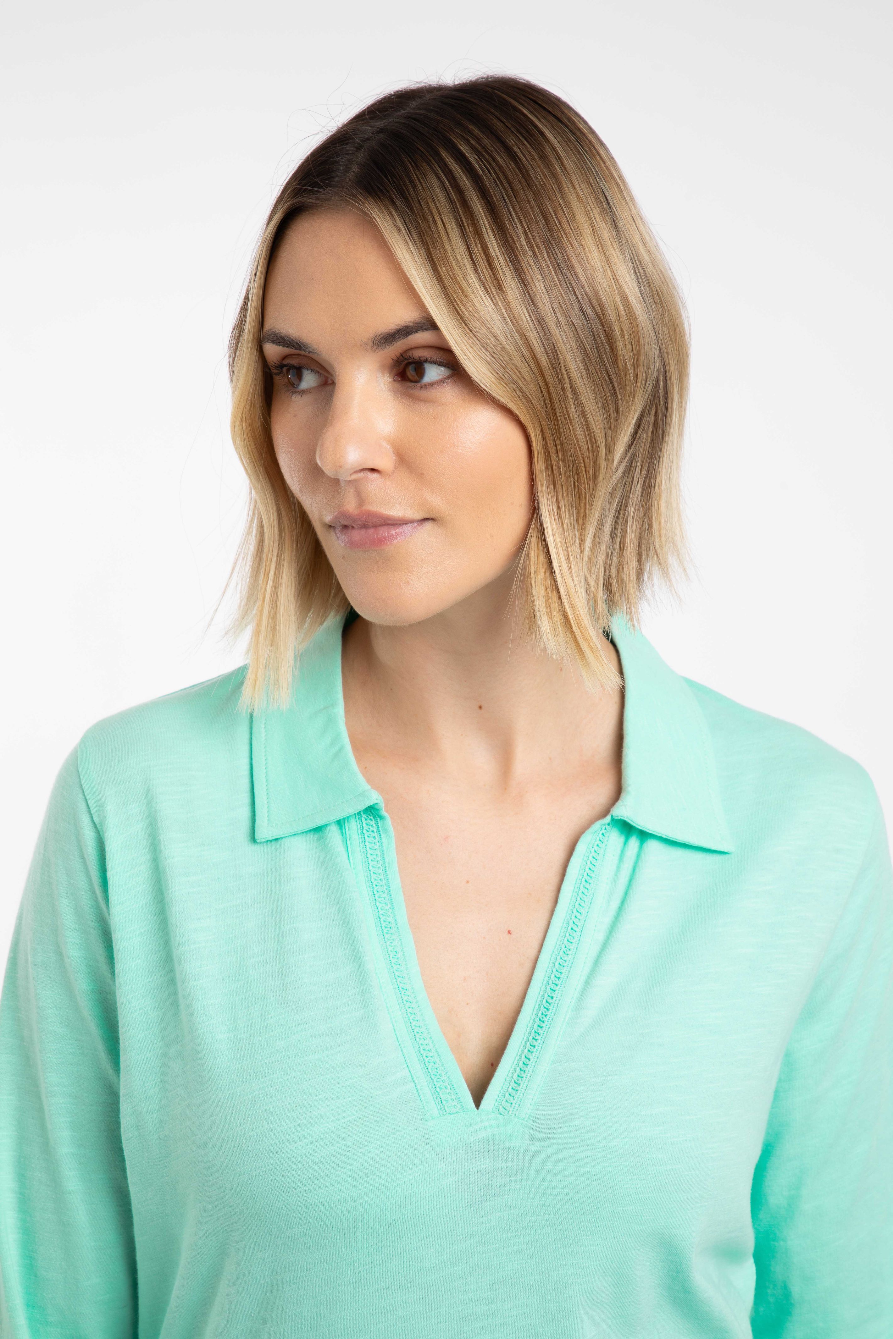 Annare 3/4 Sleeve Jersey Trophy Neck Top Apple Mint