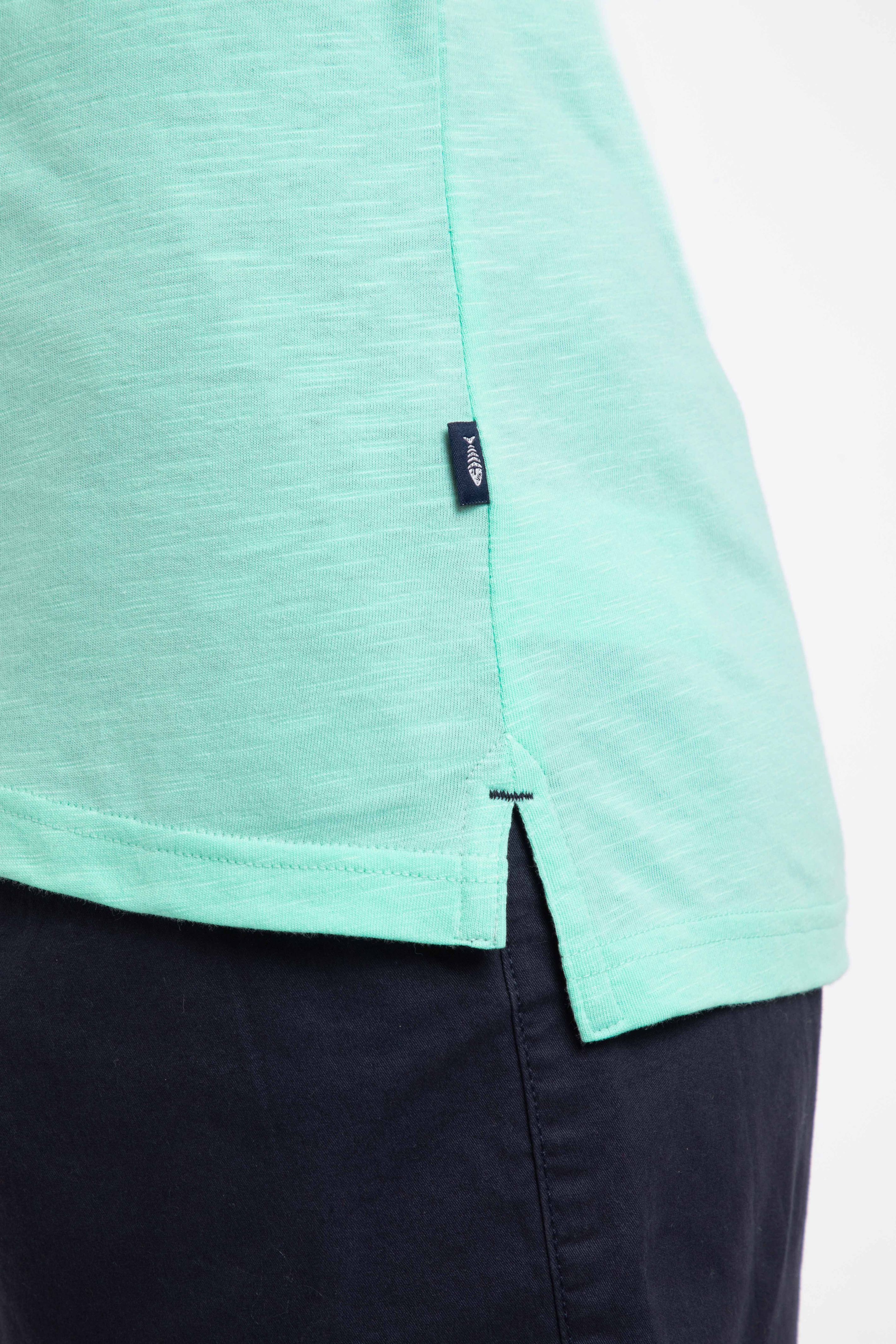 The Annare 3/4 Sleeve Jersey Trophy Neck Top is a soft and comfortable T-Shirt, with the unusual neckline, elevating this to be more than your average style, with a slub texture and a slight drop-tail back.