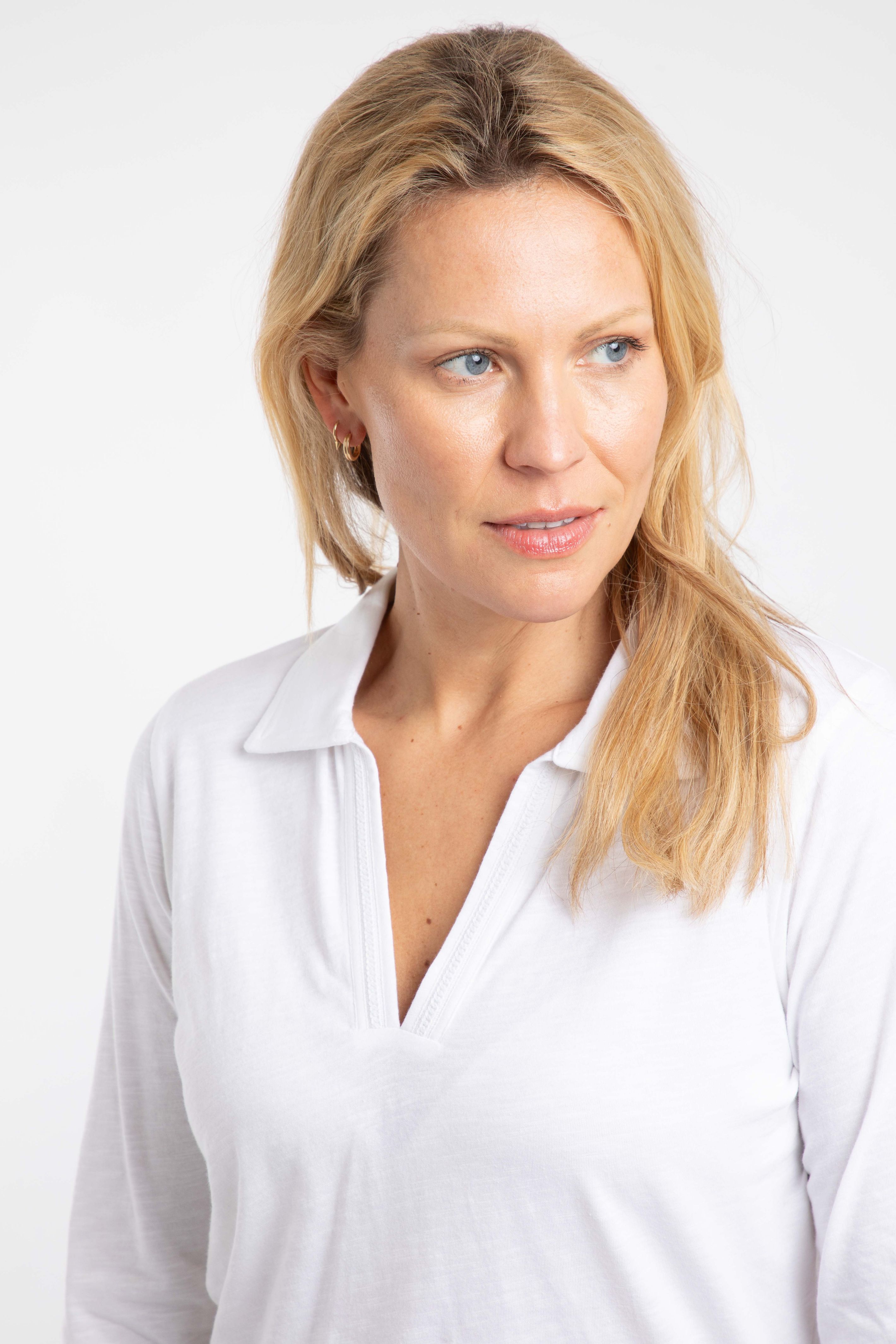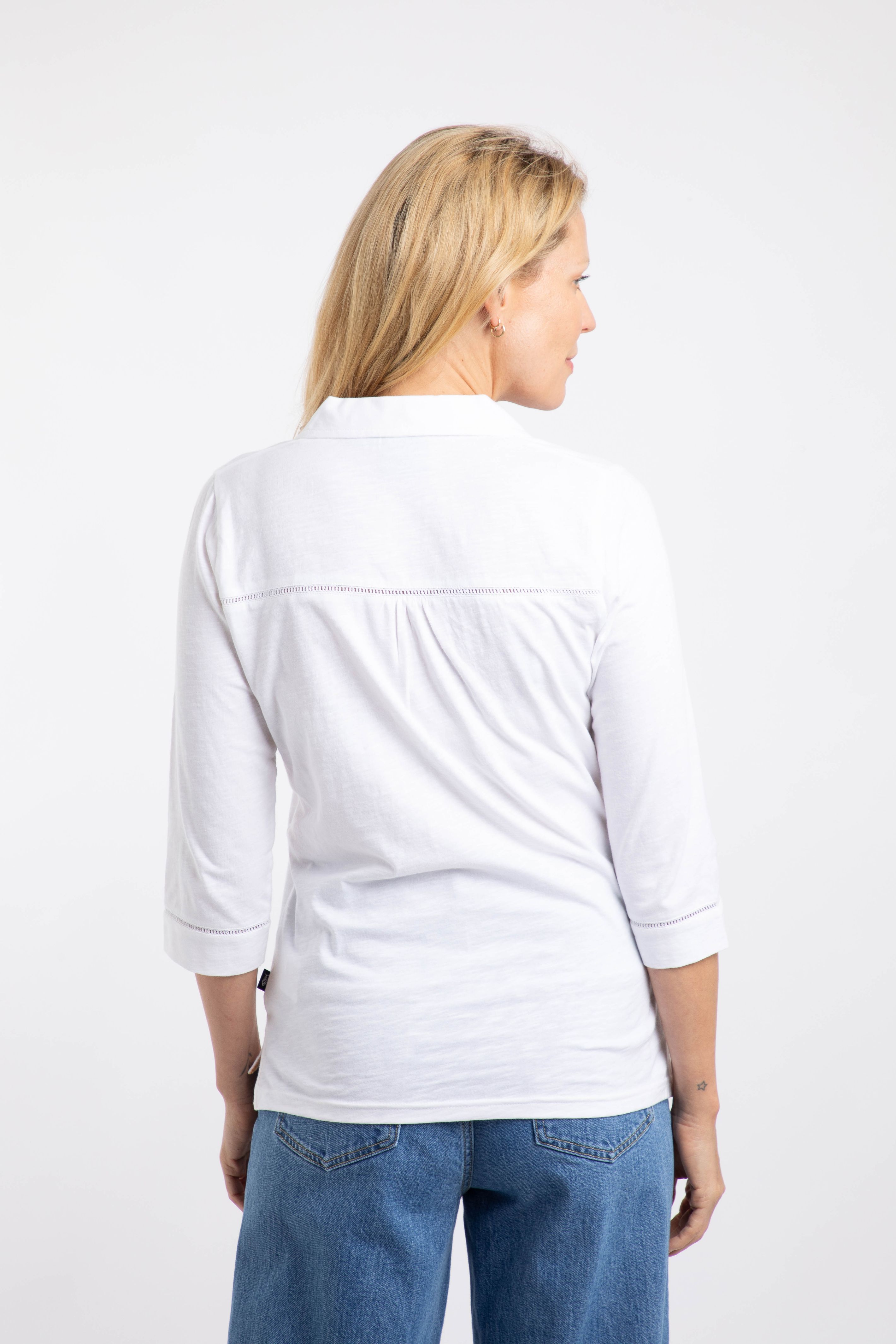 Annare 3/4 Sleeve Jersey Trophy Neck Top White
