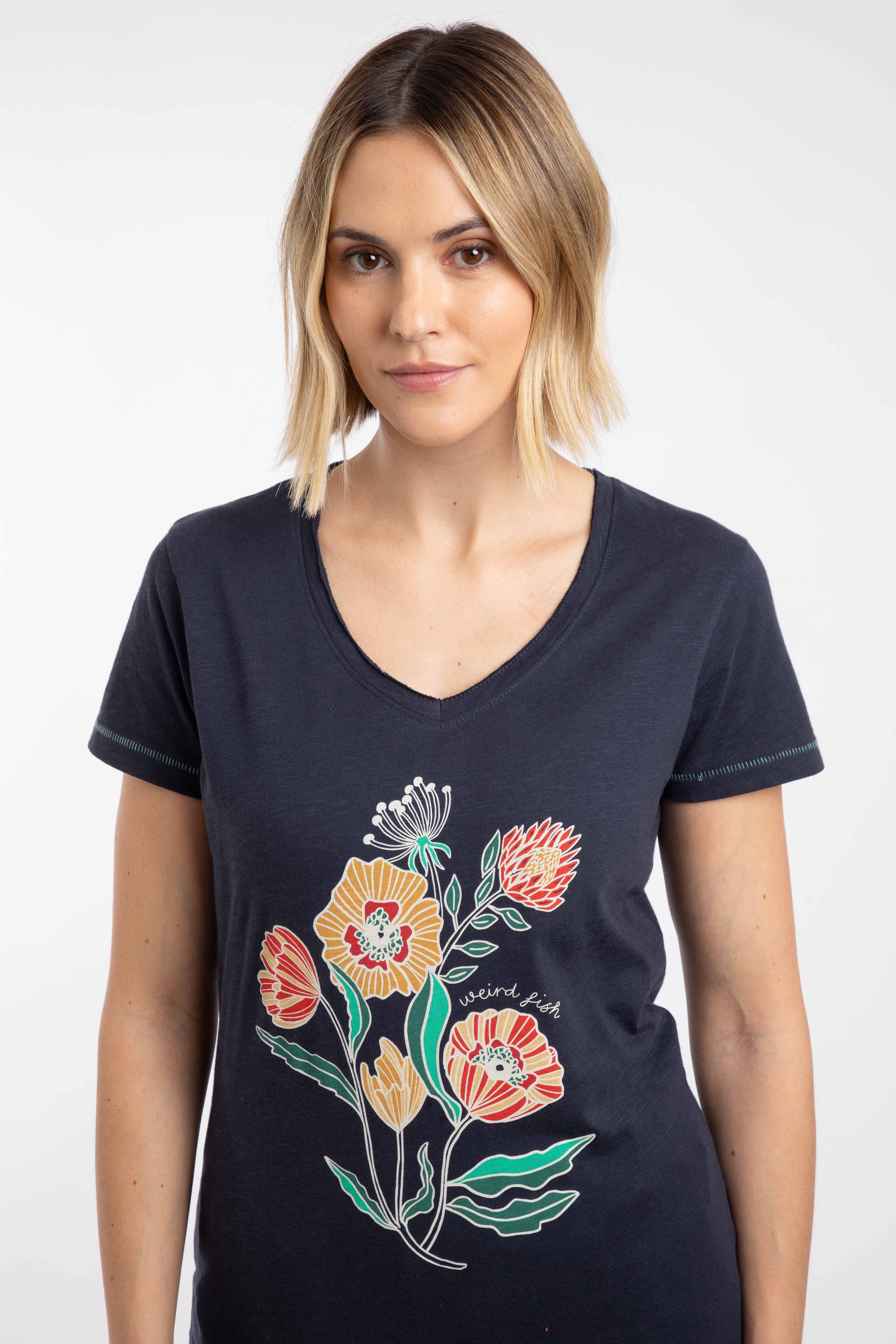 For the lovers of all things floral, the Botanic Front Print Graphic T-Shirt features a beautiful screen-printed flower design. We have gone for a V-neck and added contrast colour stitching details so elevate this from your standard tee.