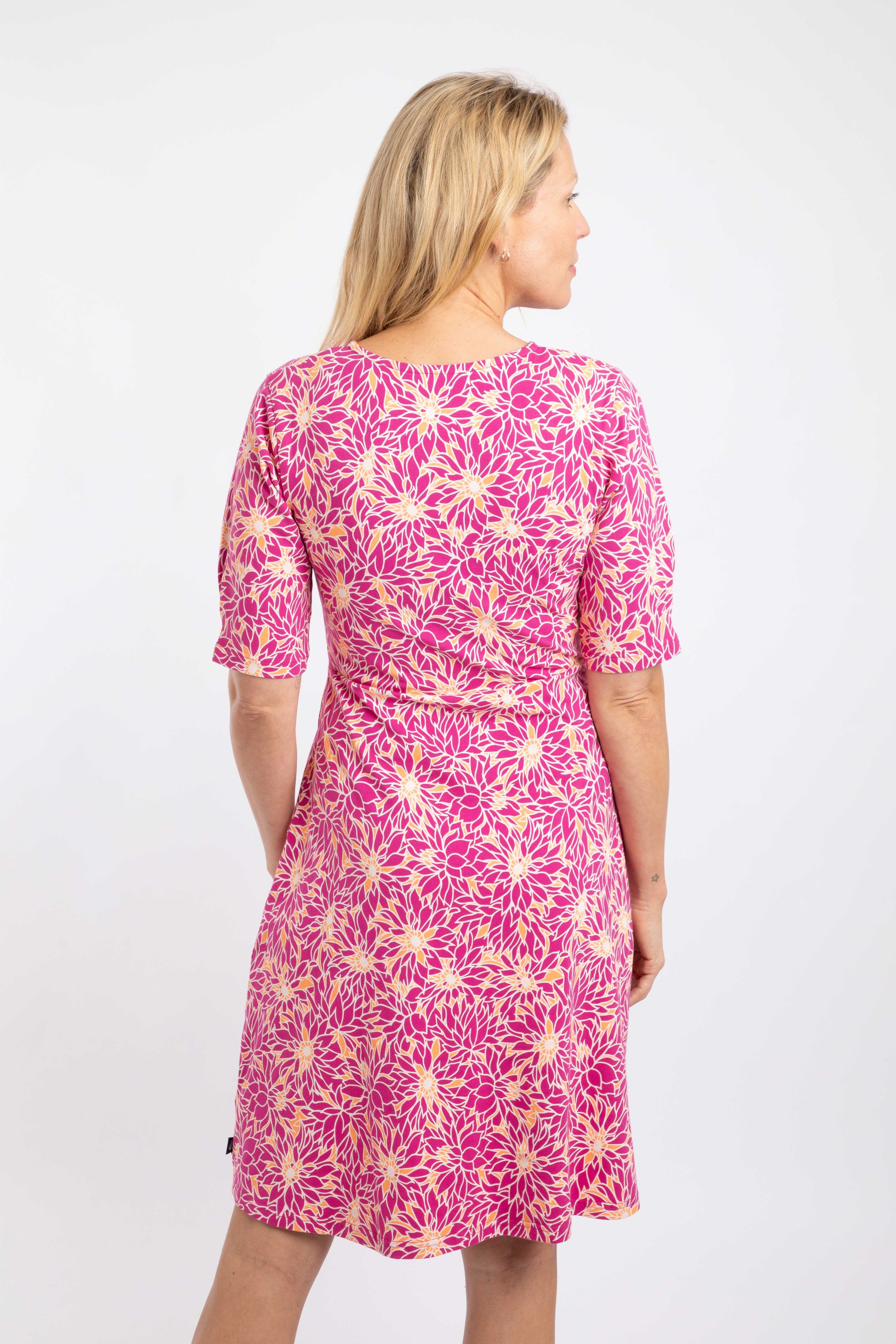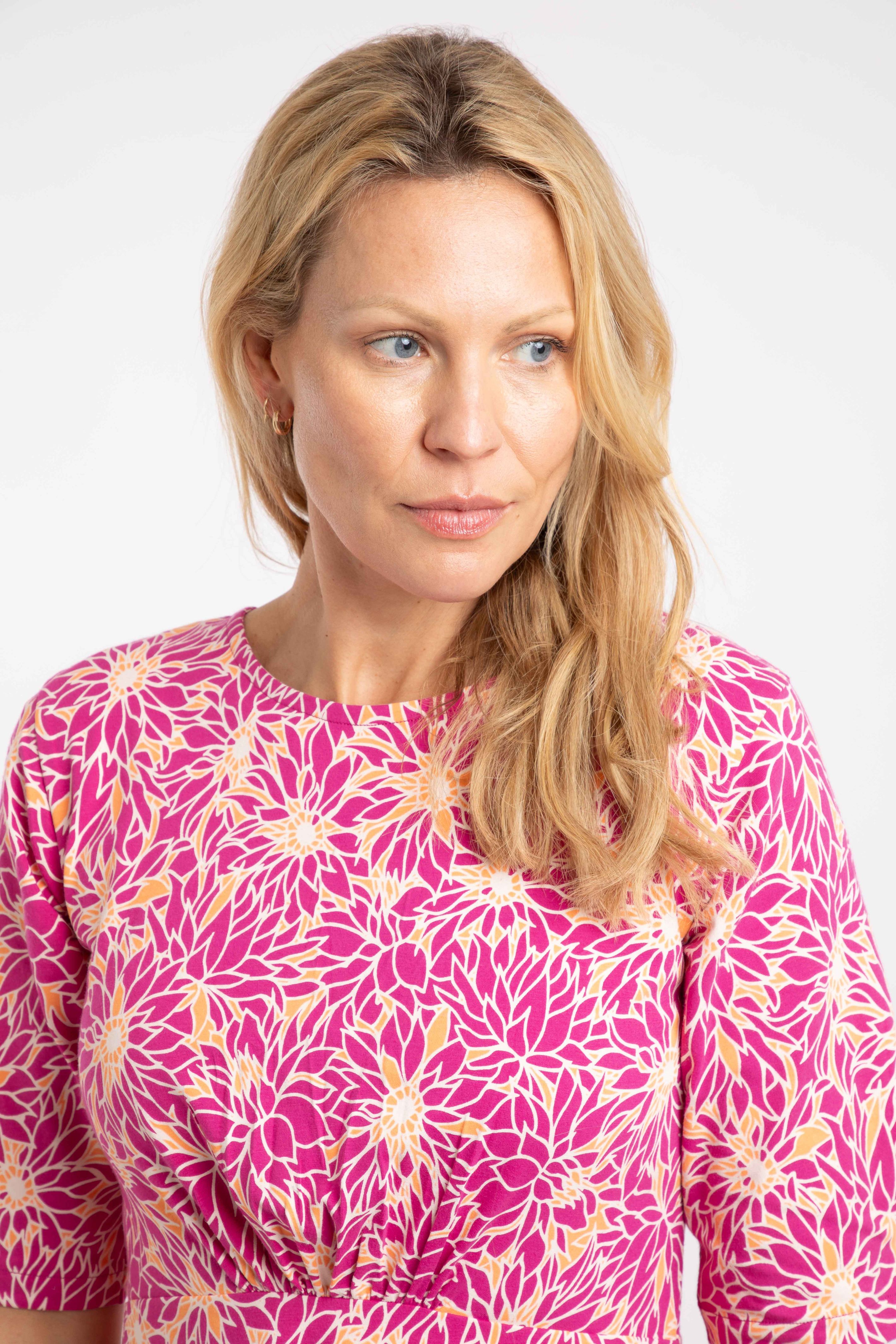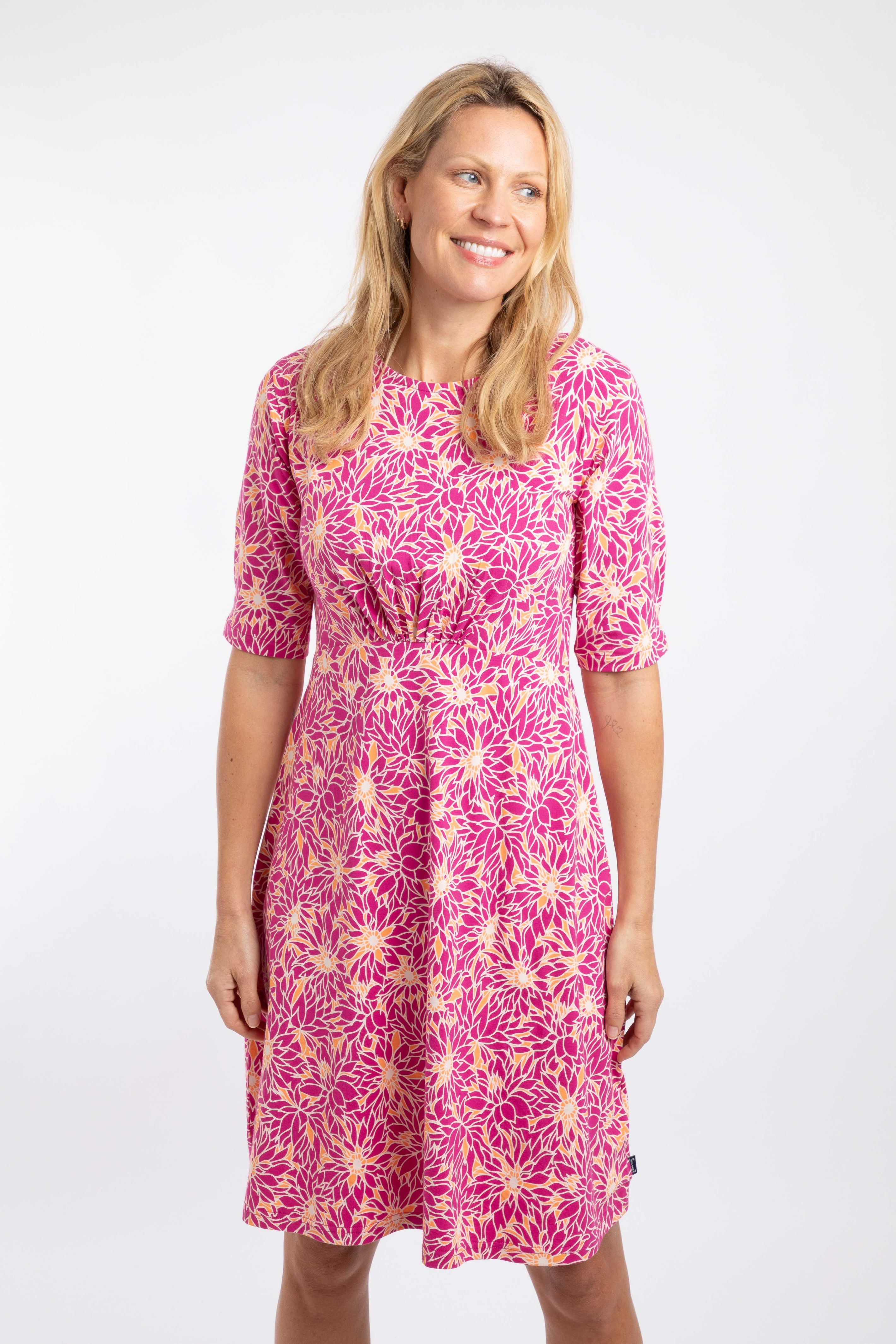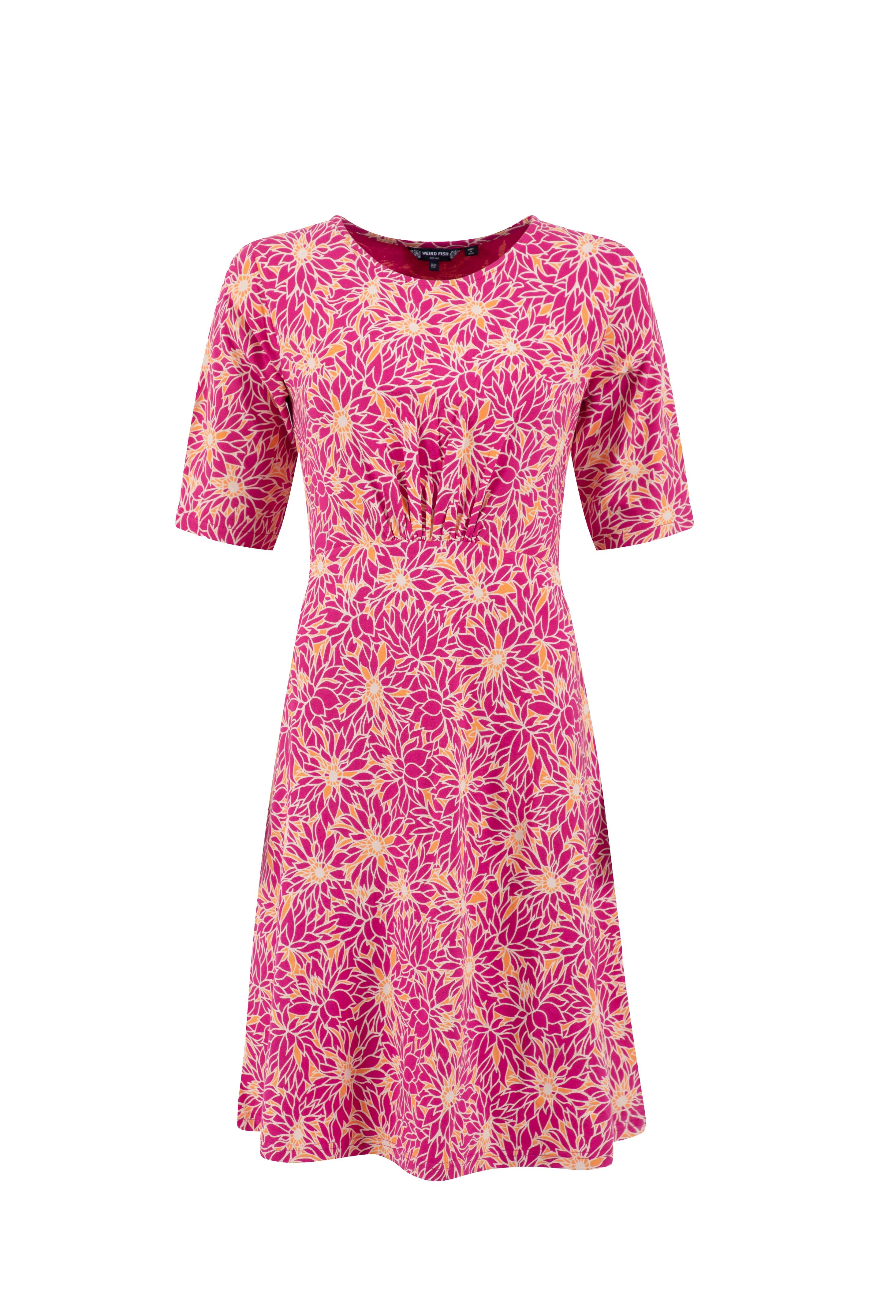 We are known for our easy to wear, no fastening, pull on jersey dresses at Weird Fish, and this season we are welcoming a new shape in the Cassandra jersey swing dress. It has a gathered detail empire line for a really flattering fit, that falls away into an A-line for a fun and flirty swing dress shape. We love the longer 3/4 sleeves, quirky print, and super-soft jersey fabric with a little elastane for add comfort and stretch.
