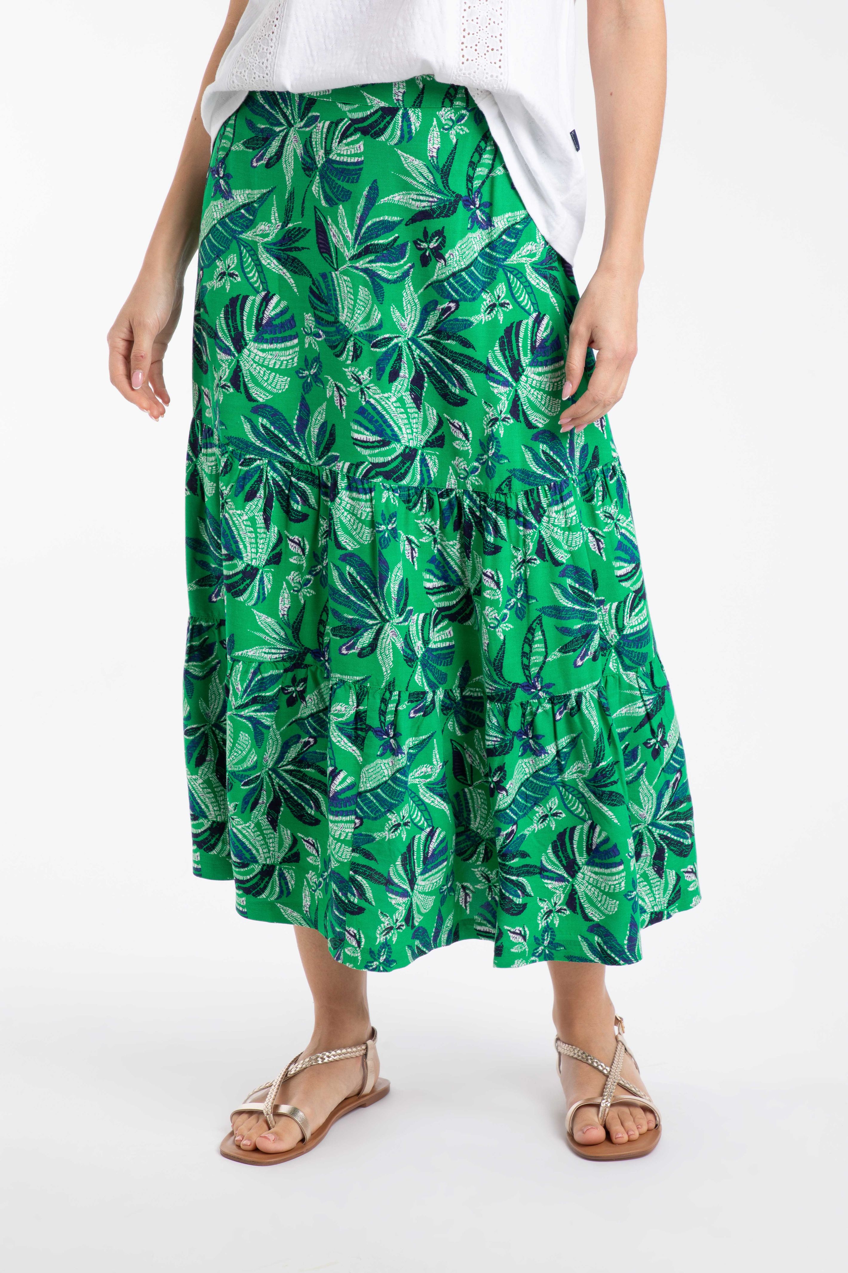 Cassis Printed Tiered Skirt Cactus Green