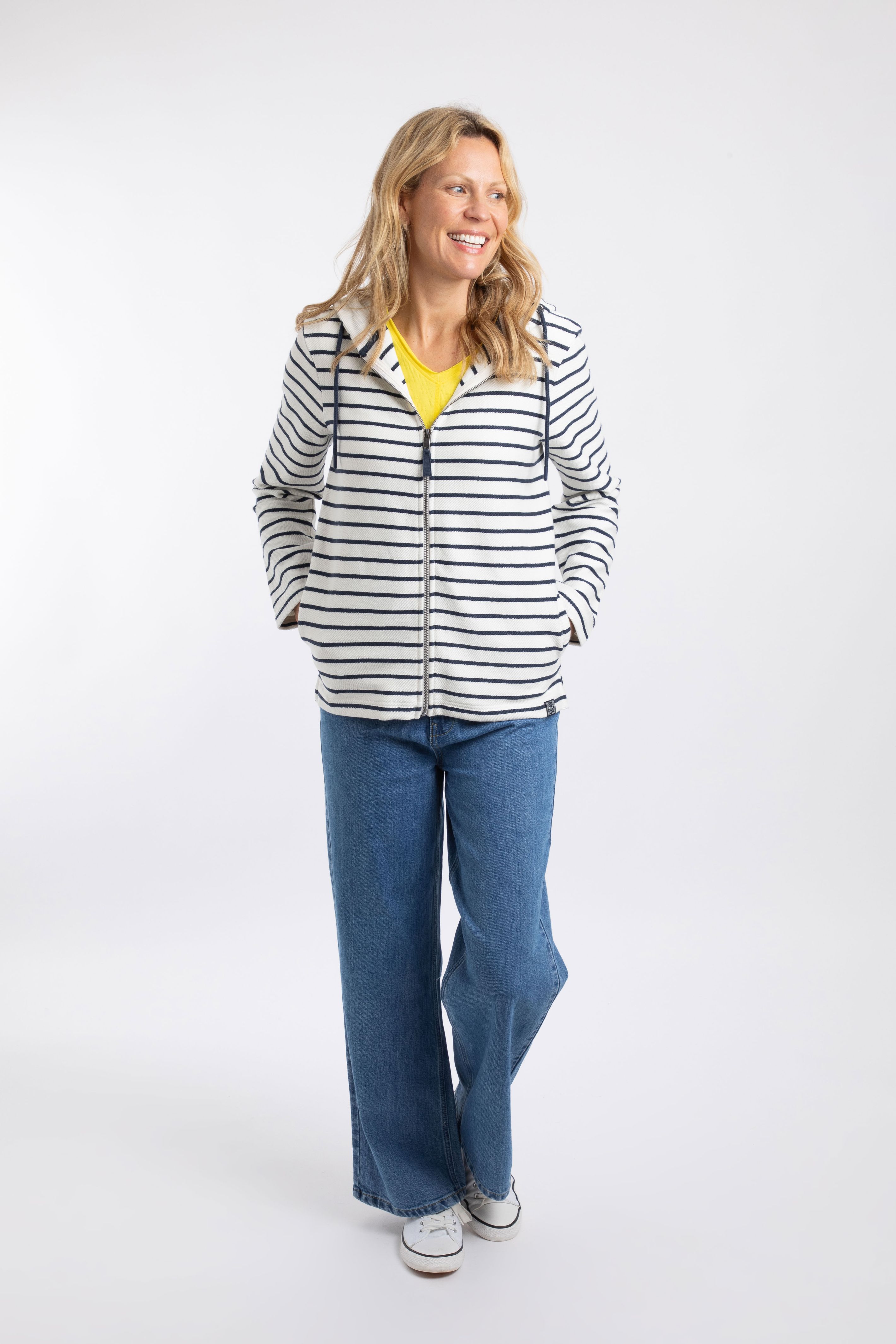 Catalina Striped Full Zip Hoodie Navy