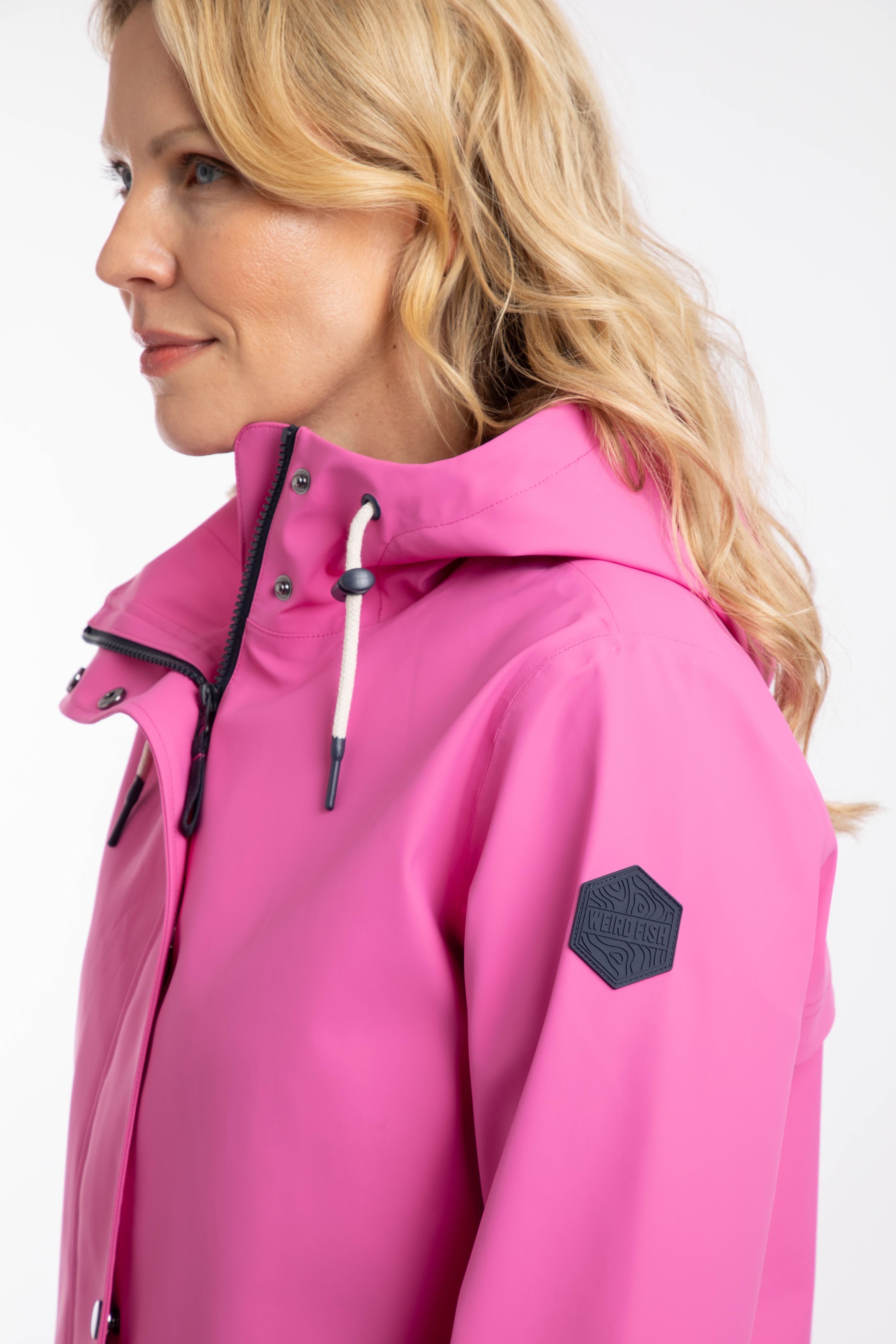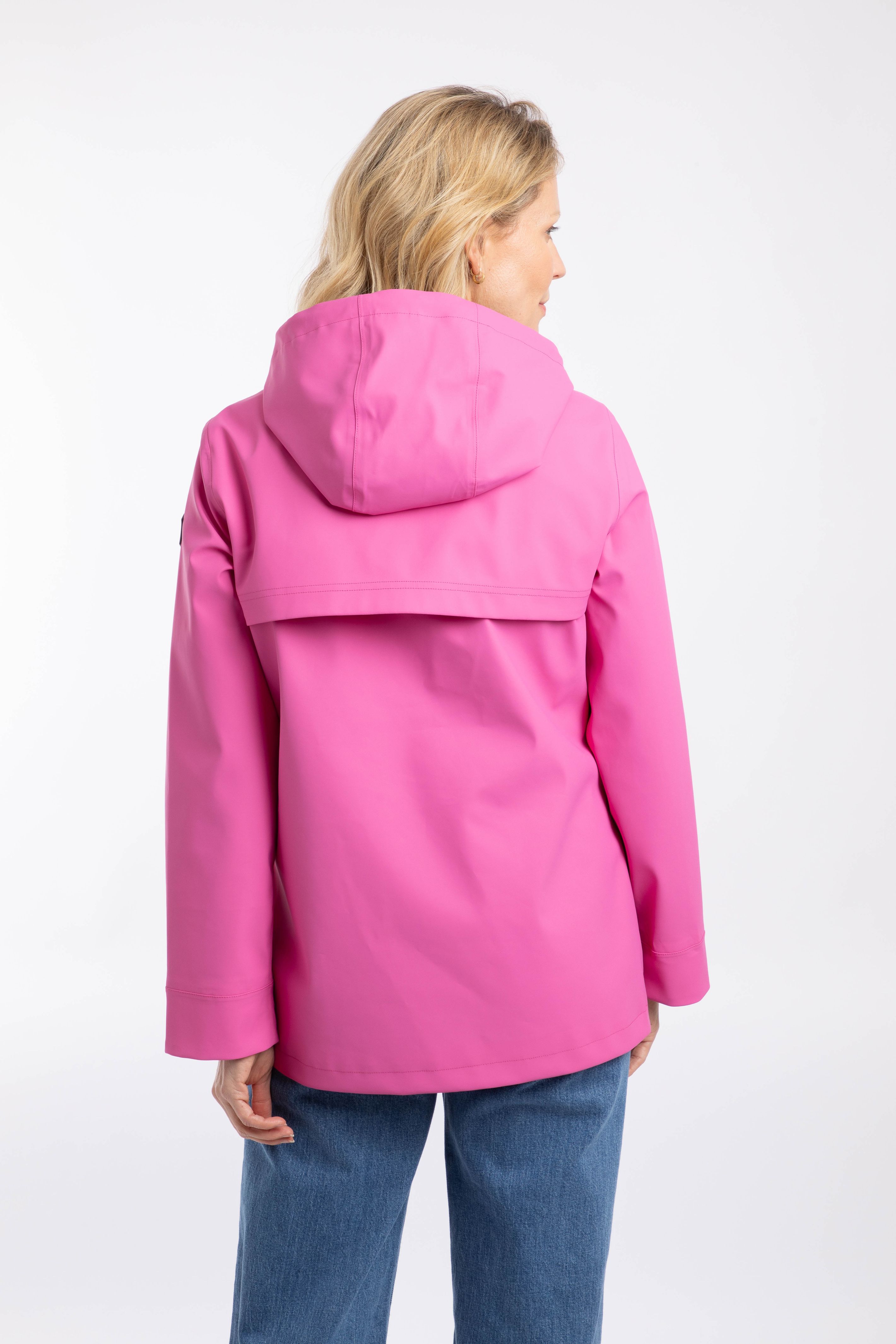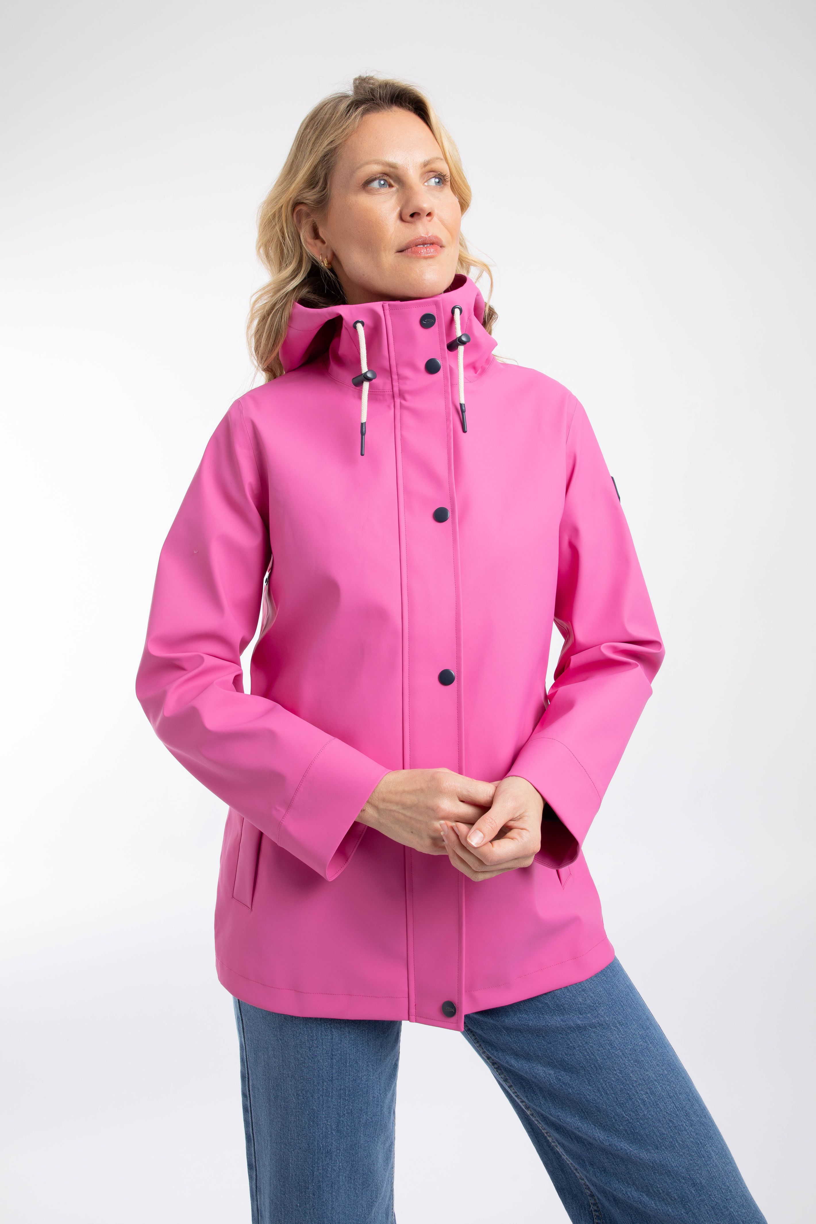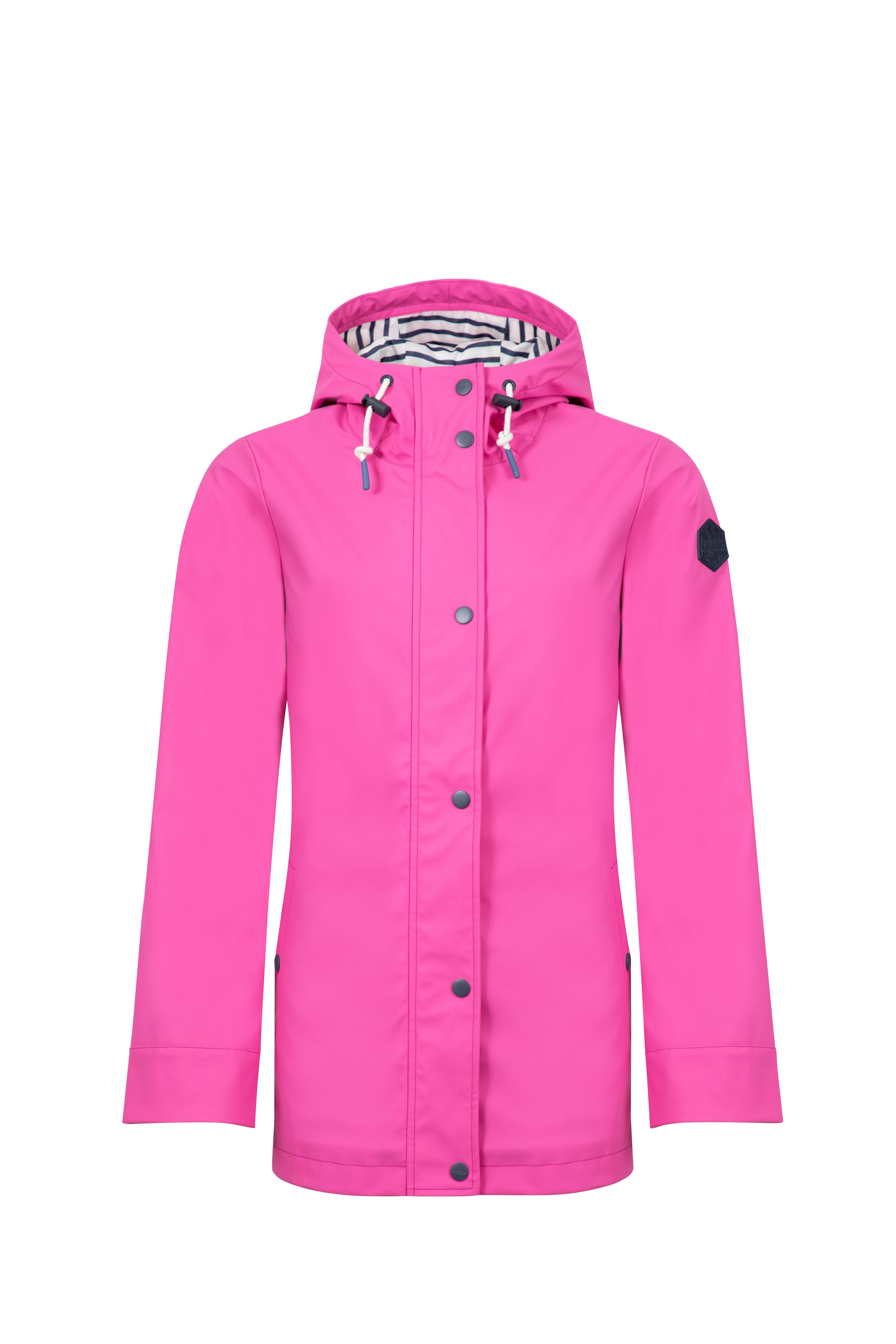 The Faros Waterproof Rain Jacket has an unusual rubber-like feel outer, which helps the rain to roll off and also keeps a great shape. We have added a fun, striped lining and draw cords with toggles to the hood. The popper fastened pockets are angled to help keep the rain out, and we have added a vented back to the shoulders.