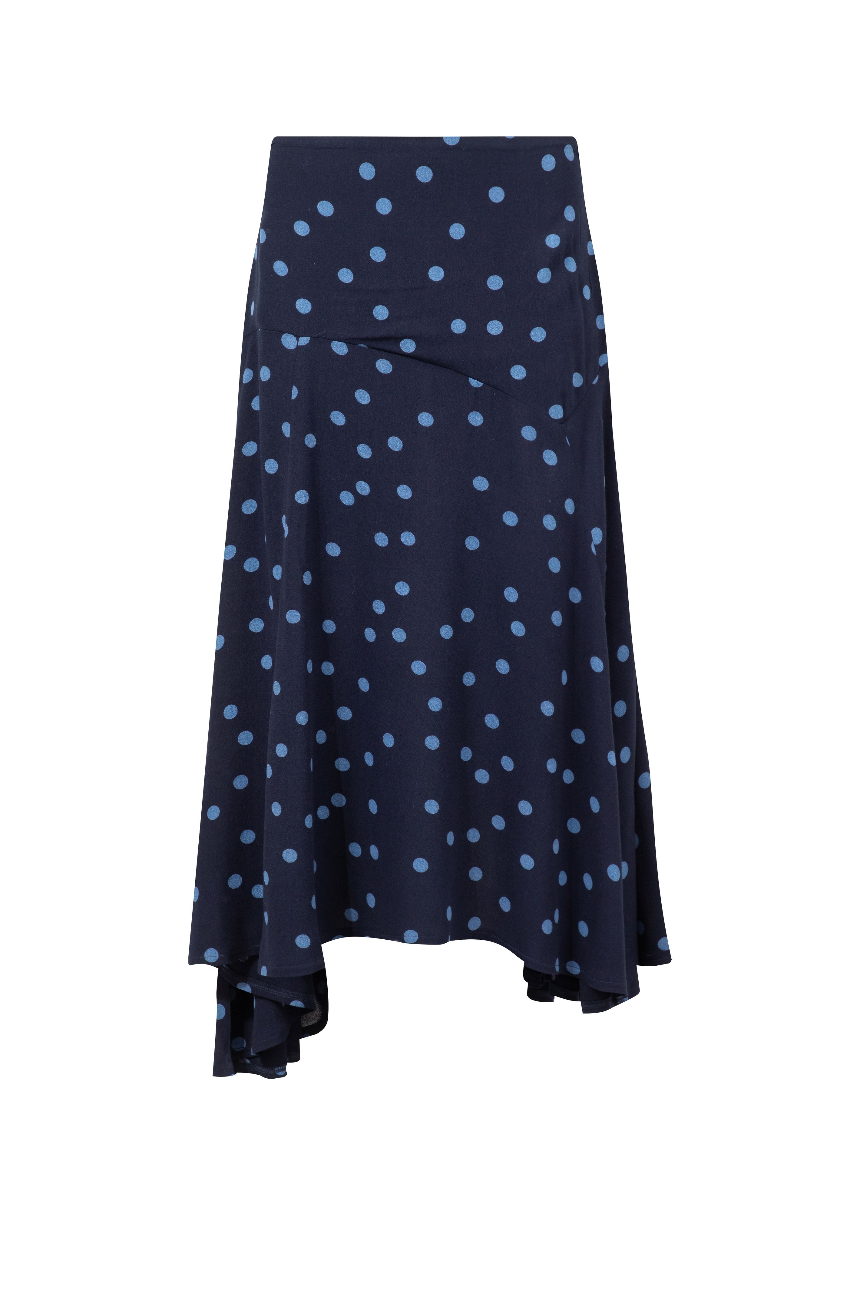 Florino Printed Asymmetric Slit Skirt Navy Blue