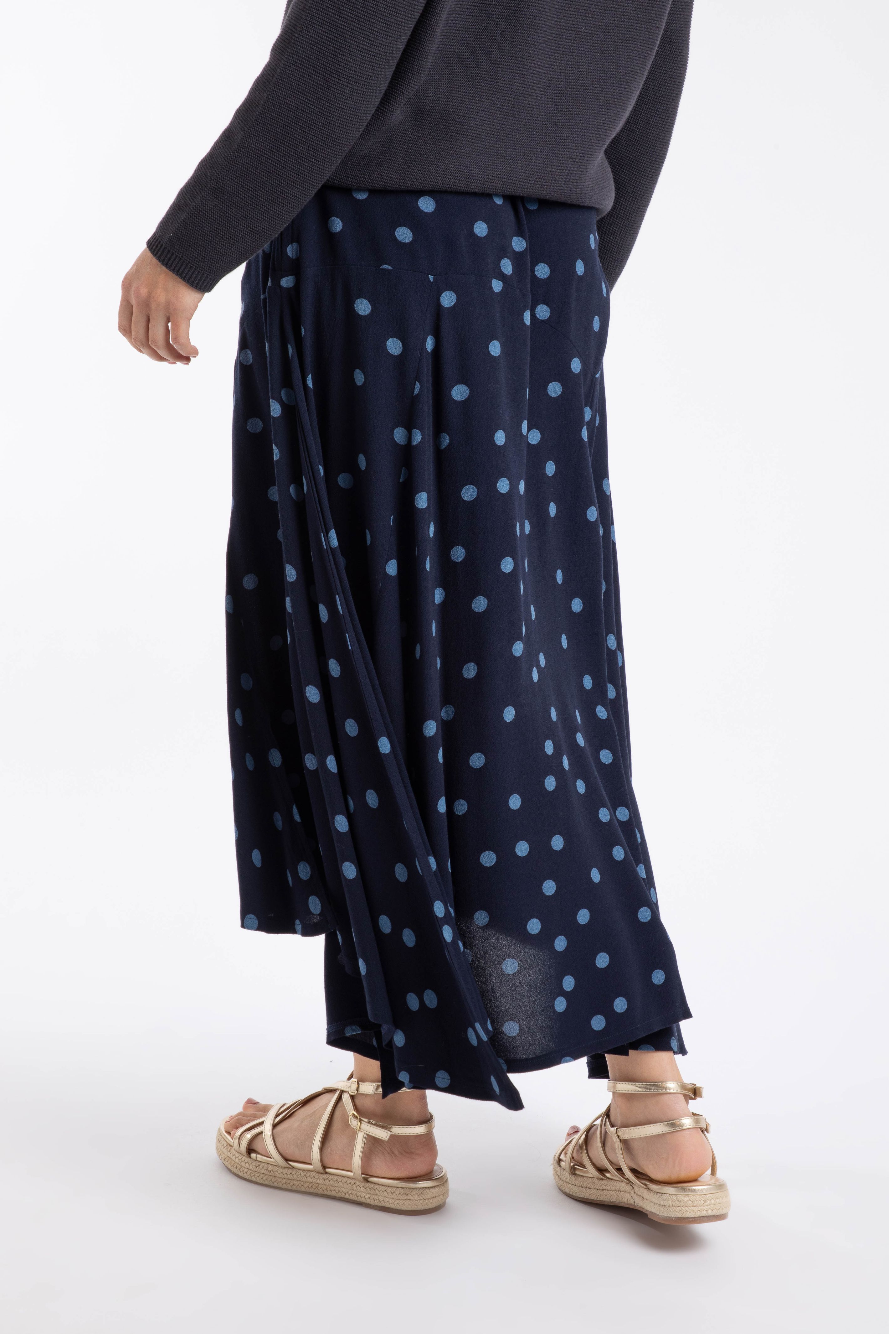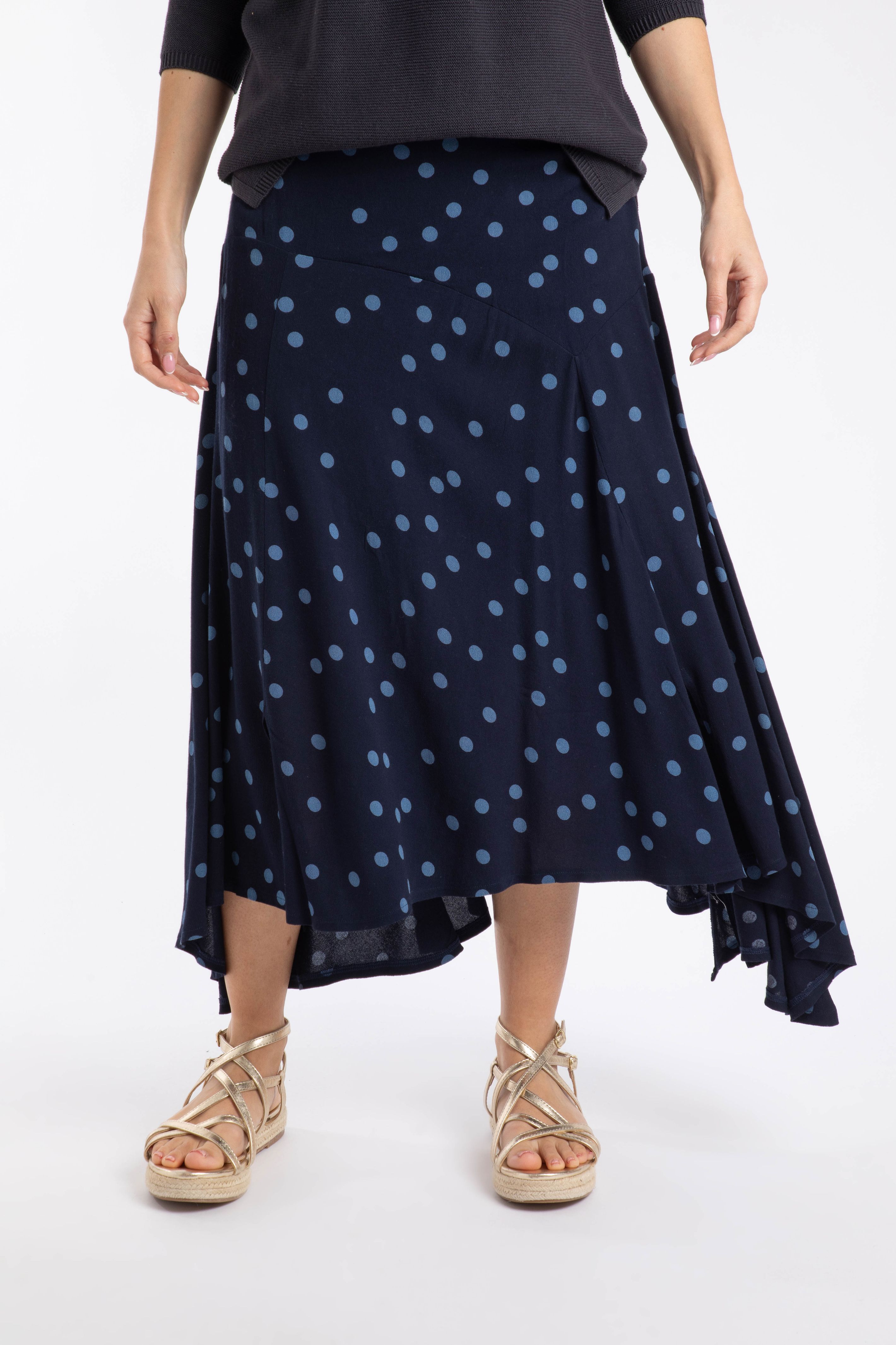 This Florino Printed Asymmetric Slit Skirt is so fun. The different length panels, slits and drape of the material give incredible movement to this midi-length skirt. Easy to dress up or down, you can easily go from long sleeve knit to a vest top depending on the weather.