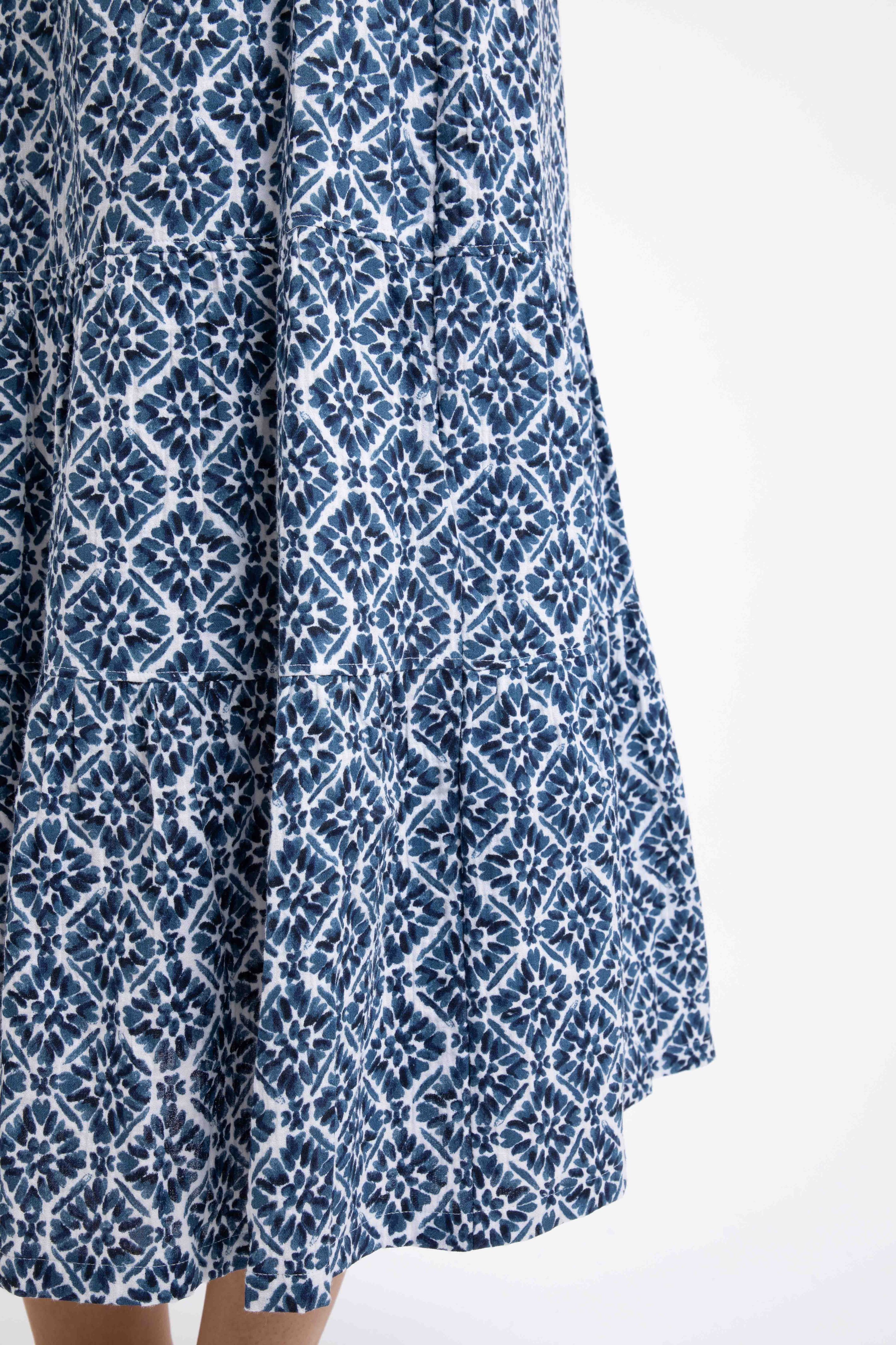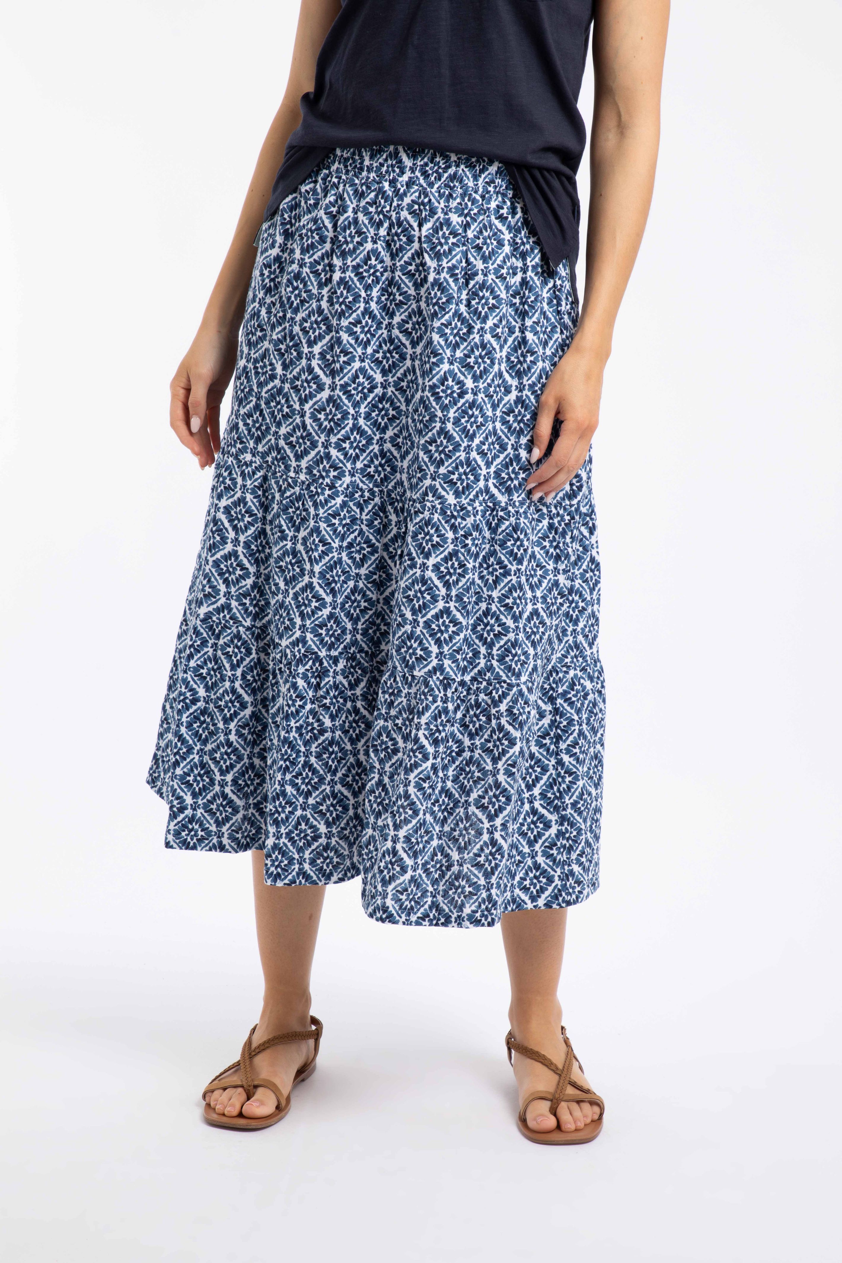 The Harini Double Cloth Printed Midi Skirt is a gorgeous choice for this season. With tiered panels you get great shape and movement with this skirt, made from a crinkle texture muslin style material which feels breathable and comfortable in warm weather. We have also added a cotton lining for extra comfort. Double cloth is made when two muslin type materials are joined together, making a more substantial, but still very lightweight and breathable textile.