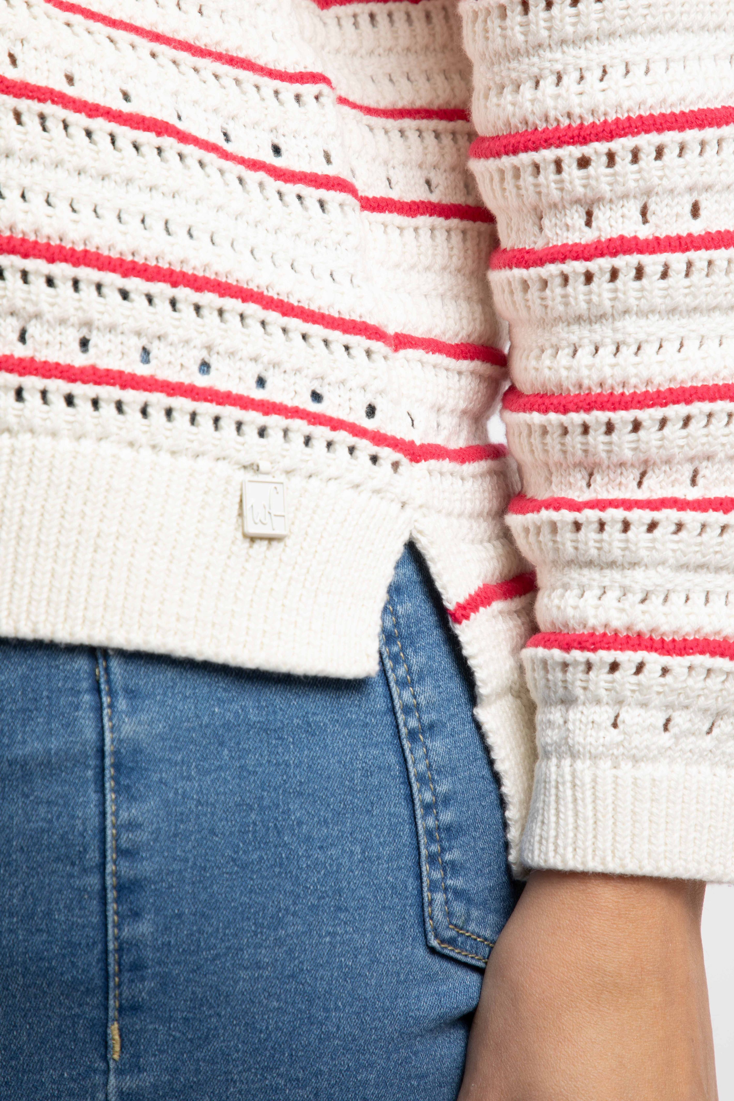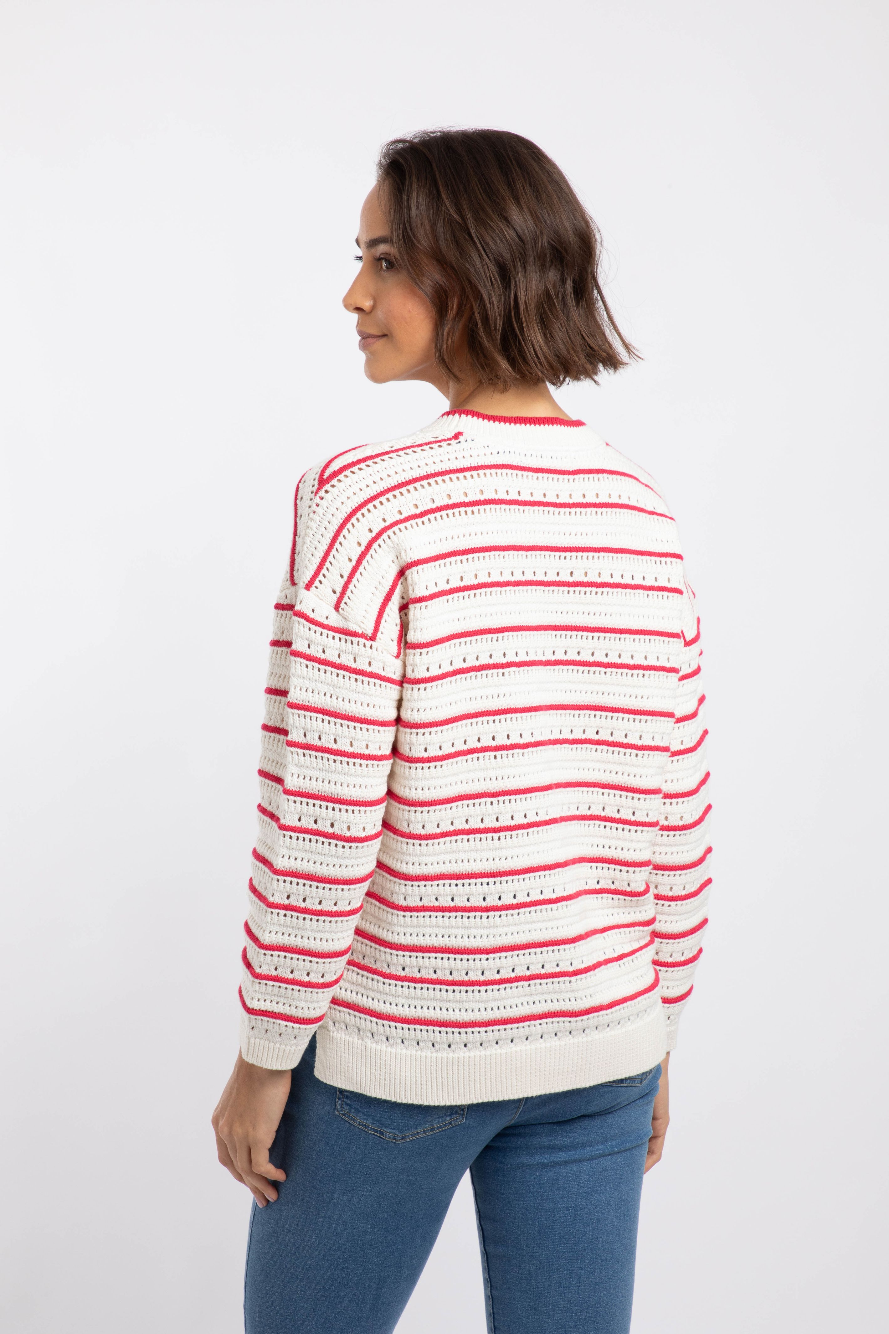 Liah Pointelle Striped Crew Neck Jumper Deep Pink