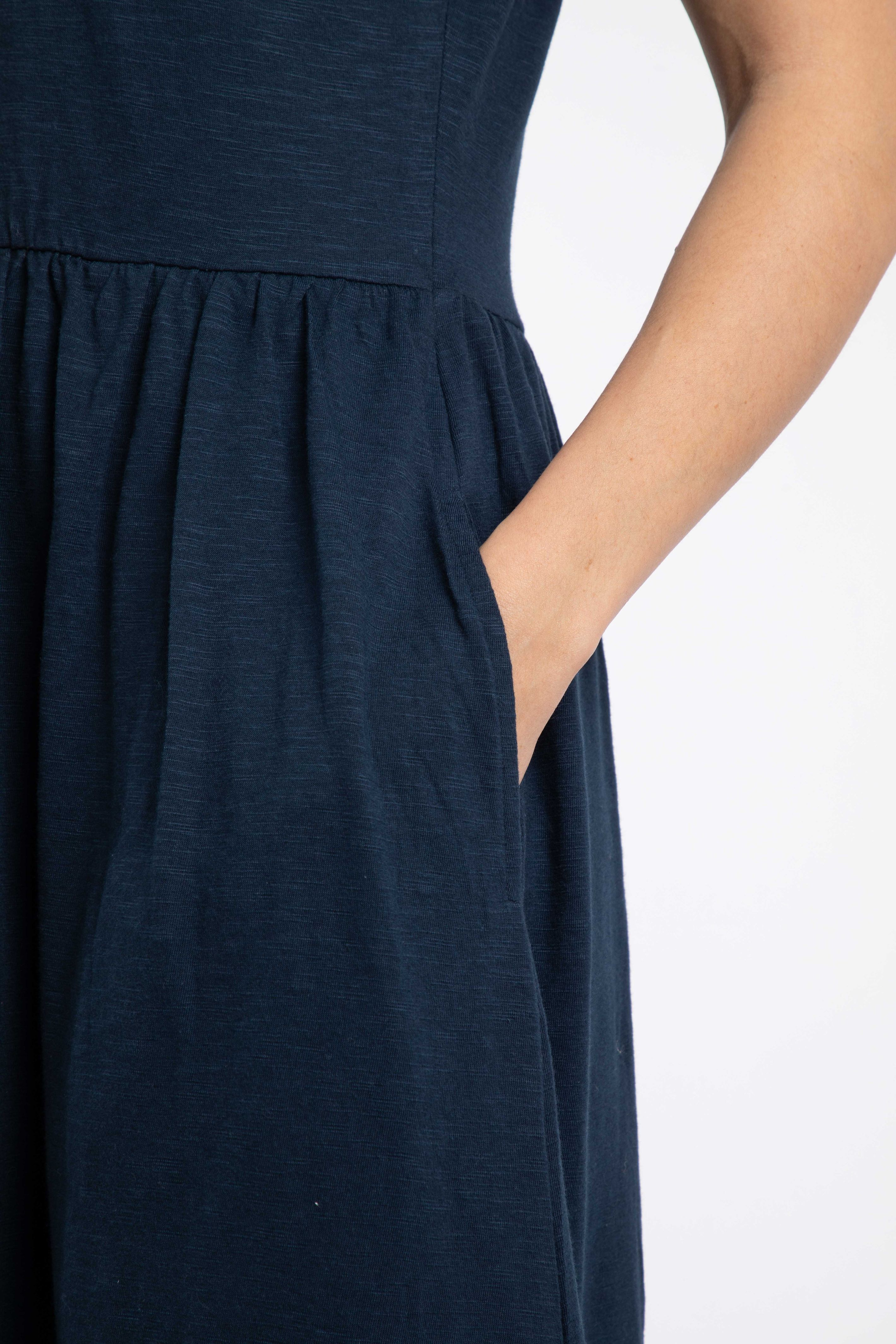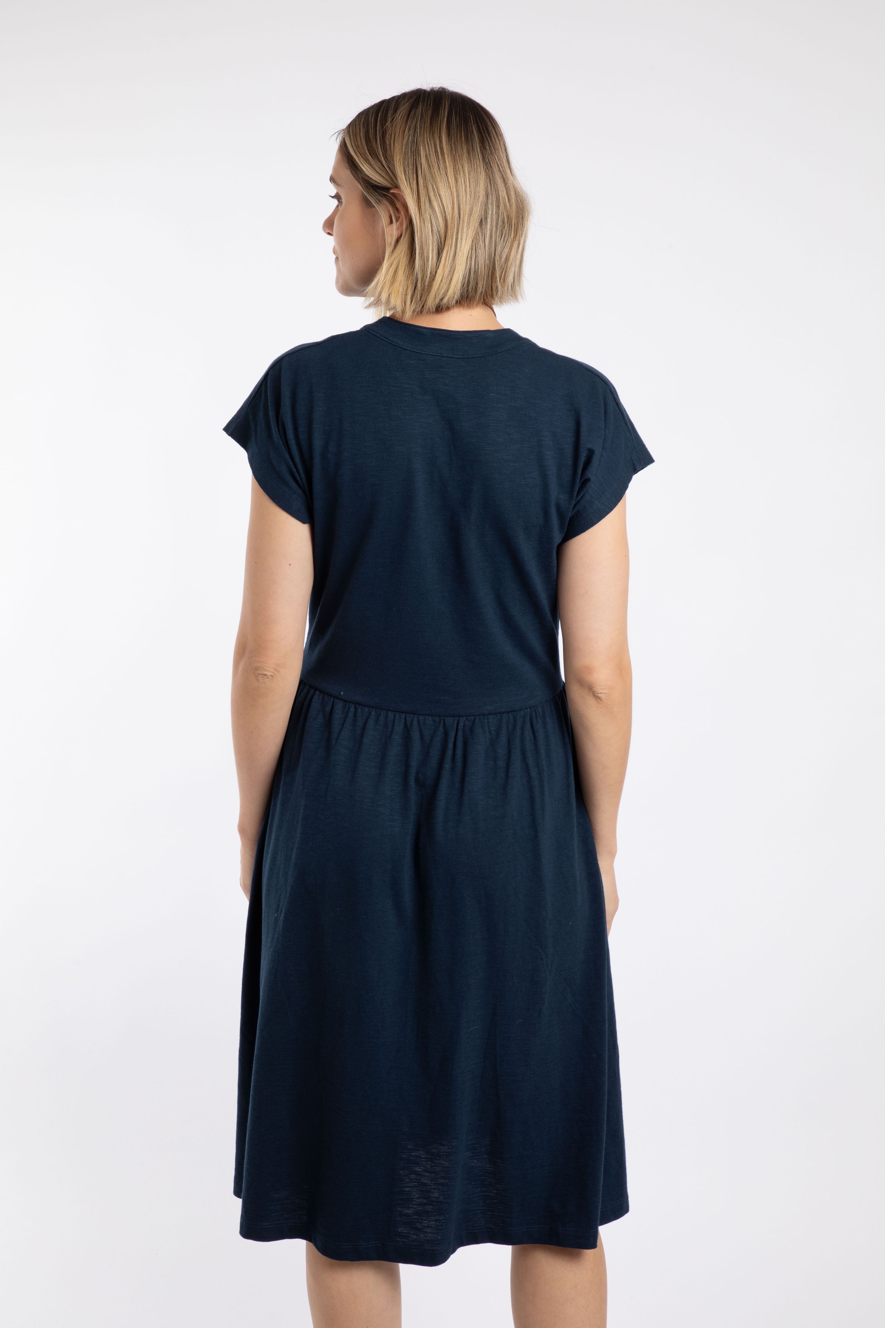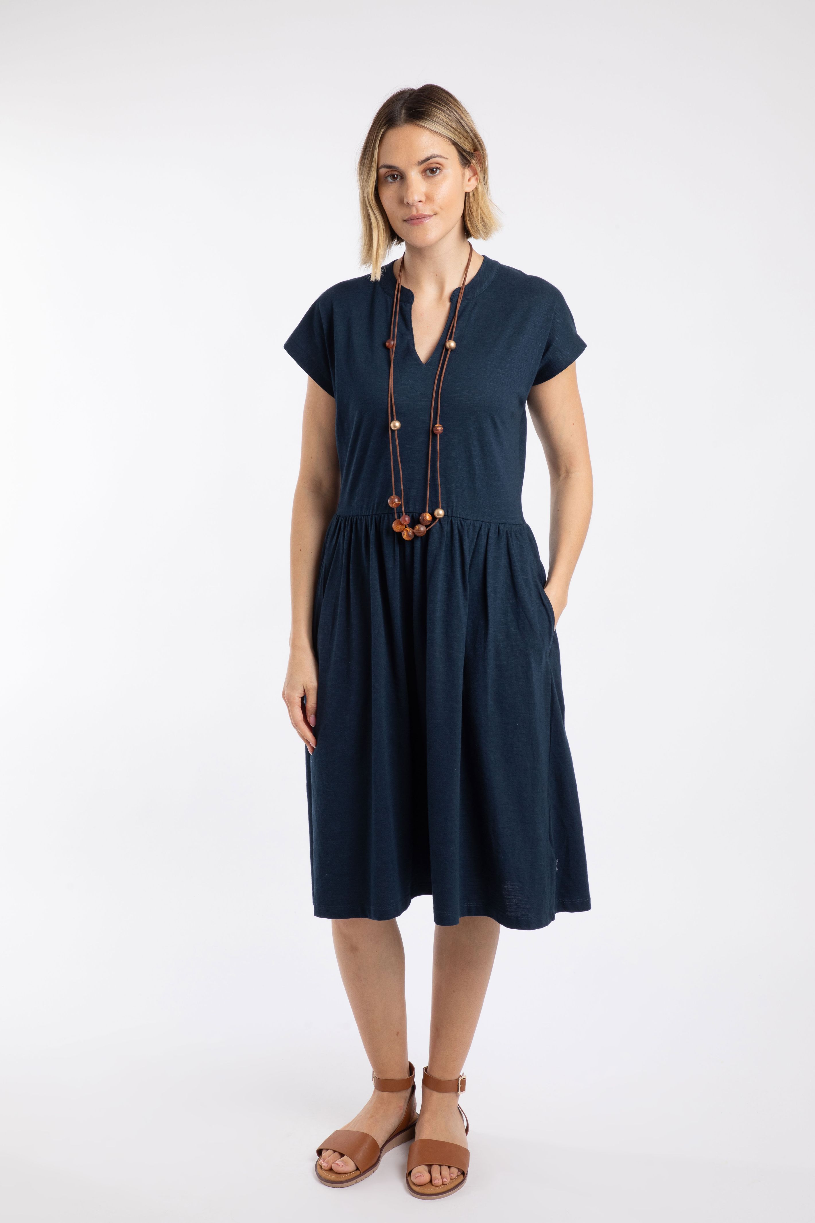 The Lilly Plain Jersey Notch Neck Dress is the perfect day dress. The T-Shirt shape and material give it a casual edge; it is easy to throw on, with no fastenings and an elasticated waistband. The block colour gives a blank canvas to add your favourite accessories, plus it has pockets!