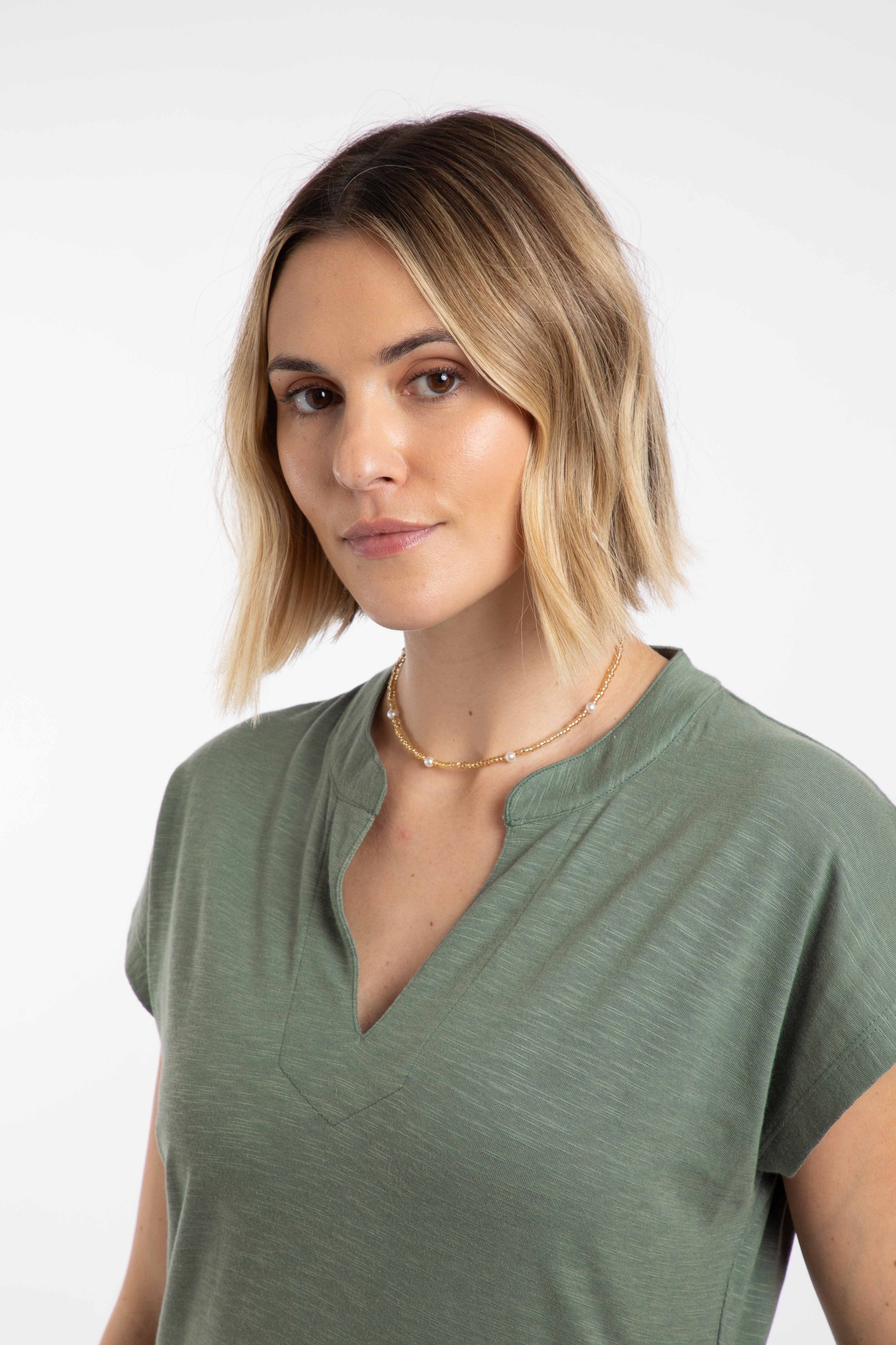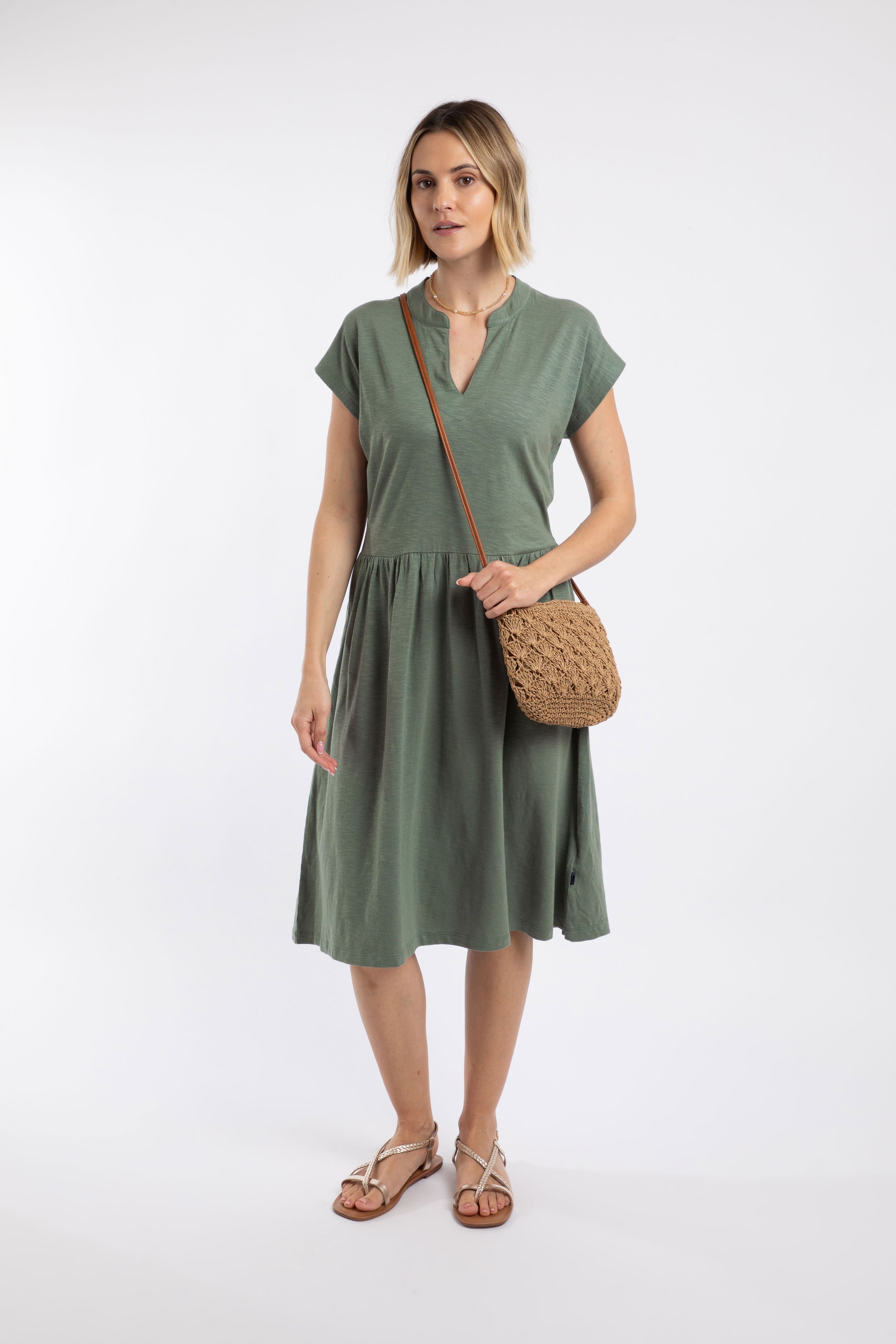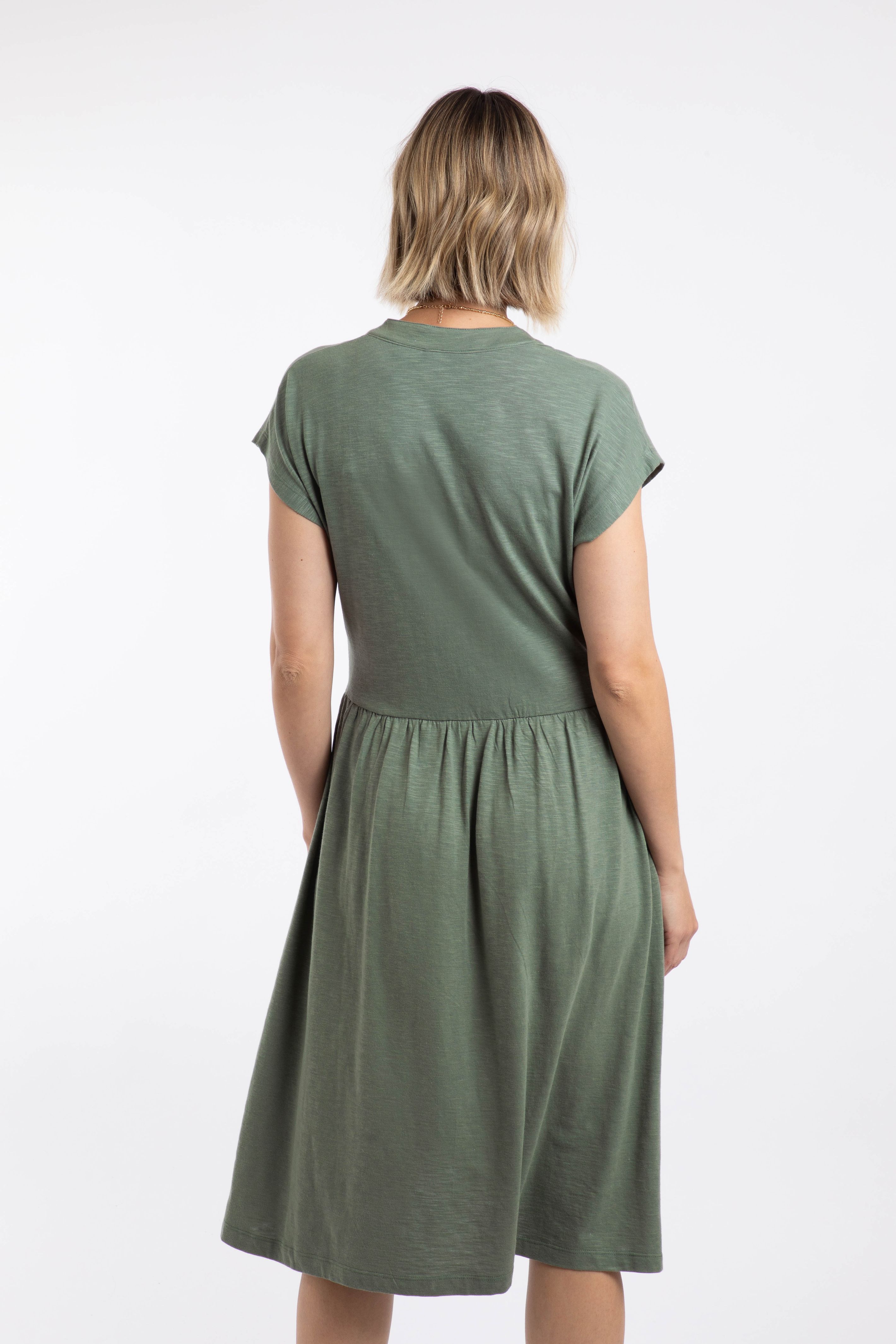 Lilly Plain Jersey Notch Neck Dress Woodland Sage