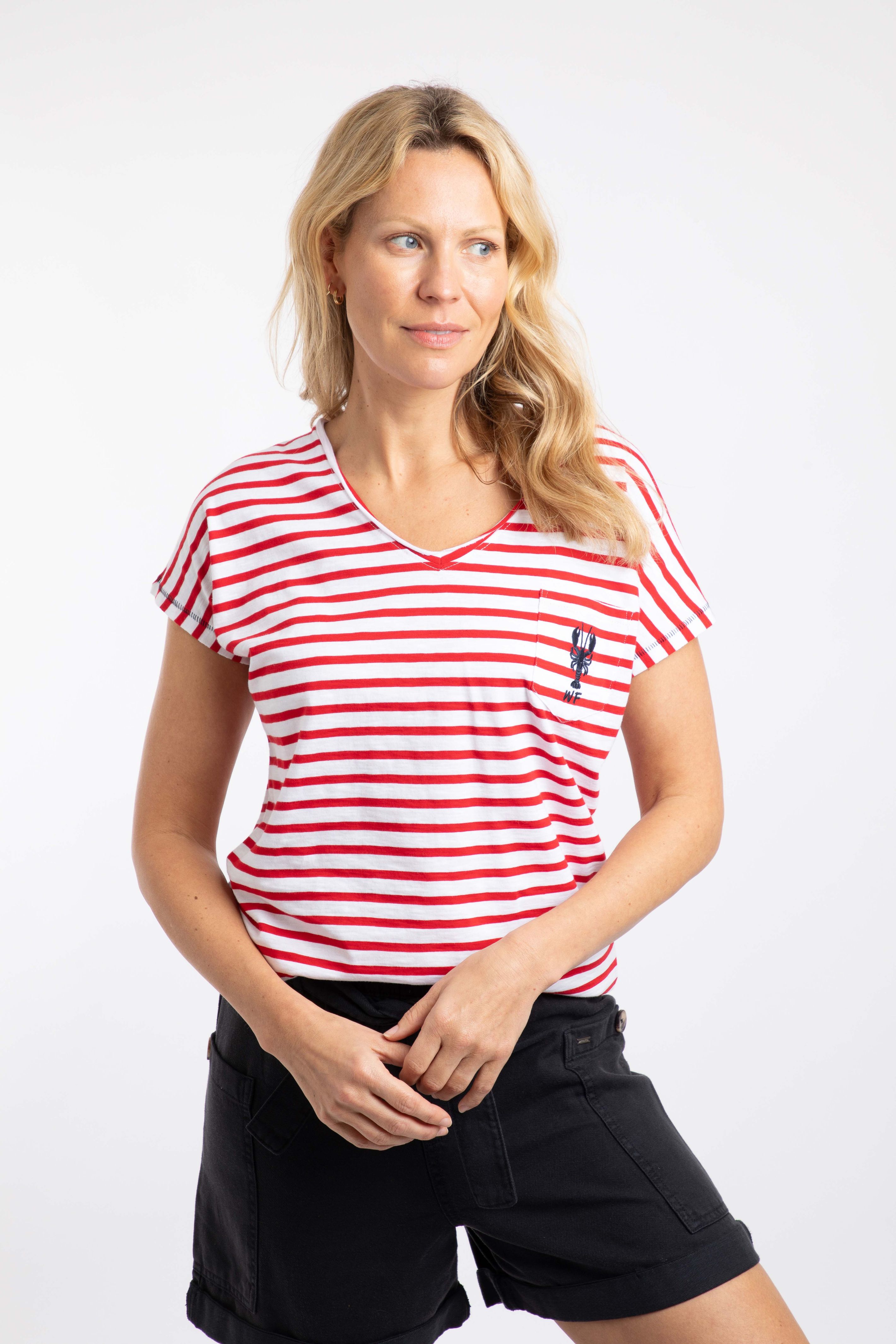 We are having a little fun with our Liora Embroidered Pocket T-Shirt, a great feeling, relaxed fit, striped T-Shirt, with an embroidered little friend on the pocket.