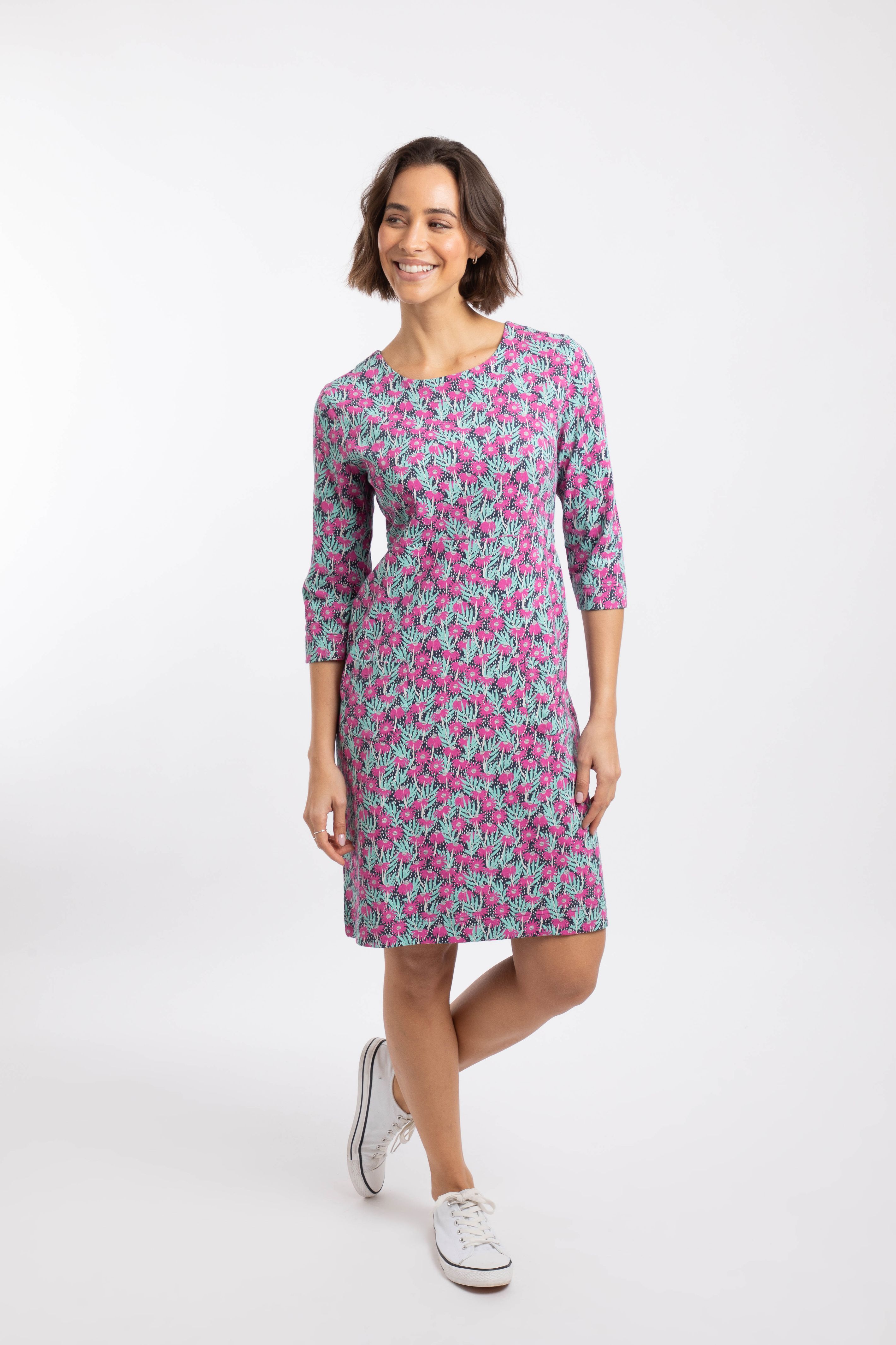 Brighten up your day with our Moondust Printed Jersey Dress. Available in easy to style colours, and unique Weird Fish prints, this dress will be your favourite this season. Plus, it's made from cotton with a little stretch, making it comfortable enough to wear all day.