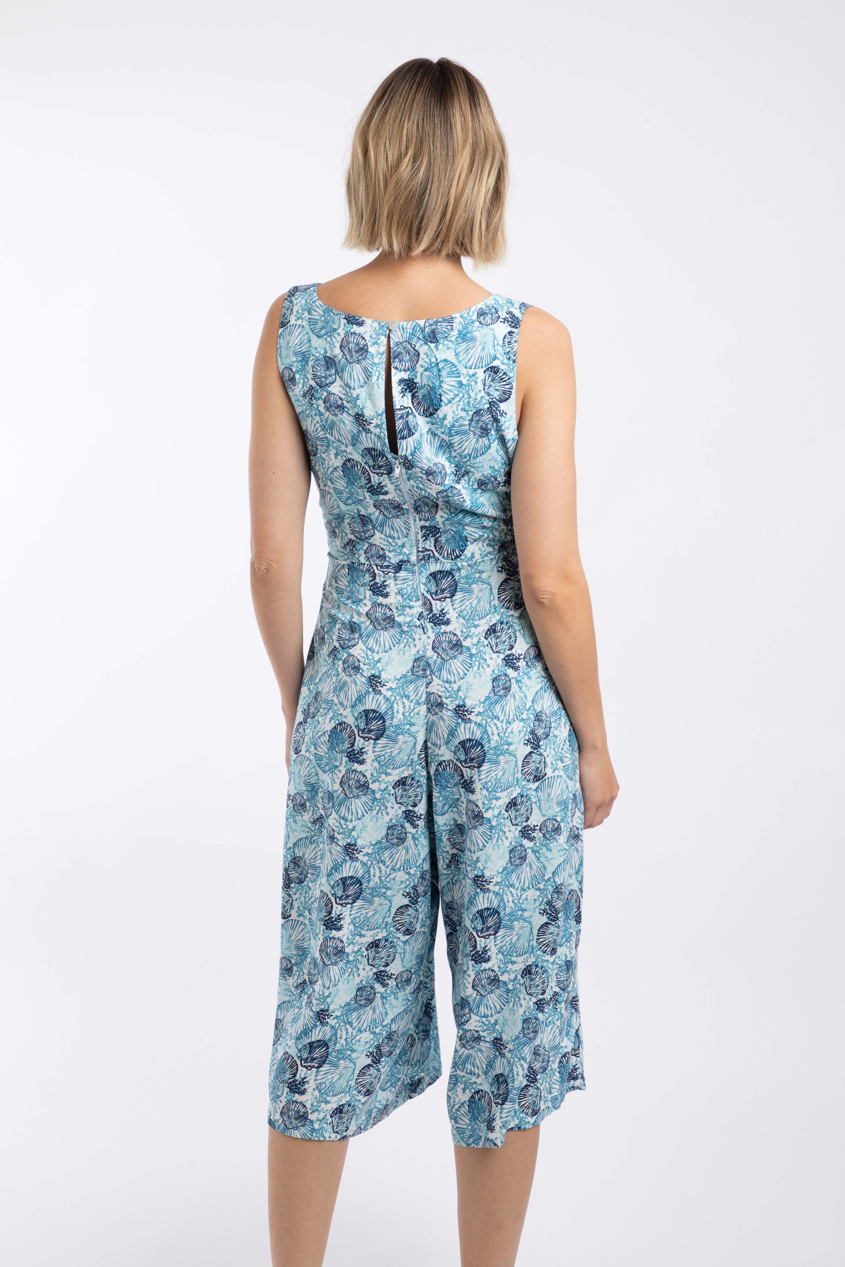 Nalani Printed Viscose Jumpsuit Ocean Blue