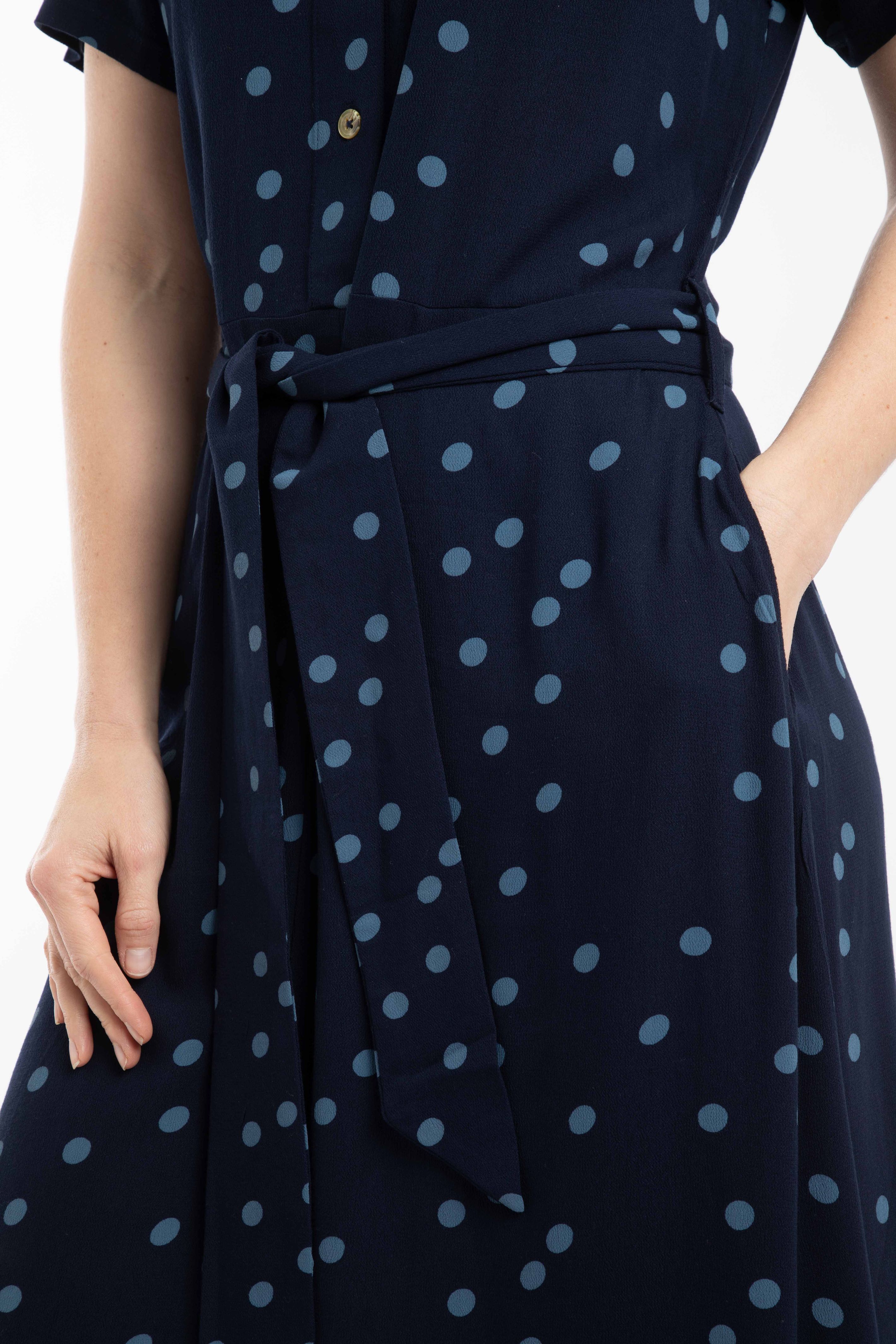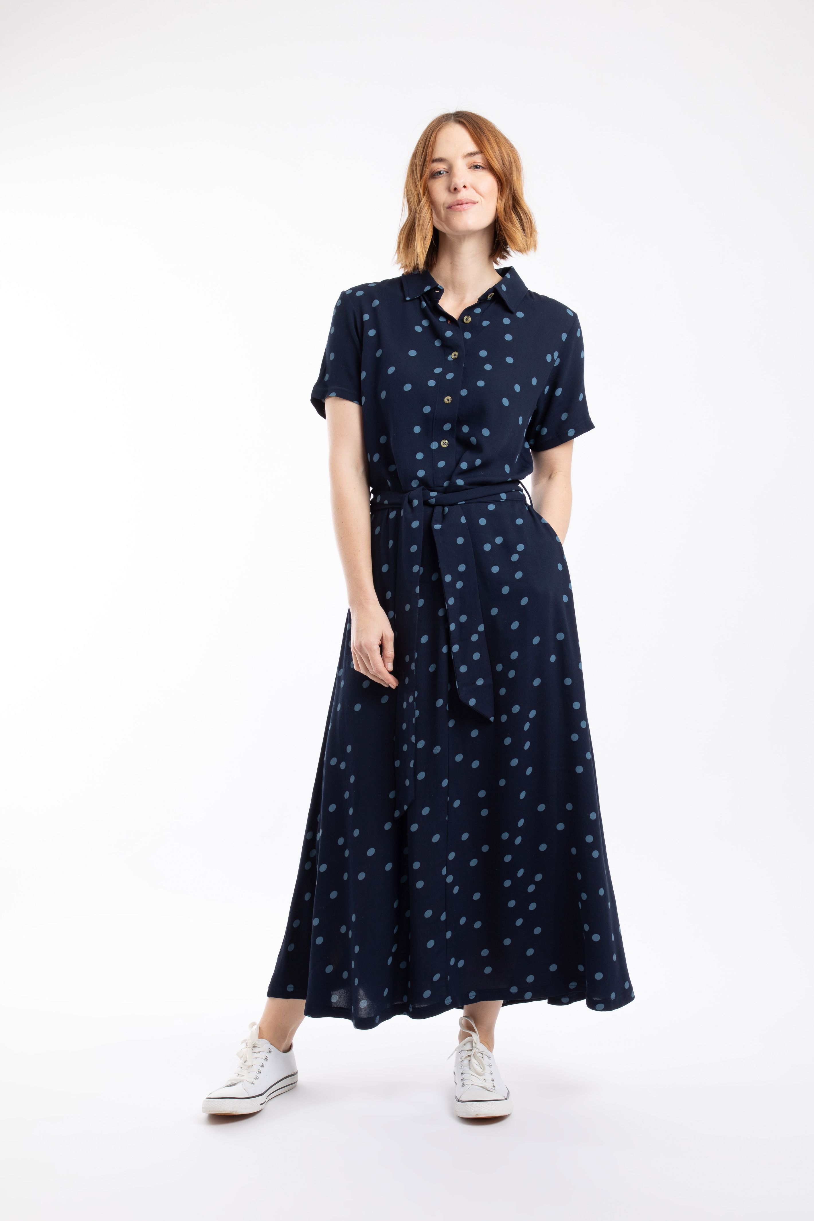 This beautiful Neem Printed Shirt Dress is floaty and cool feeling, thanks to its light material. The half shirt style is effortlessly chic, with a self-fabric tie waist and hand slip pockets. The long length works with trainers or dress it up with sandals.