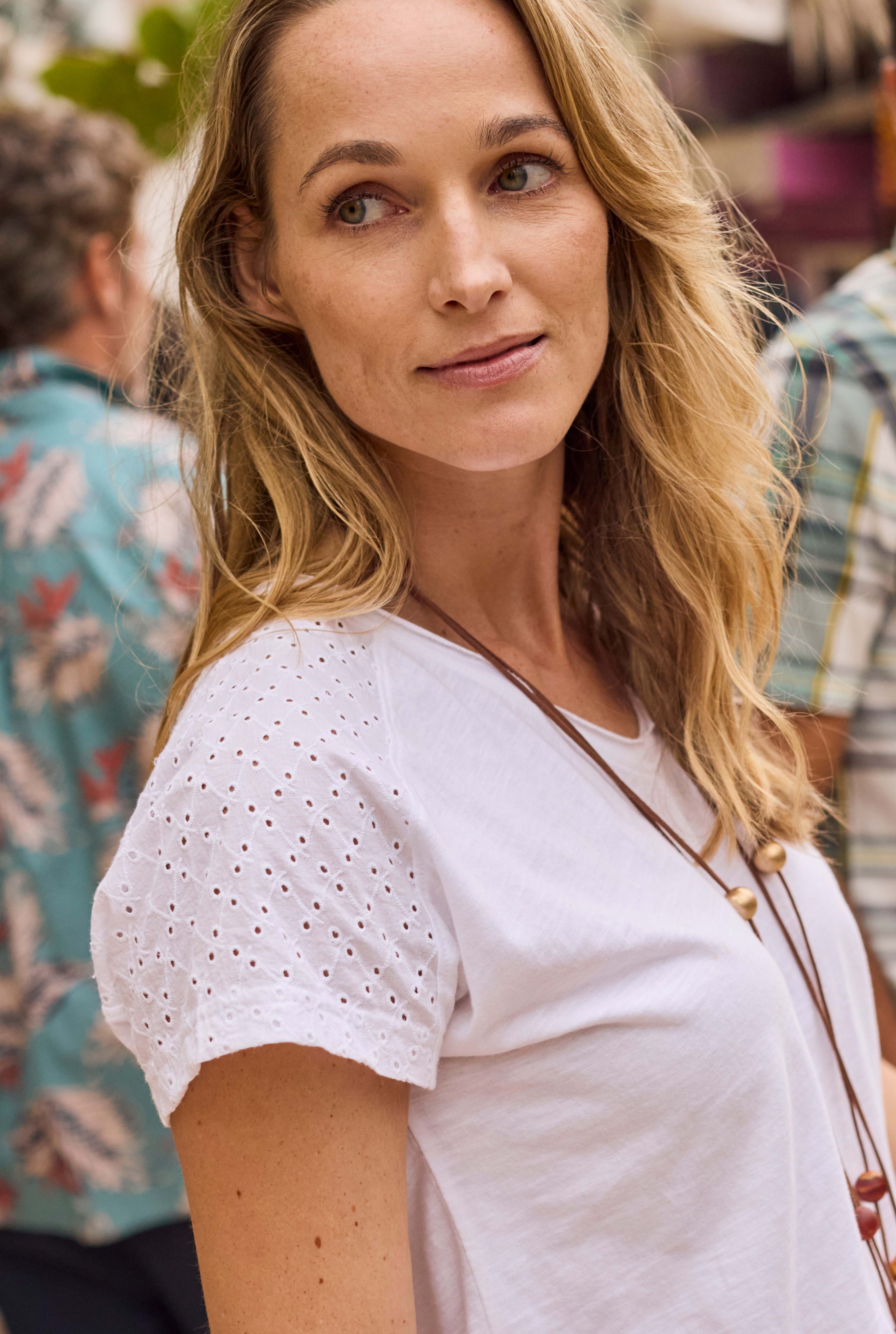 Your new favourite outfitting T-Shirt is here! The Pernille Organic Cotton Cutaway T-Shirt features eyelet embroidery on the shoulders and back - the perfect pretty detailing to add to your Summer looks.