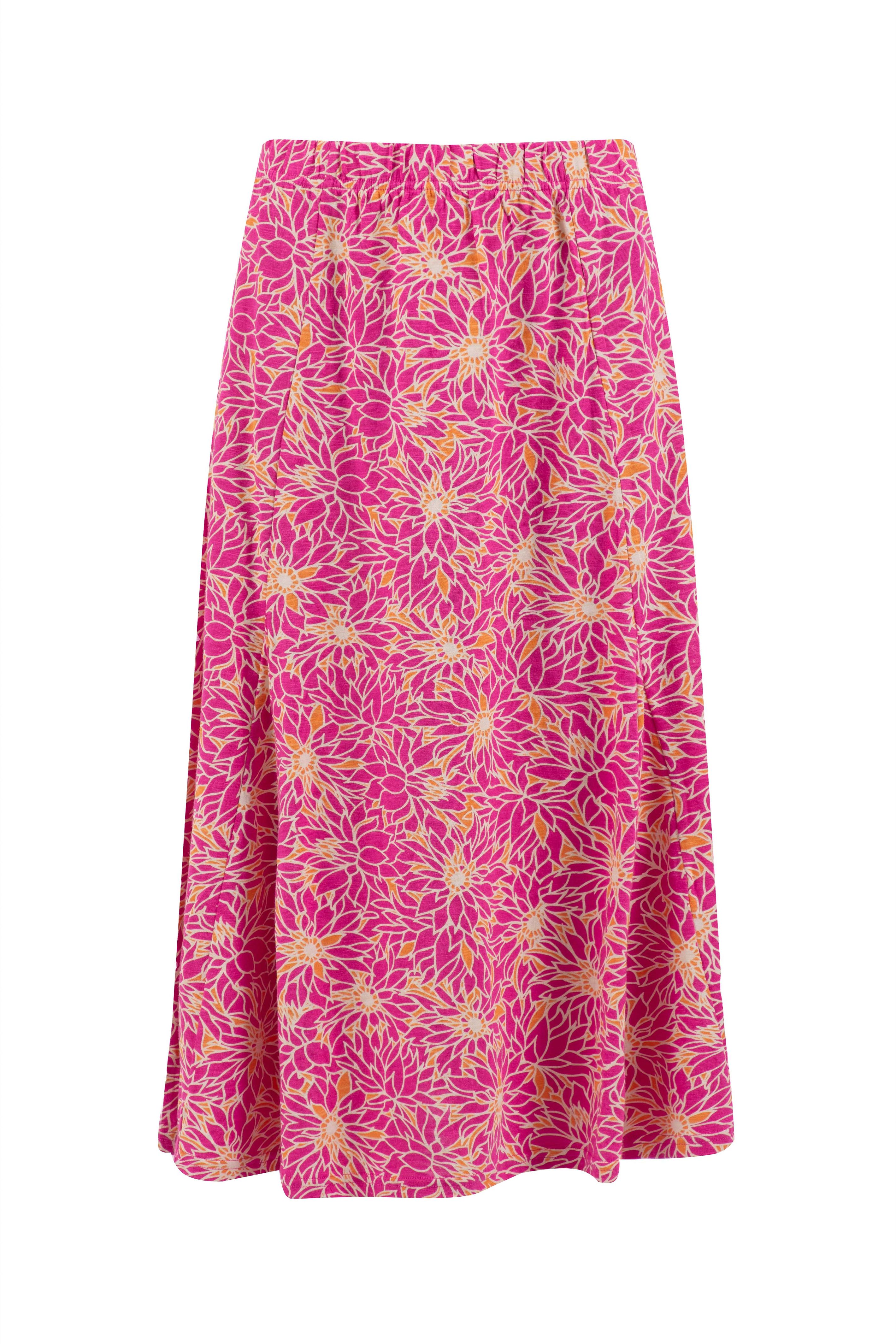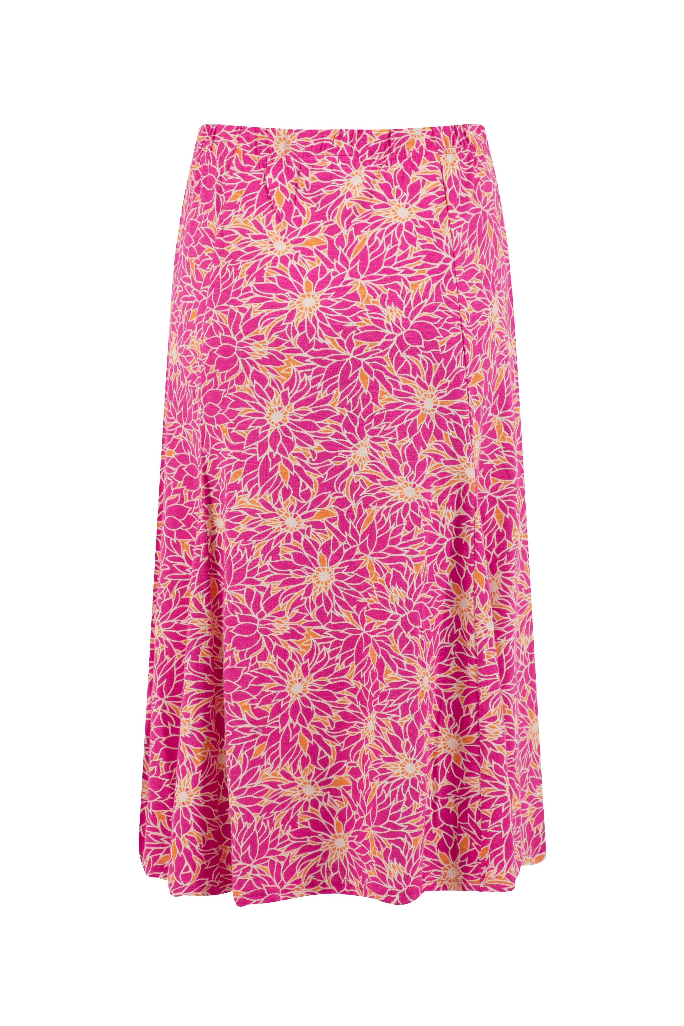 With the love for our Malmo jersey skirt, we bring you the Romaro Printed Jersey Midi Skirt. The godet panels help give the skirt flow and shape, while the jersey, stretch fabric makes it super comfortable, so it is ideal for a smart casual outfit. Team with a fine knit for transitional weather, and swap out for a vest or T-Shirt when the sun begins to shine.