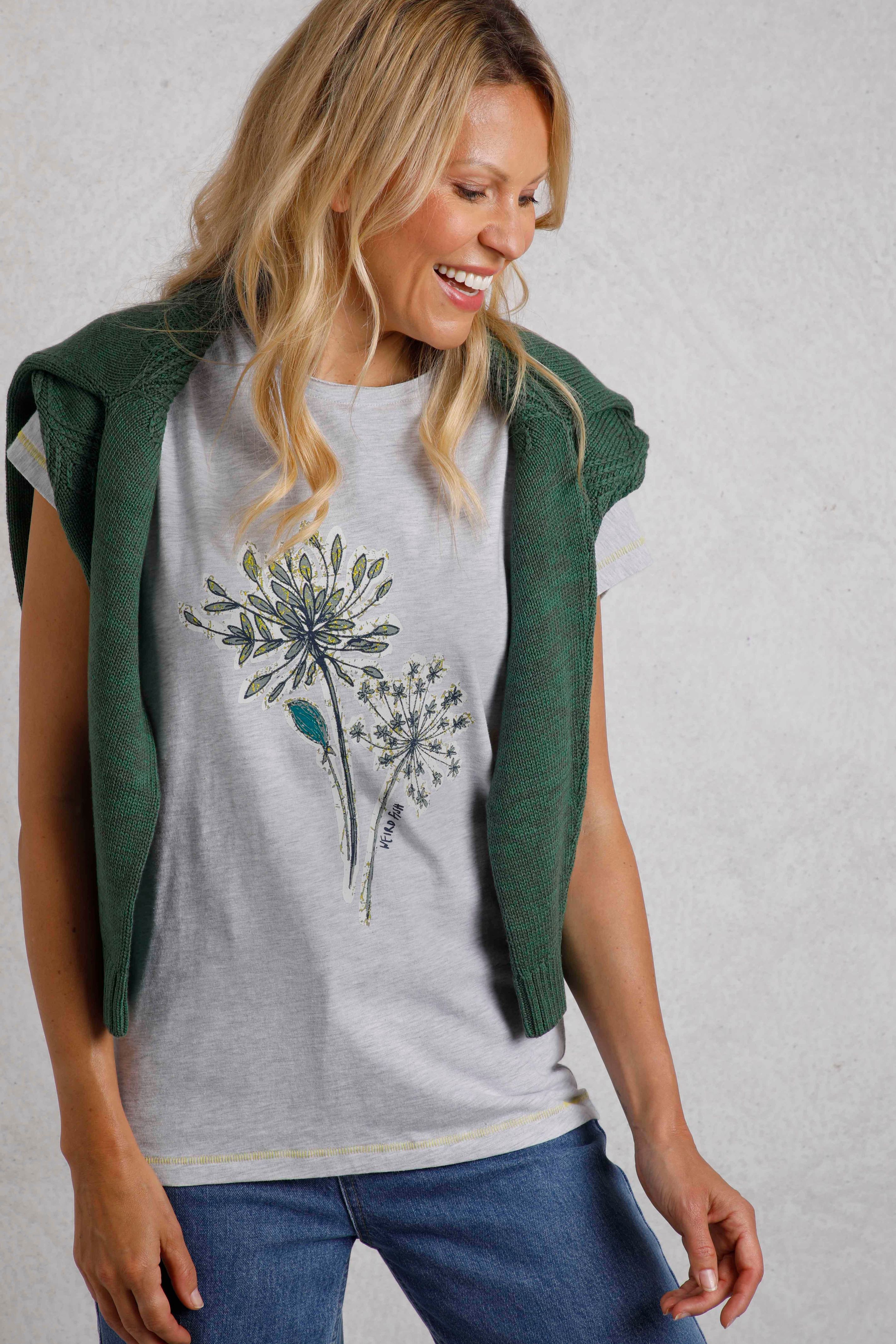 Seedheads Front Print T-Shirt Pearl Grey Marl